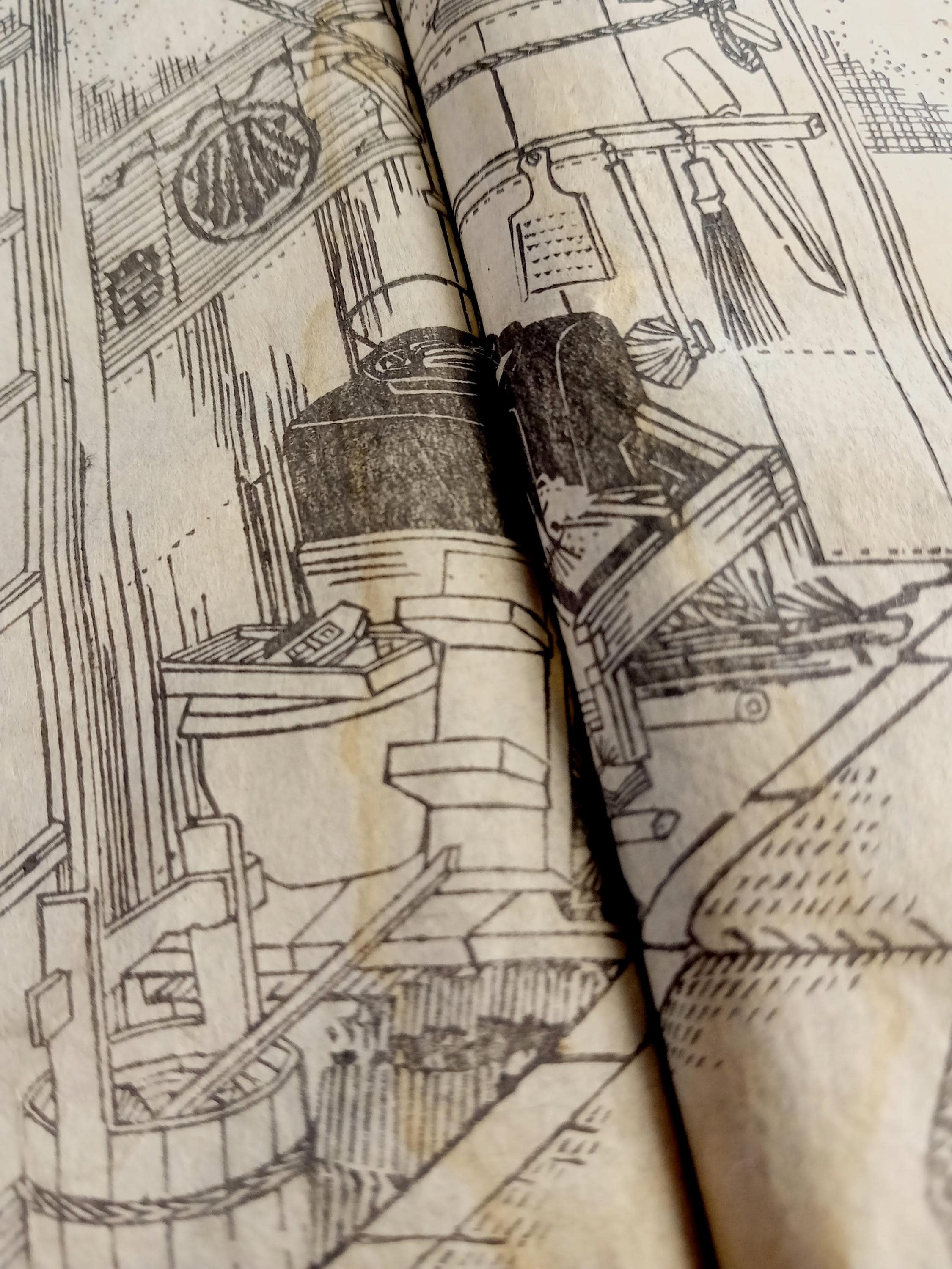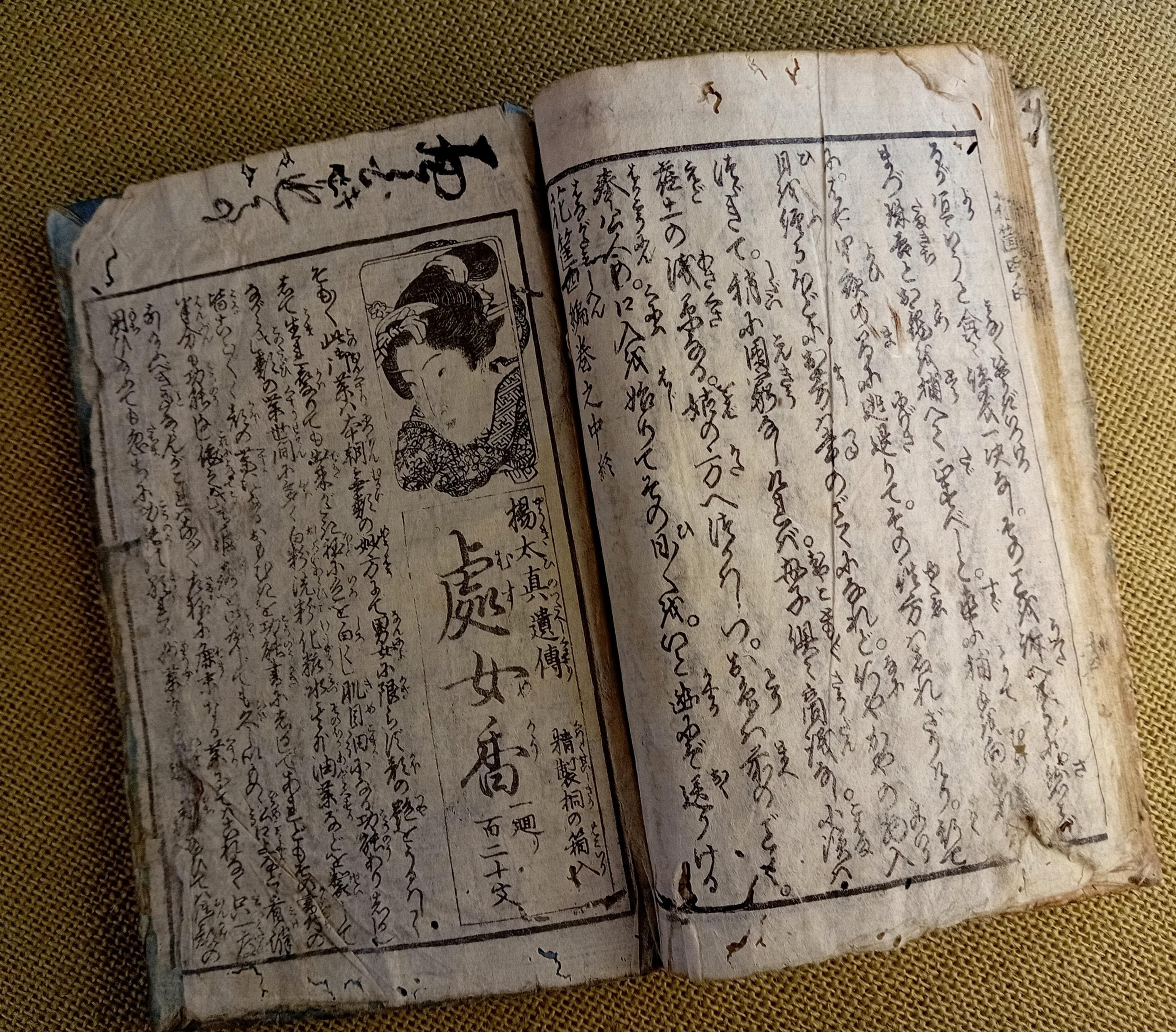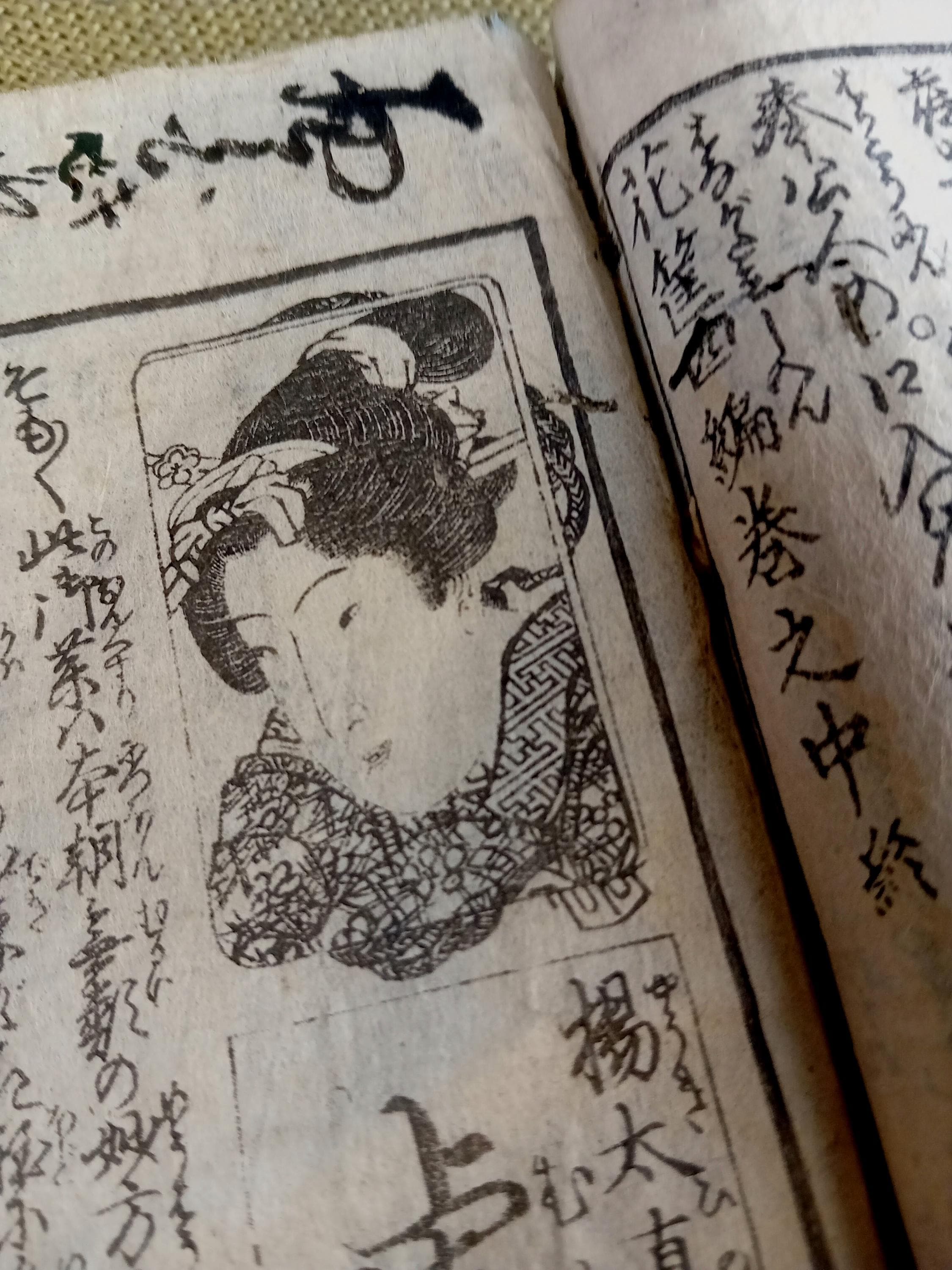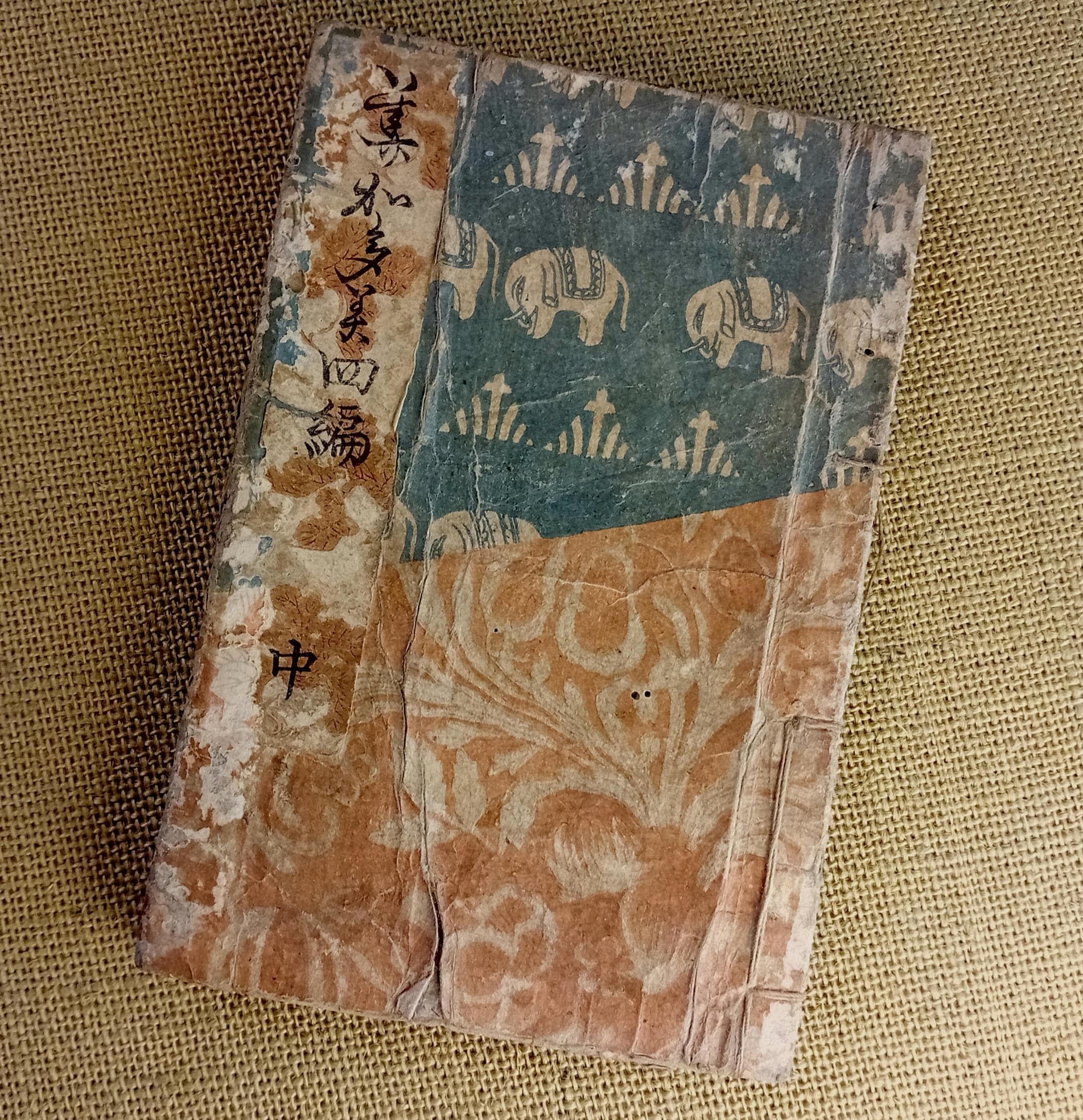 Antique Japanese illustrated book produced using traditional woodblock printing.