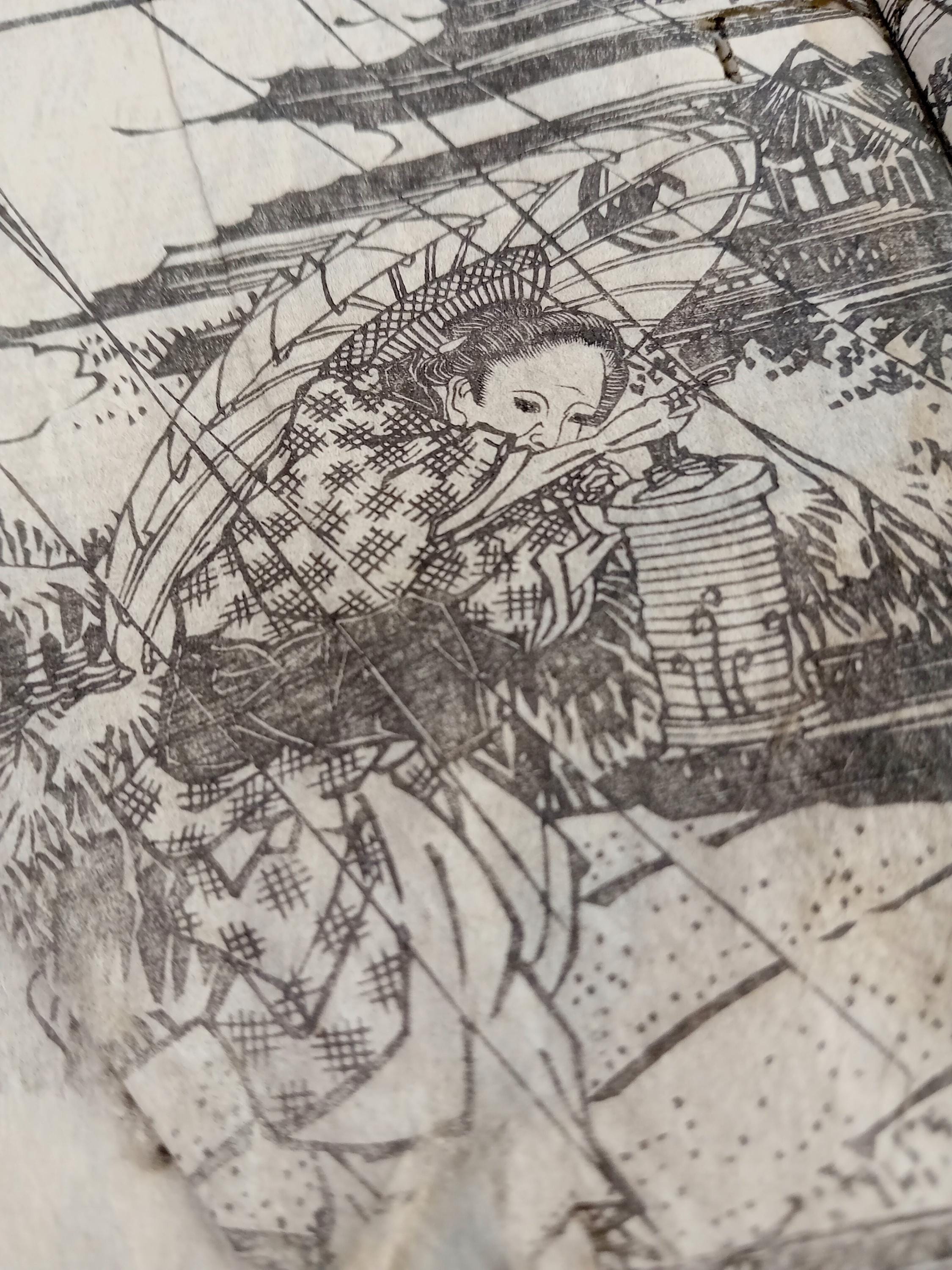 Illustrated Japanese book printed from carved wooden blocks on traditional paper.