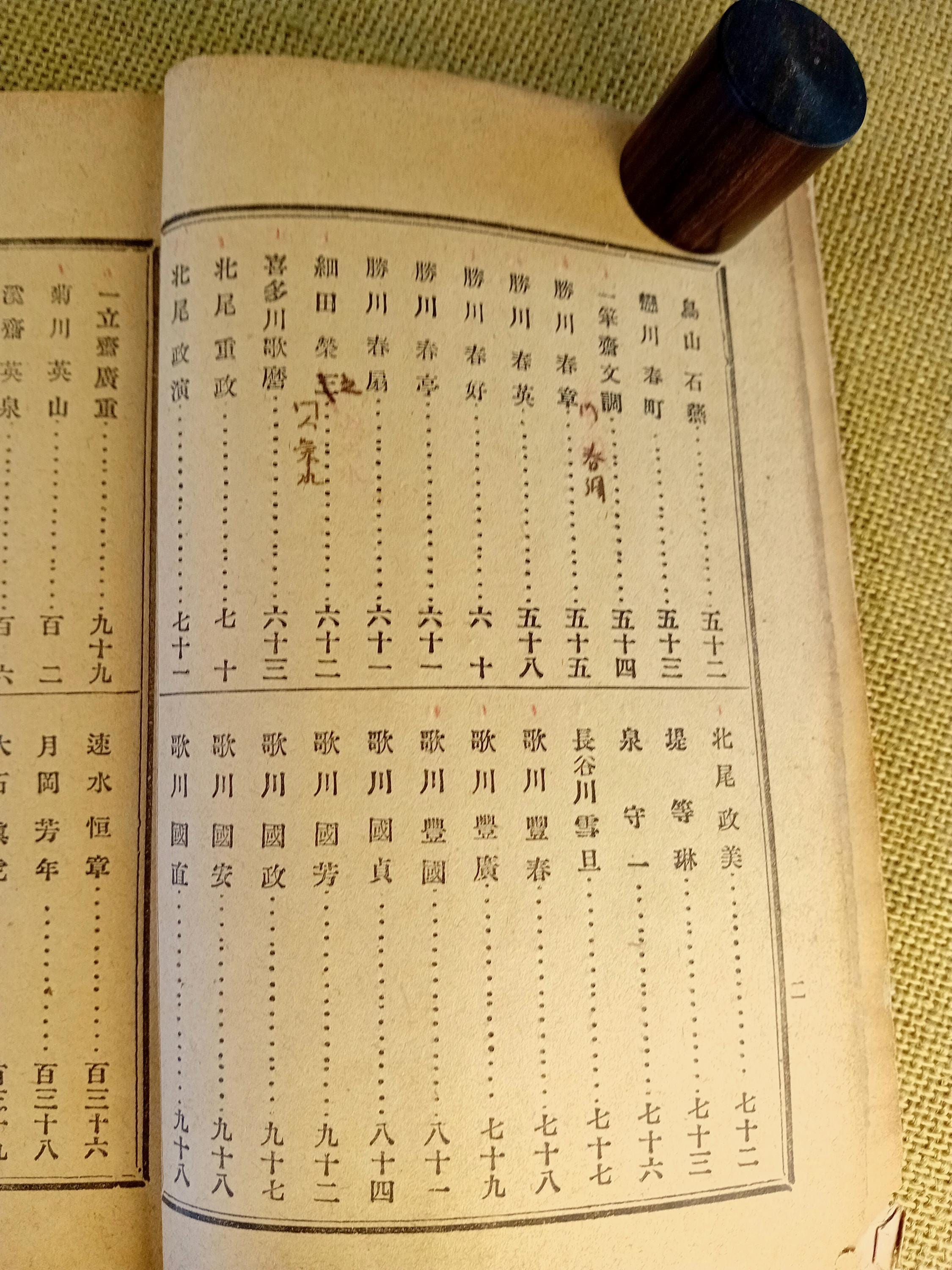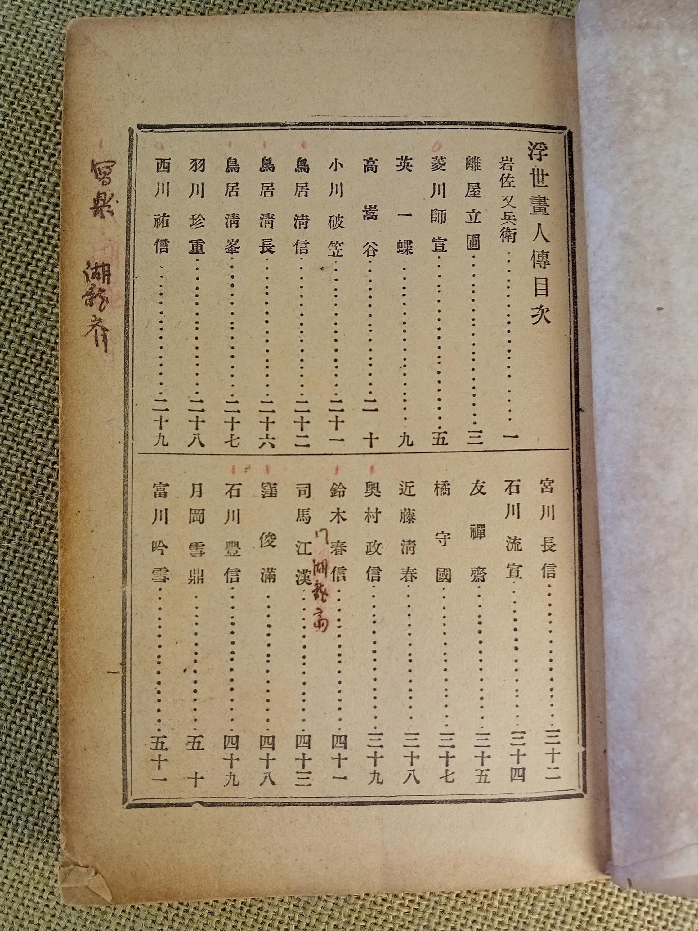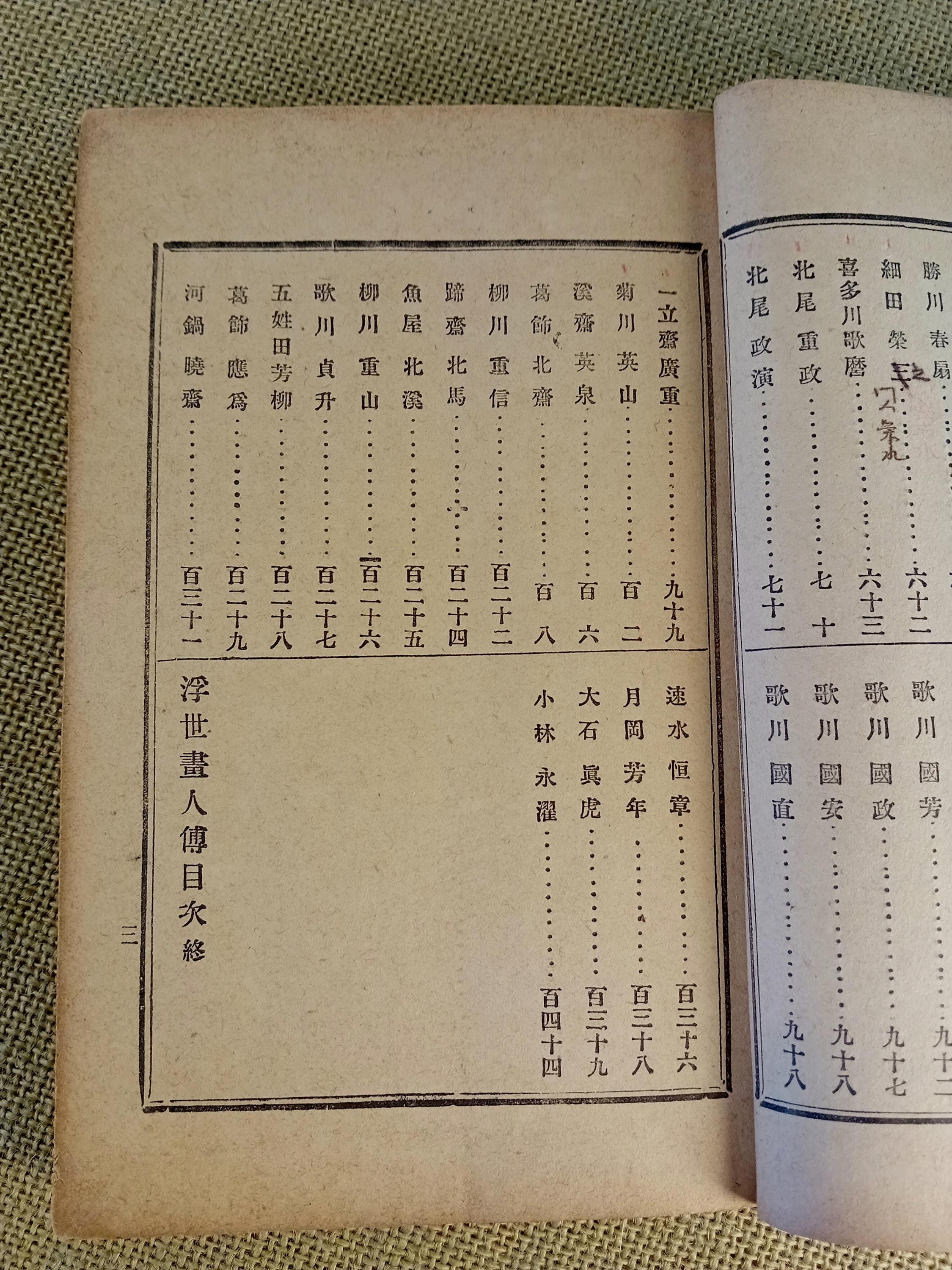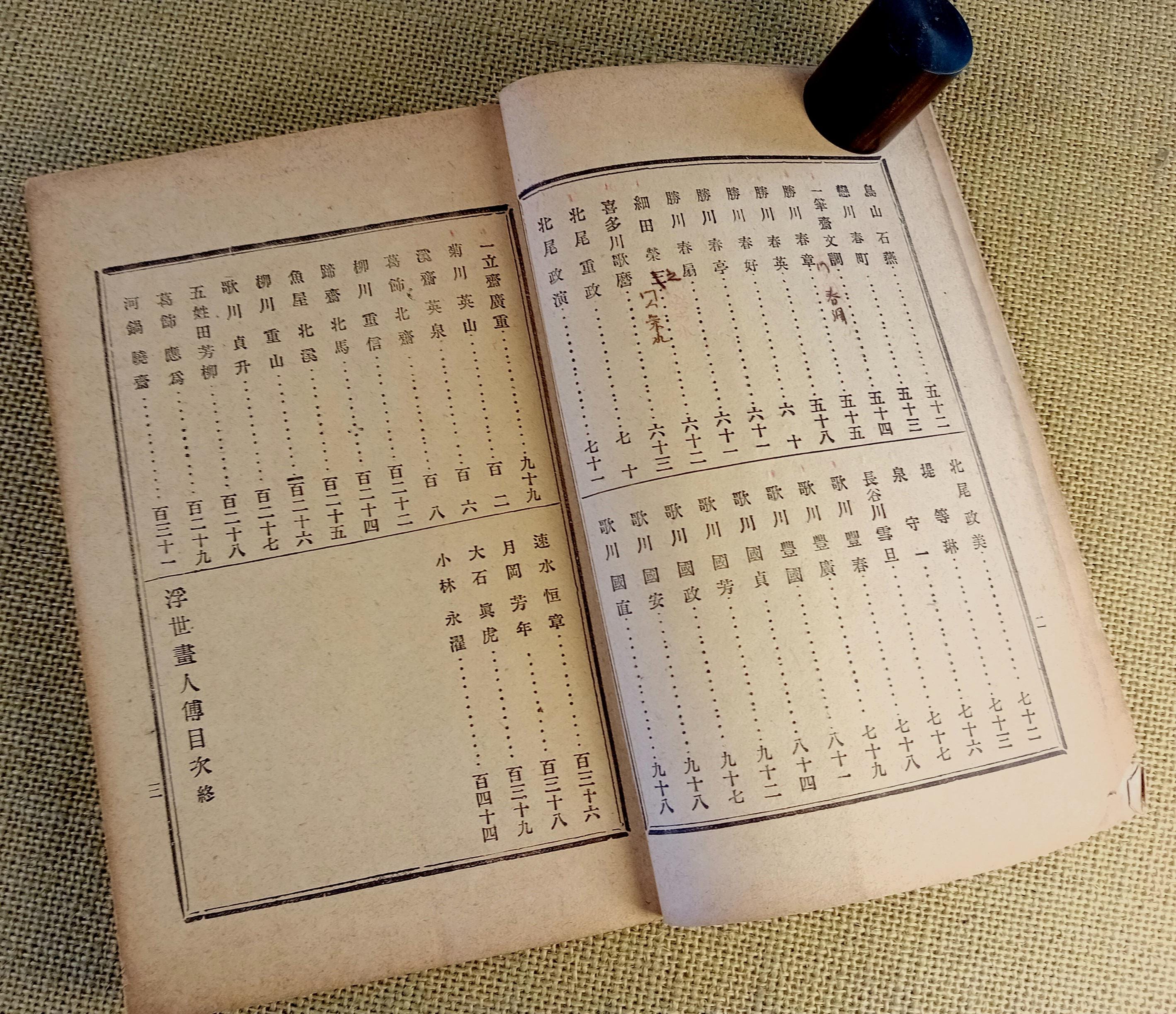 Аntique Japanese reference book with short biographies of ukiyo-e artists.