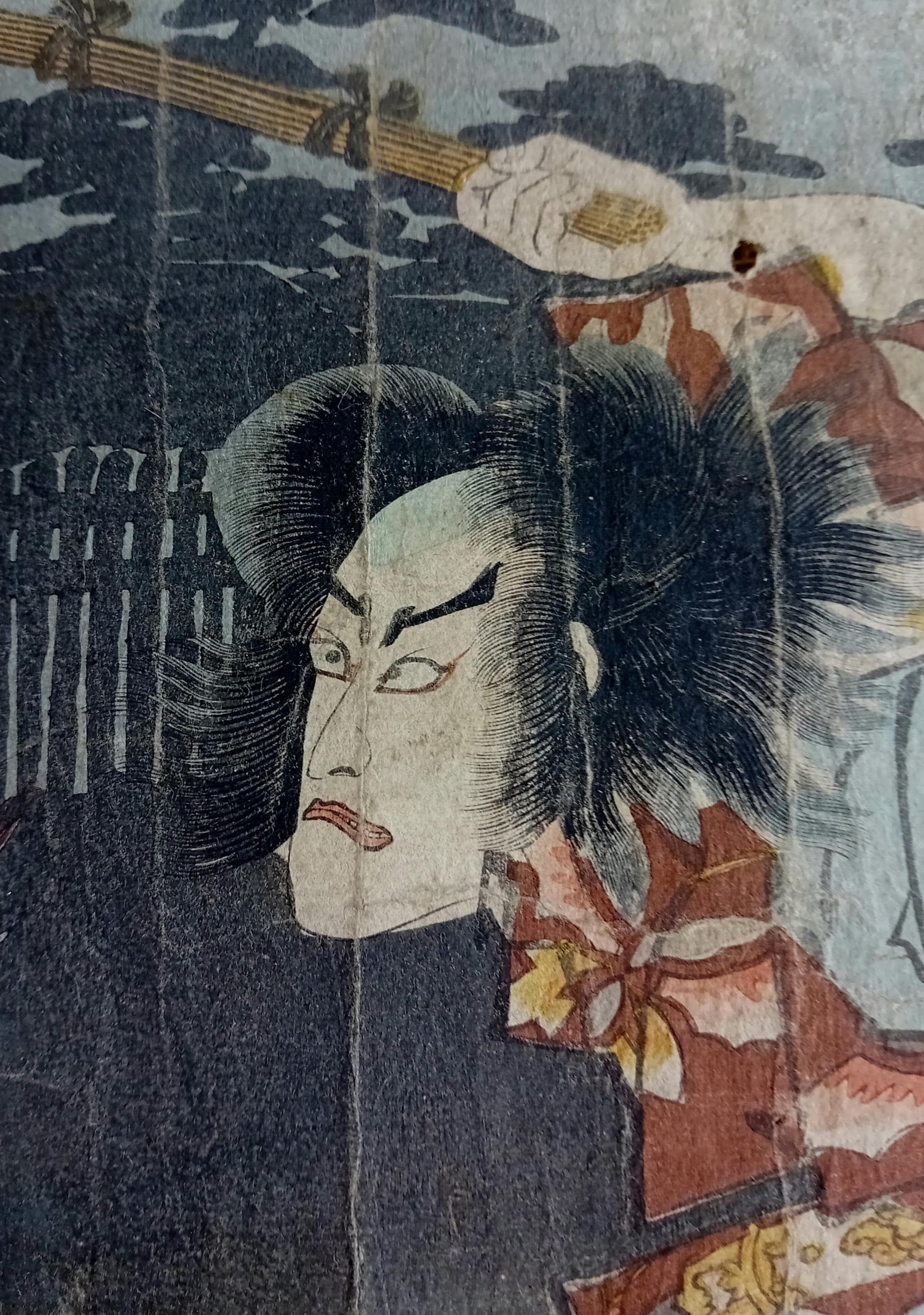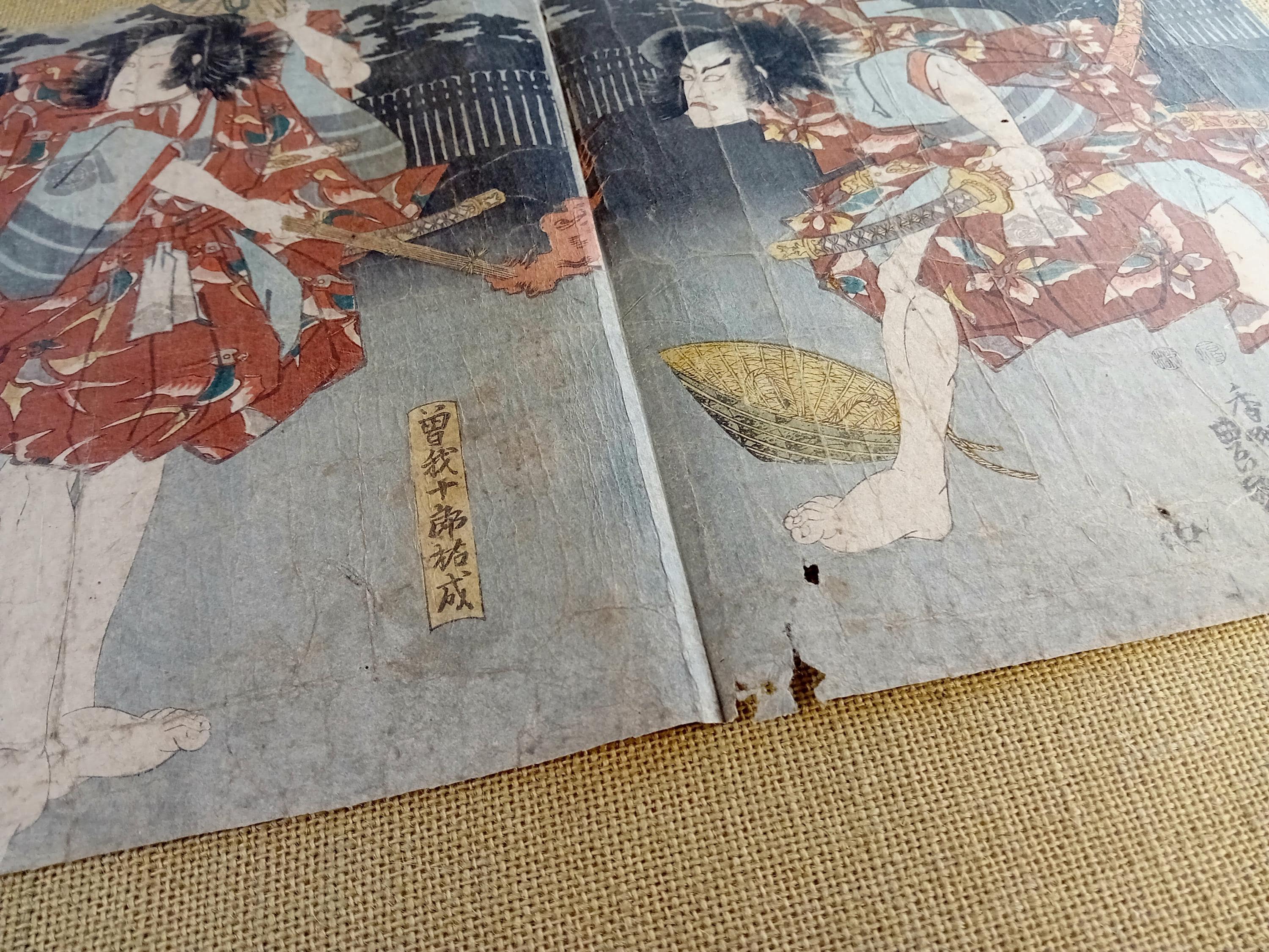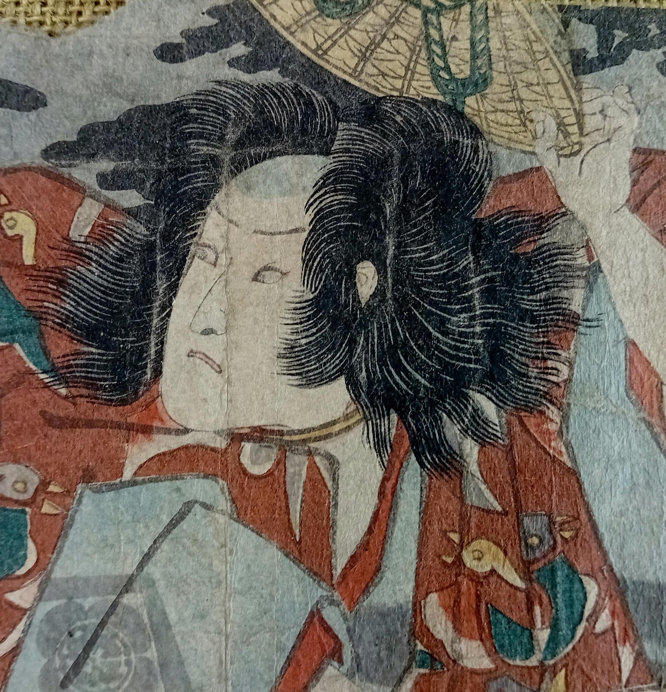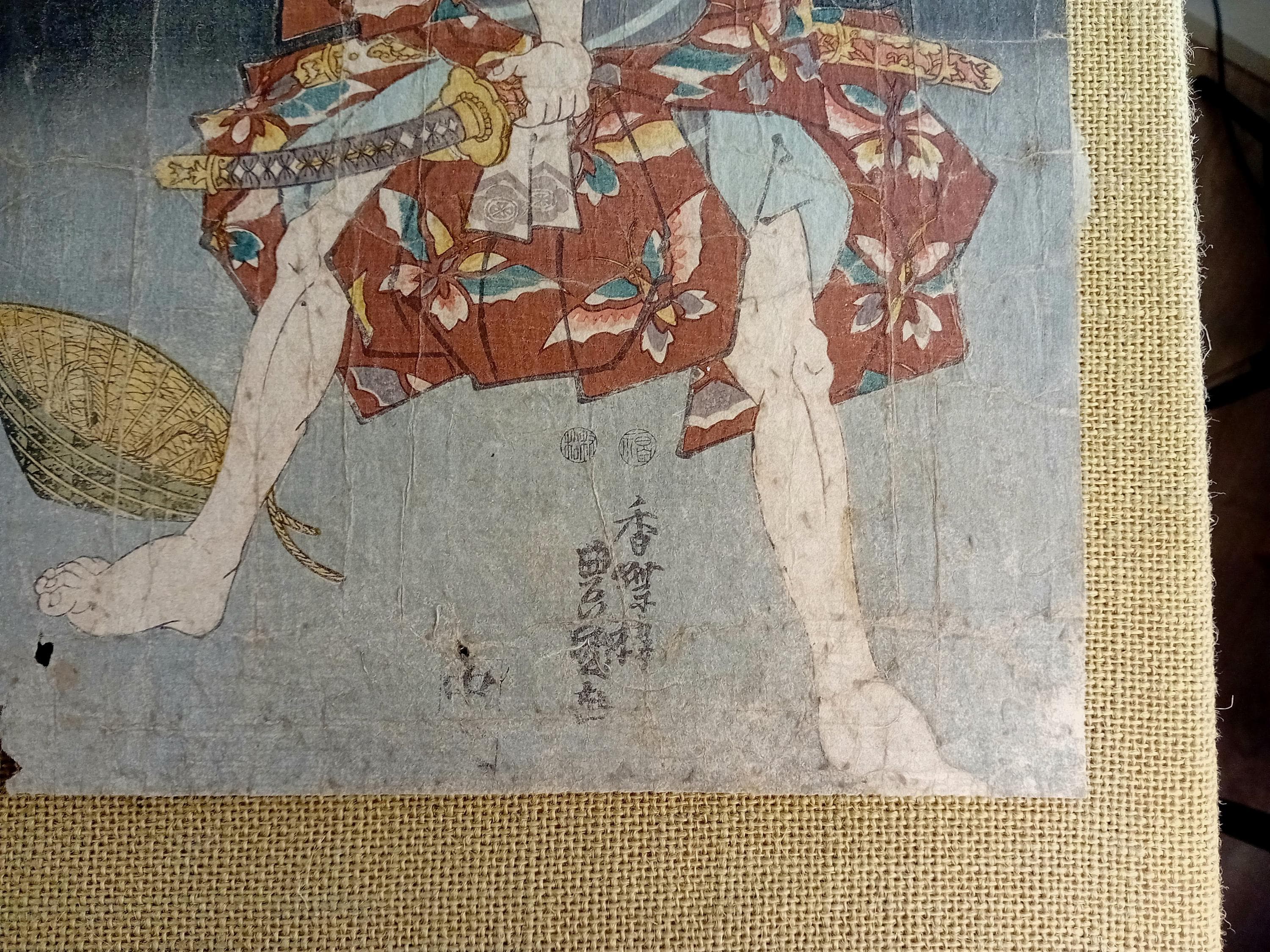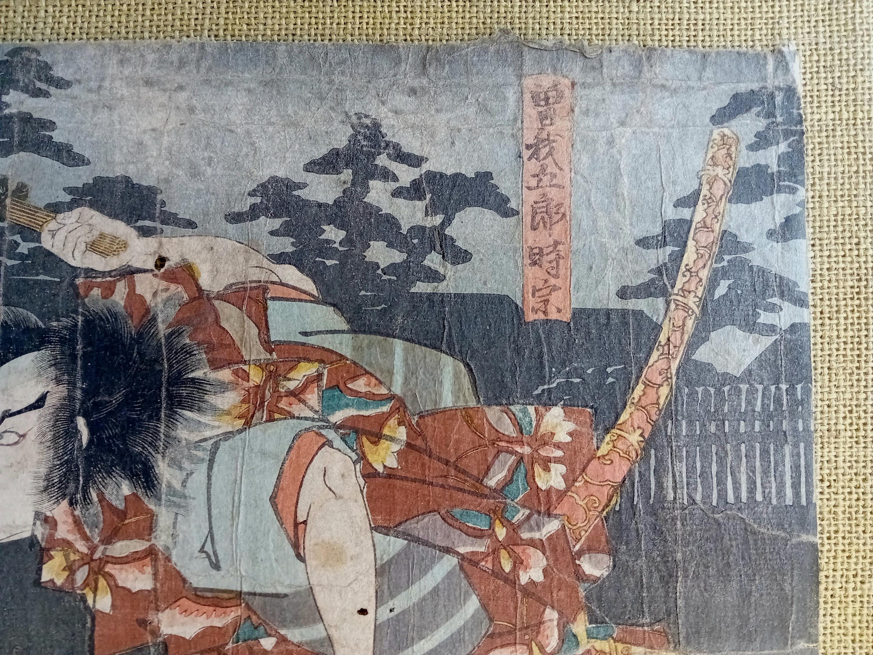 Antique Japanese polychrome woodblock print from the Edo period, circa 1851.