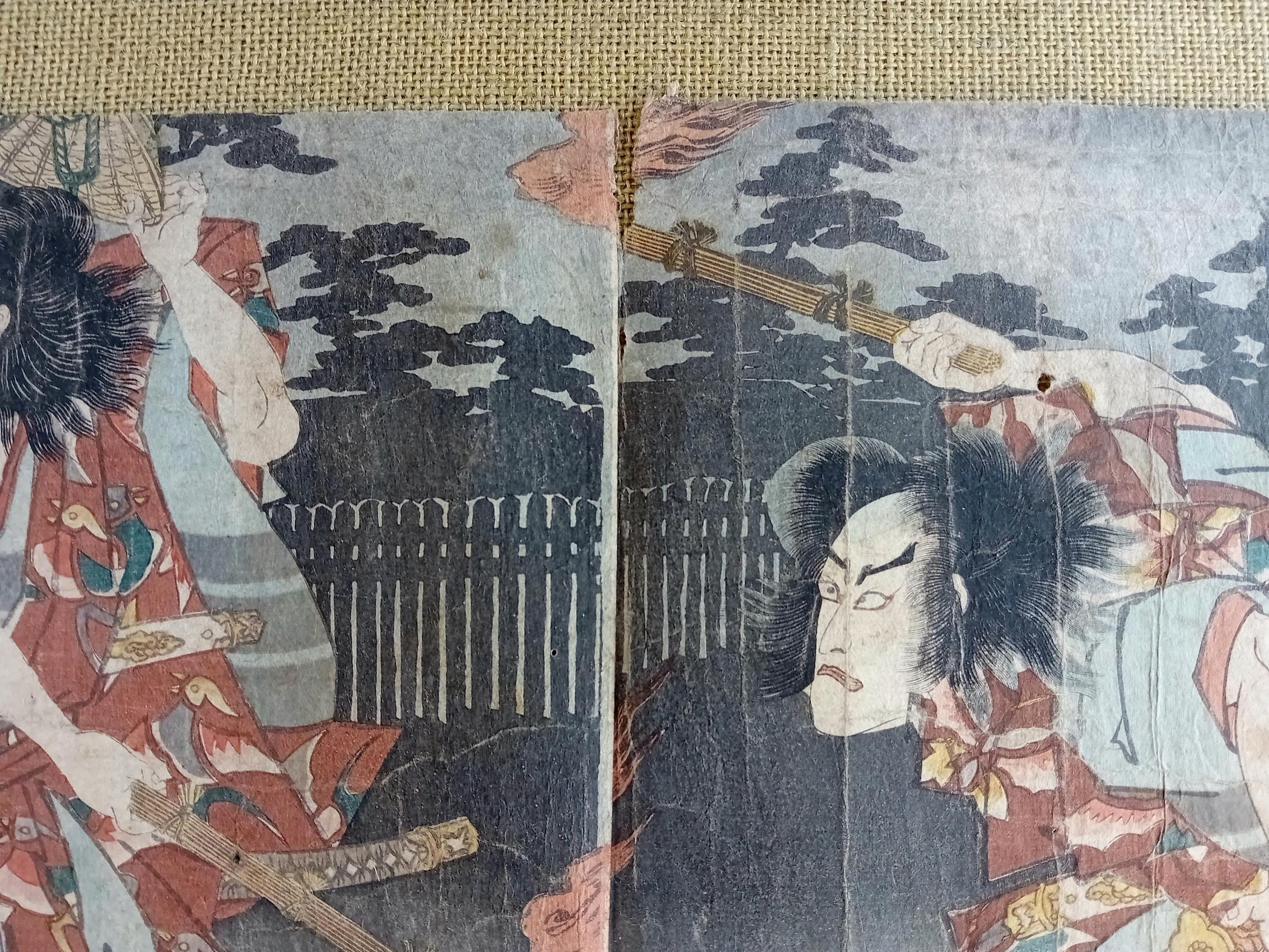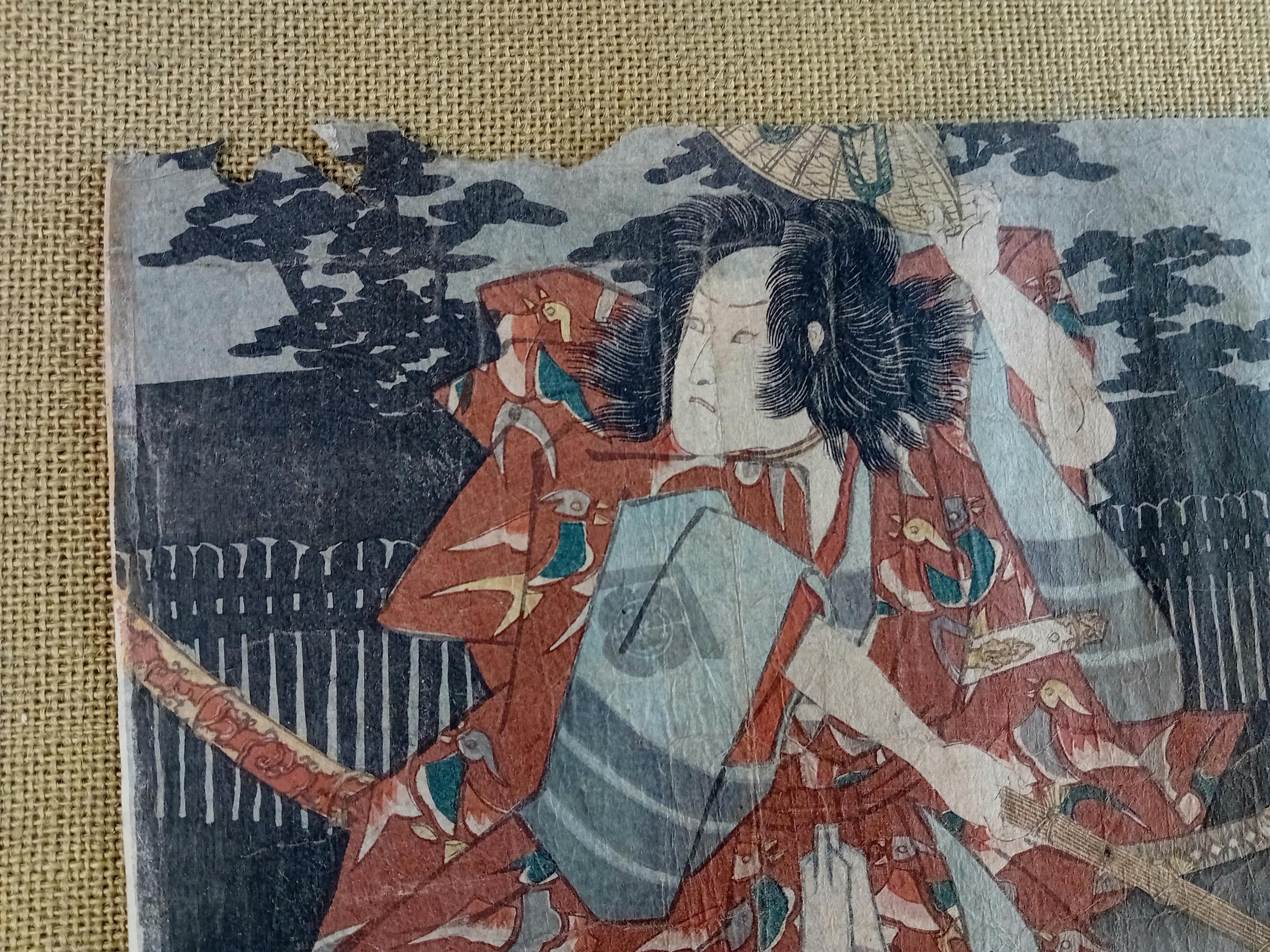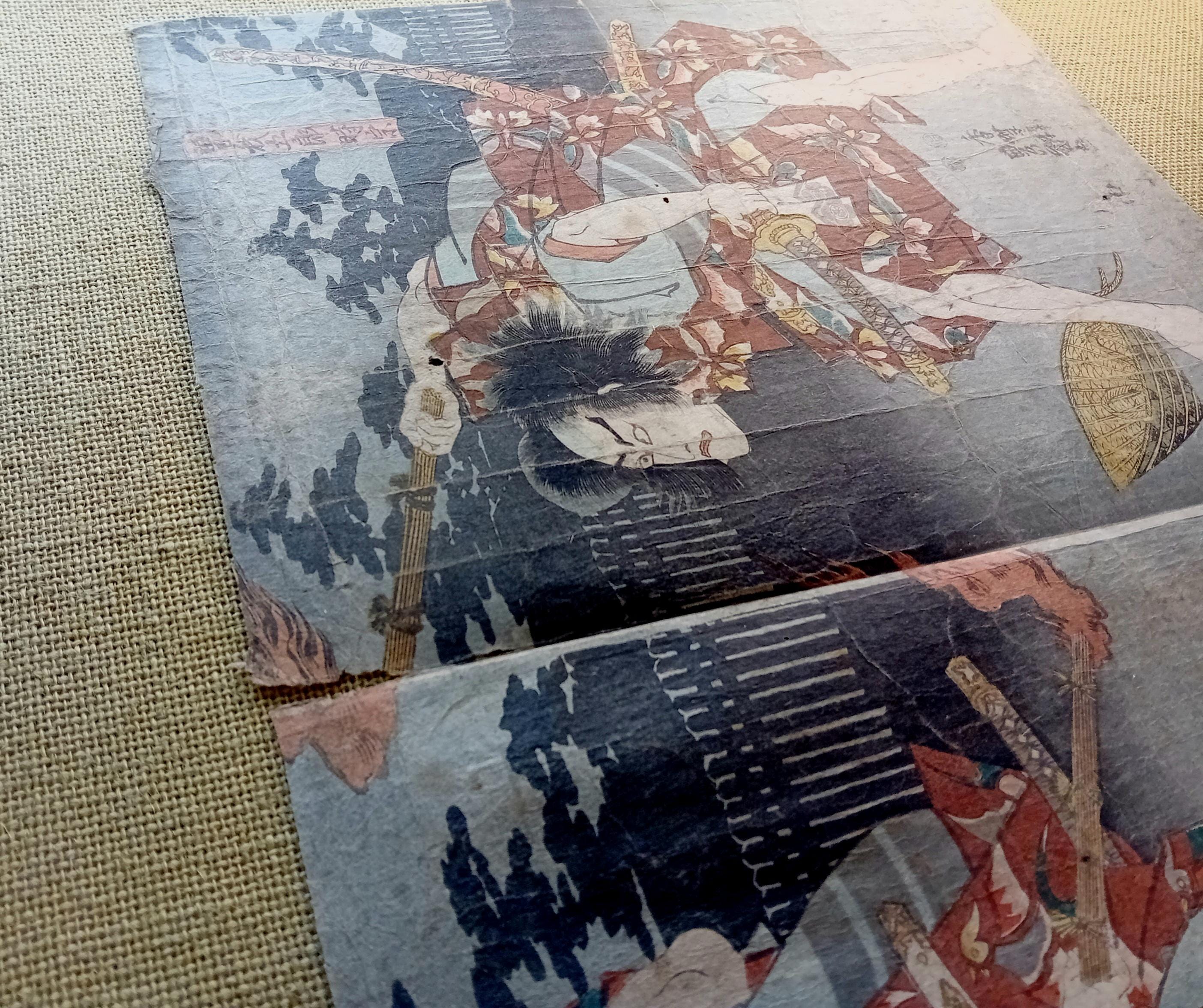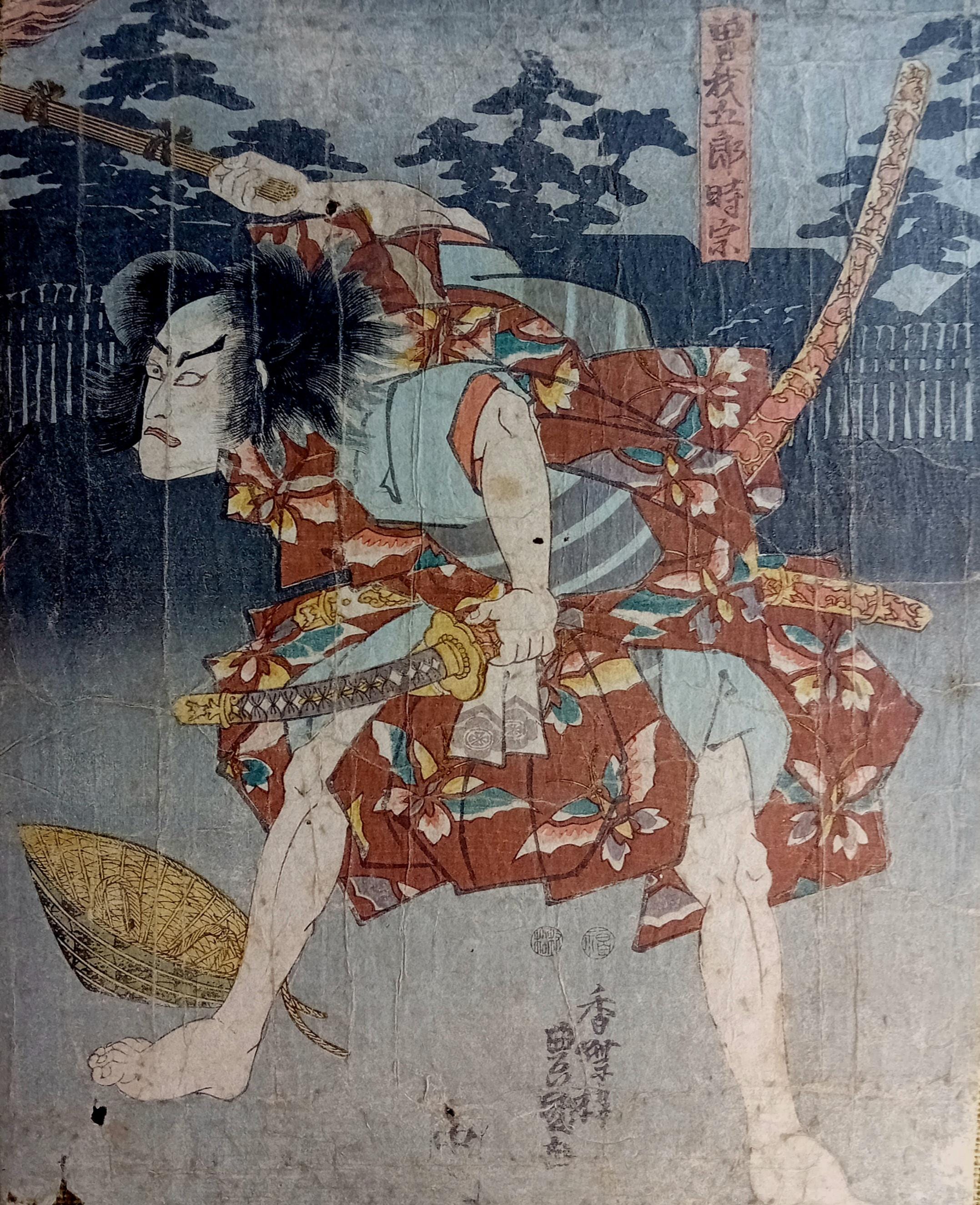 Antique Japanese polychrome woodblock print from the Edo period, circa 1851.