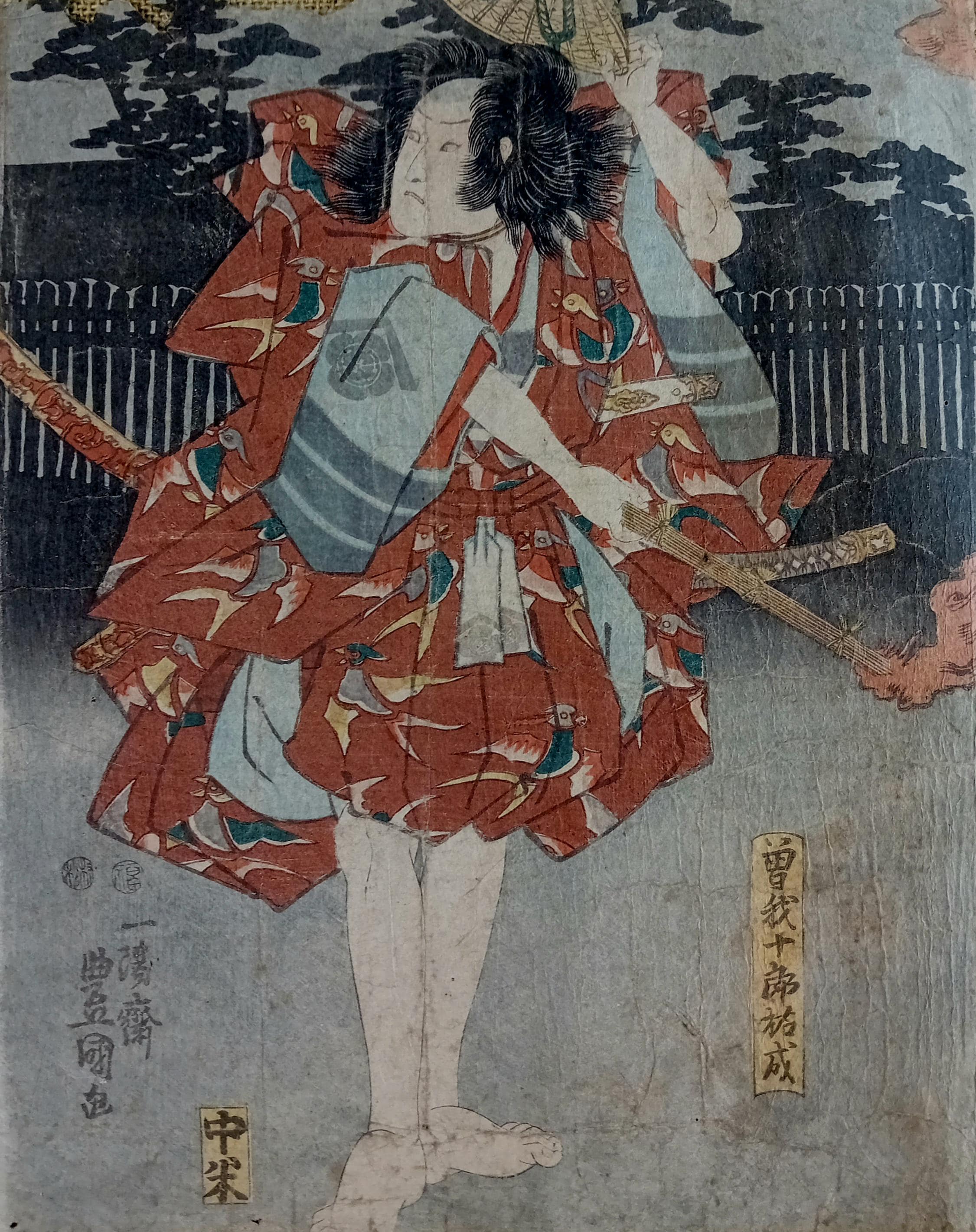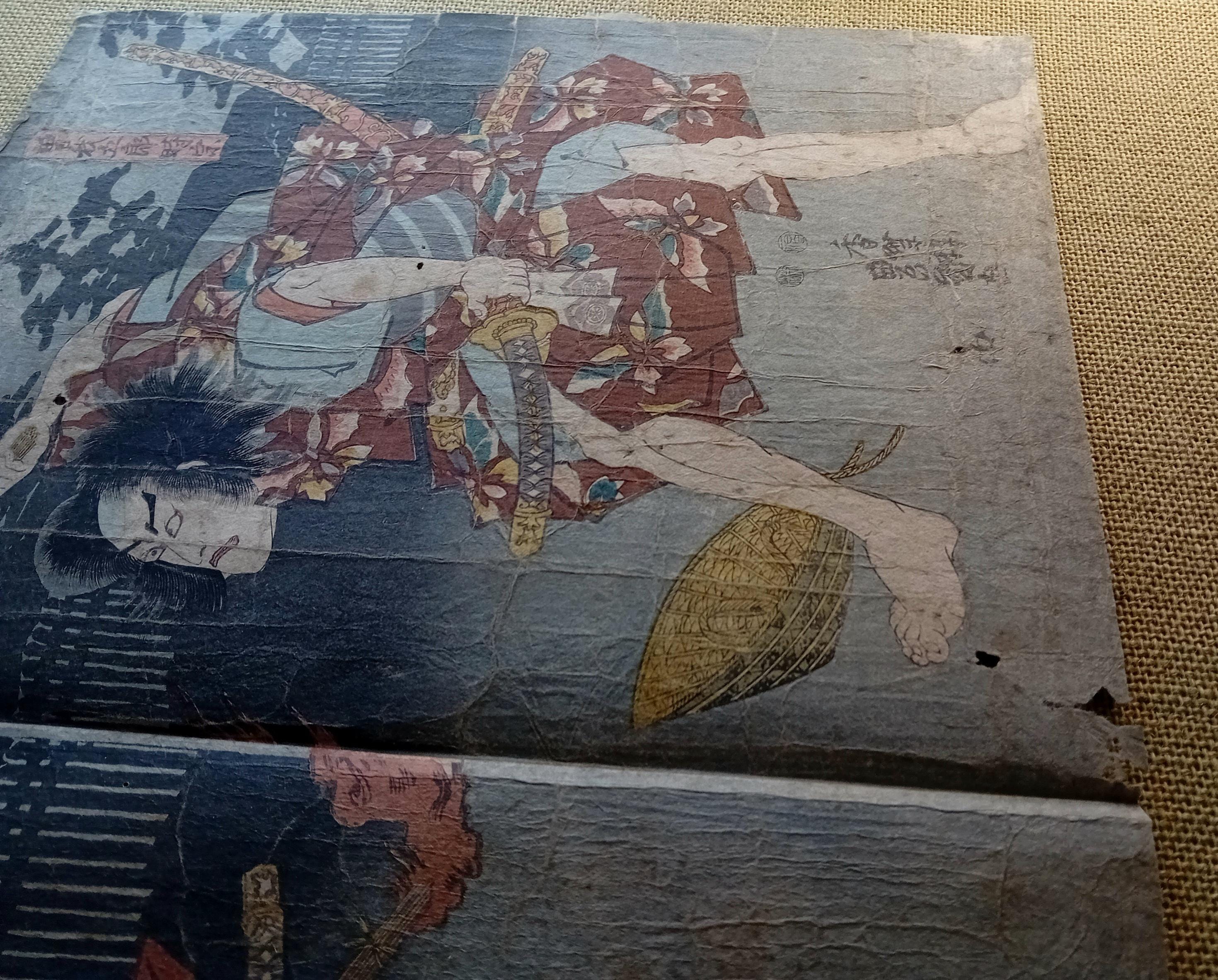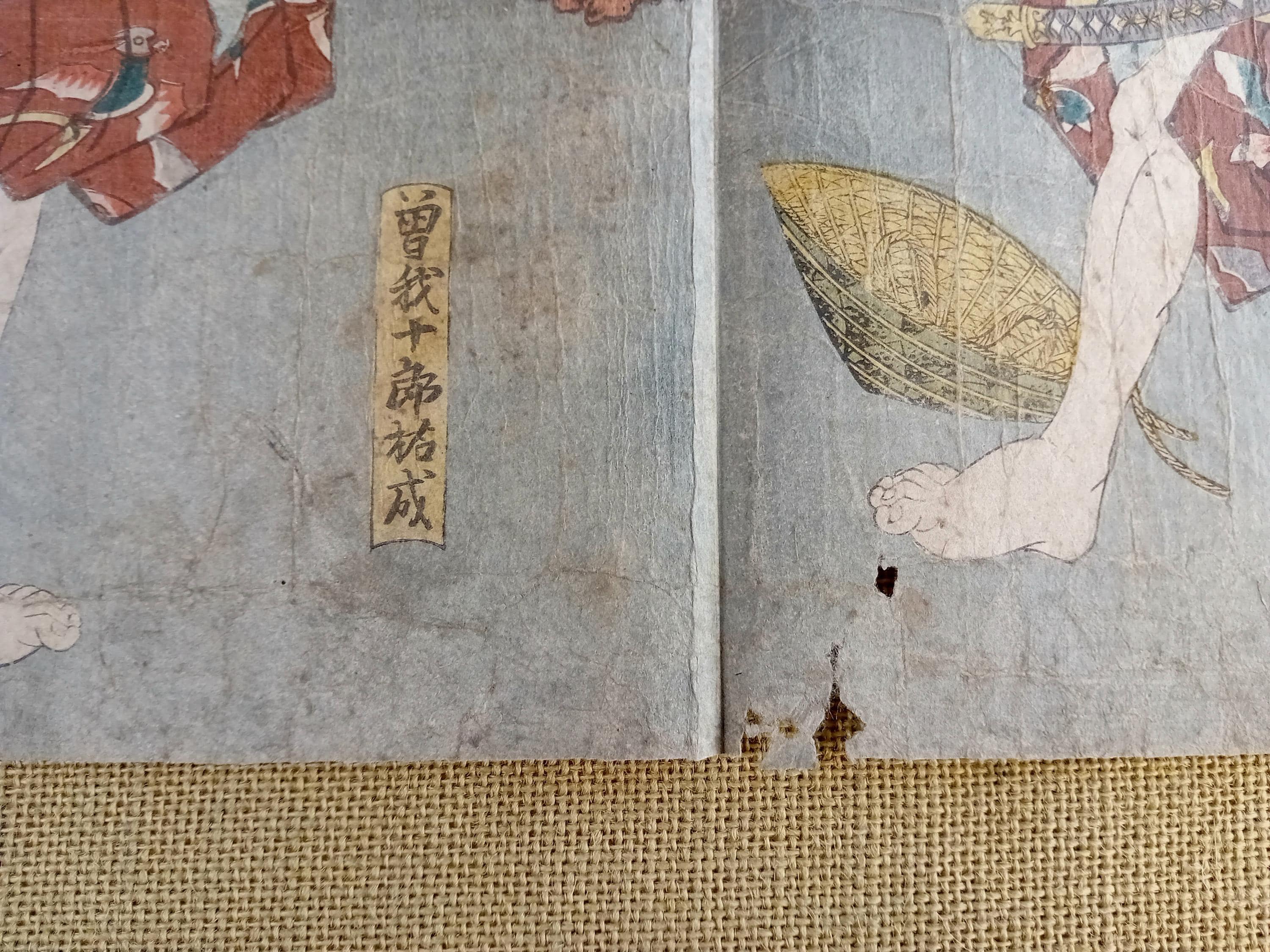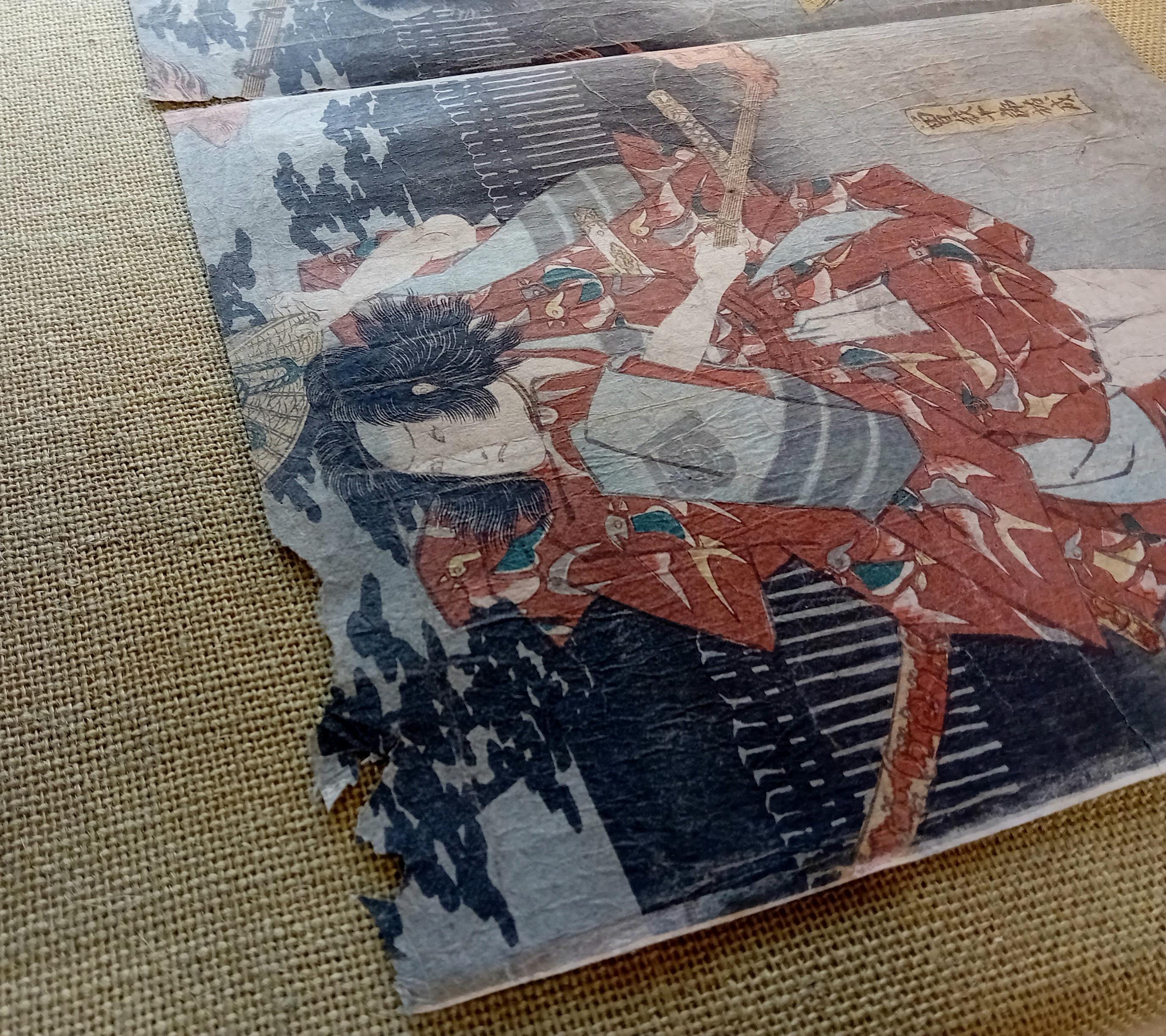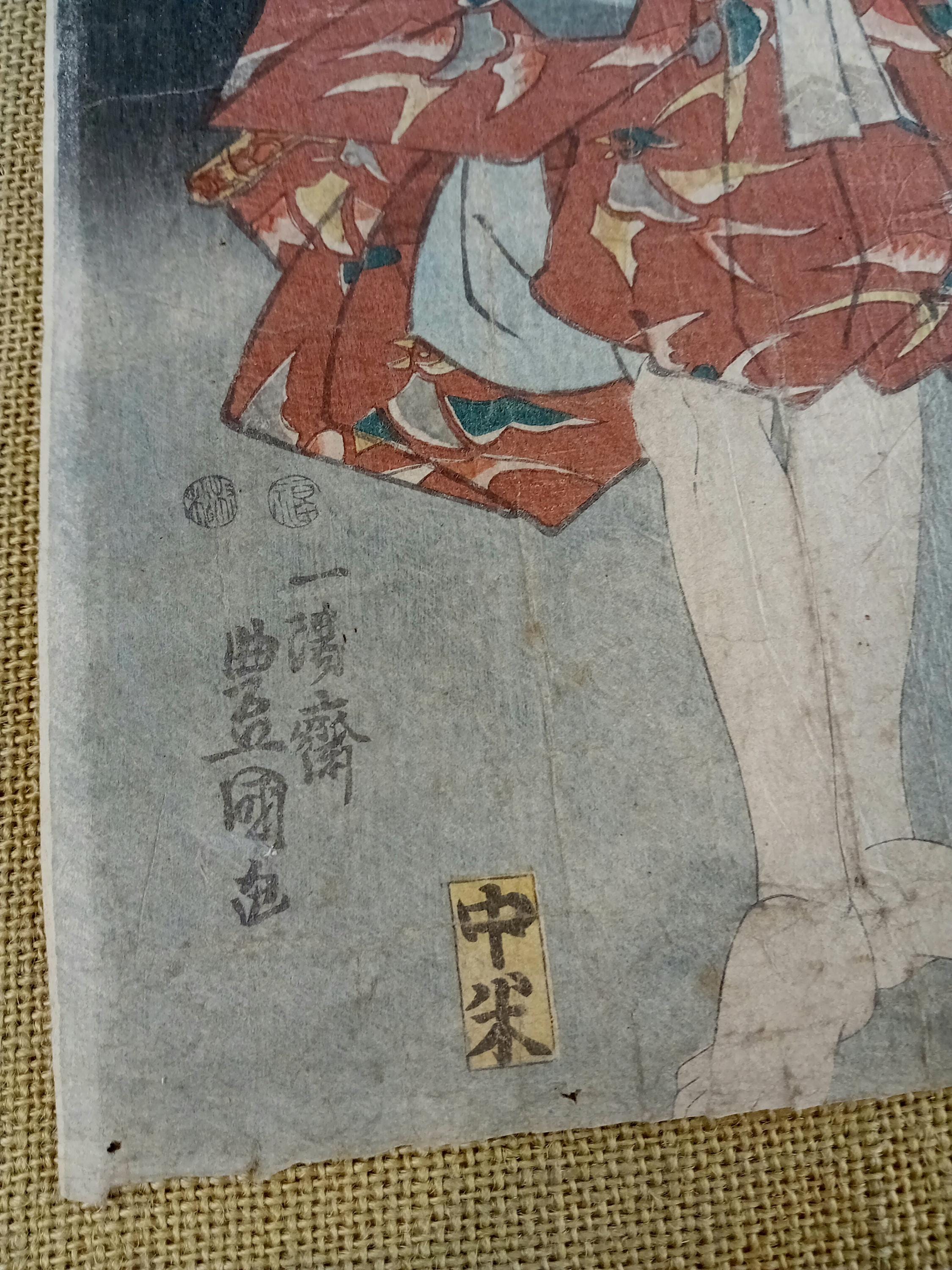 Antique Japanese polychrome woodblock print from the Edo period, circa 1851.