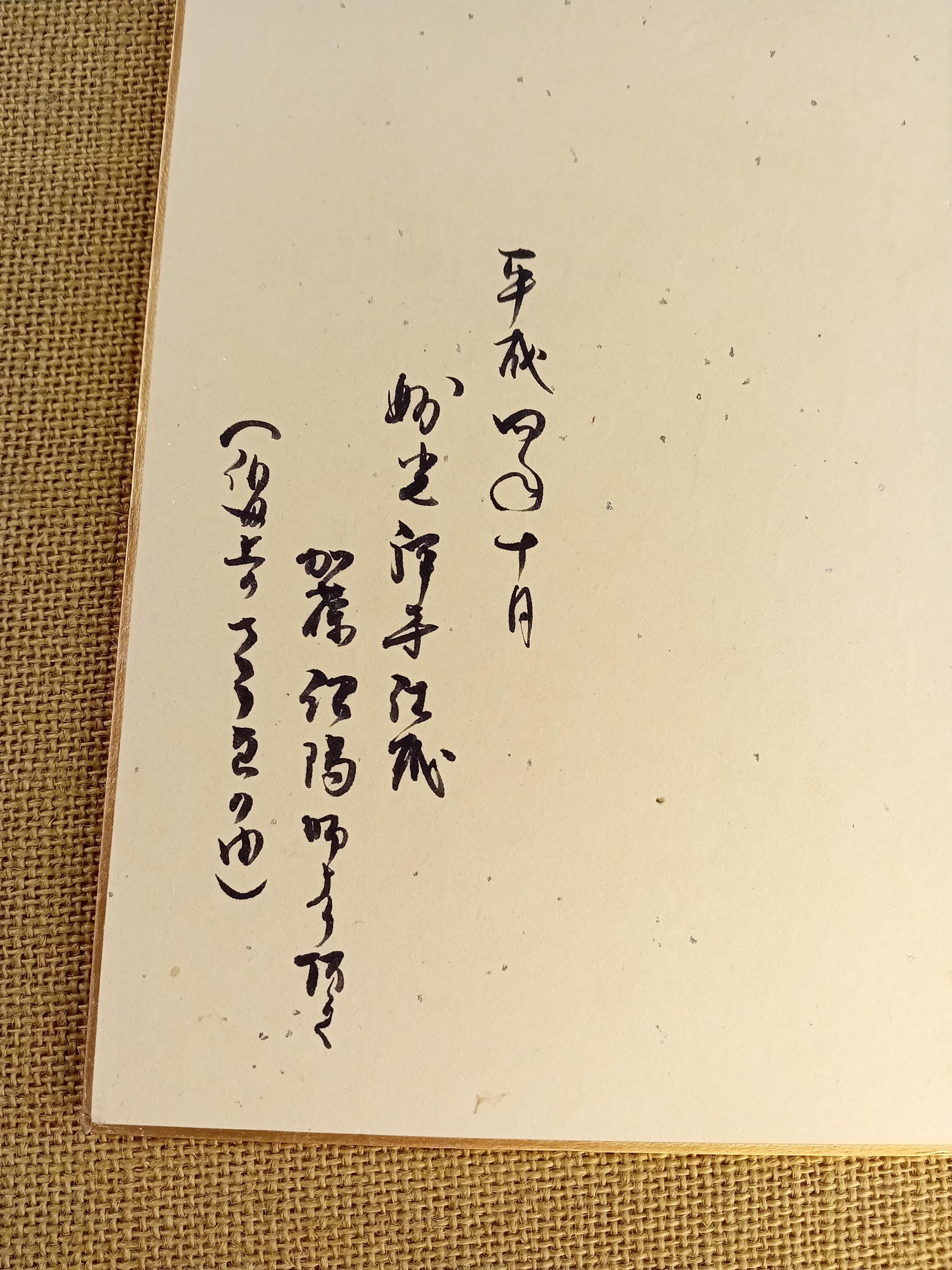 The technique incorporates visible plant fibers or small fragments of washi embedded into the surface, contributing to the texture and painterly effect.