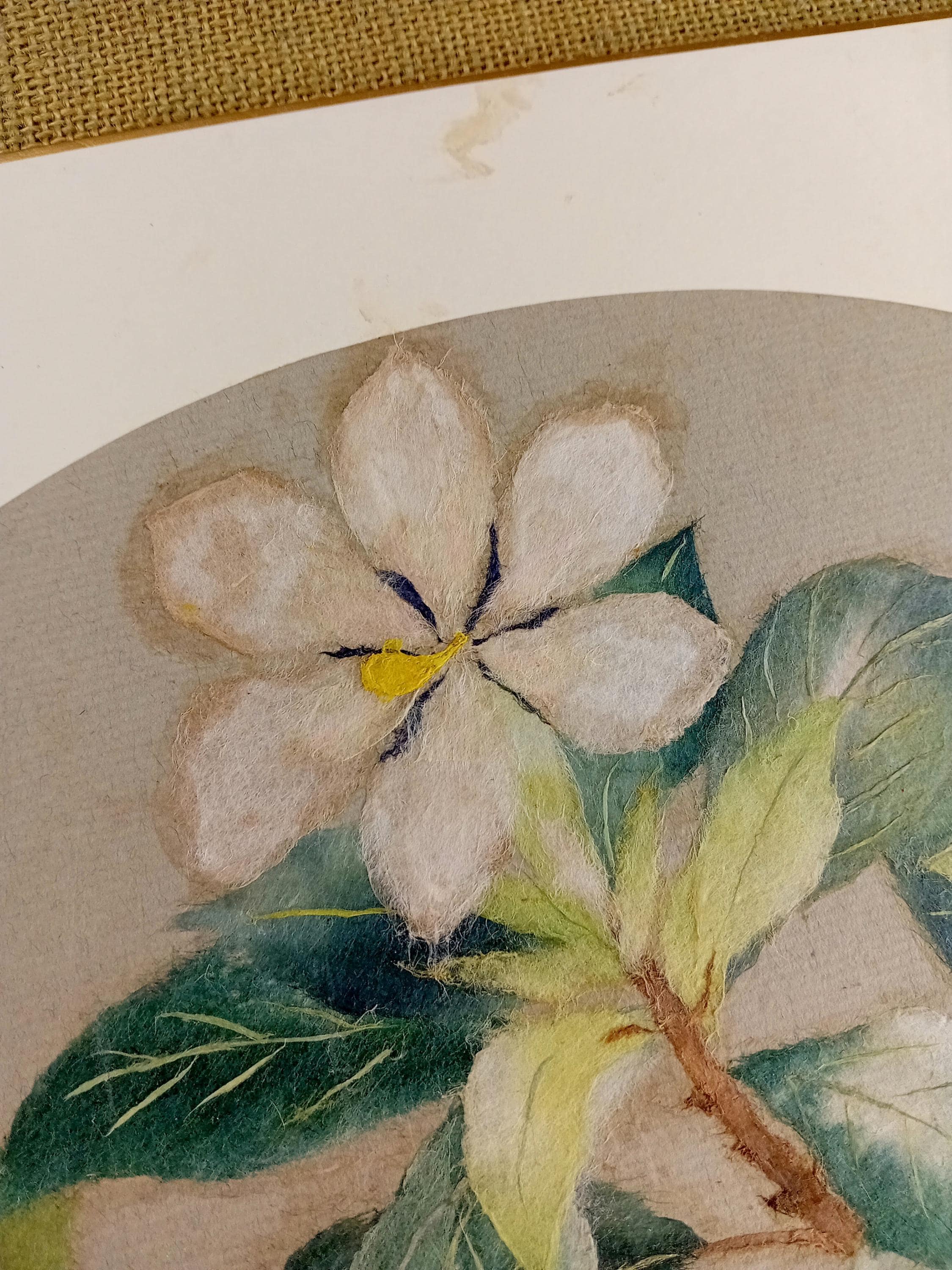 Soft watercolor technique with calm tonal gradients and a balanced botanical arrangement.
