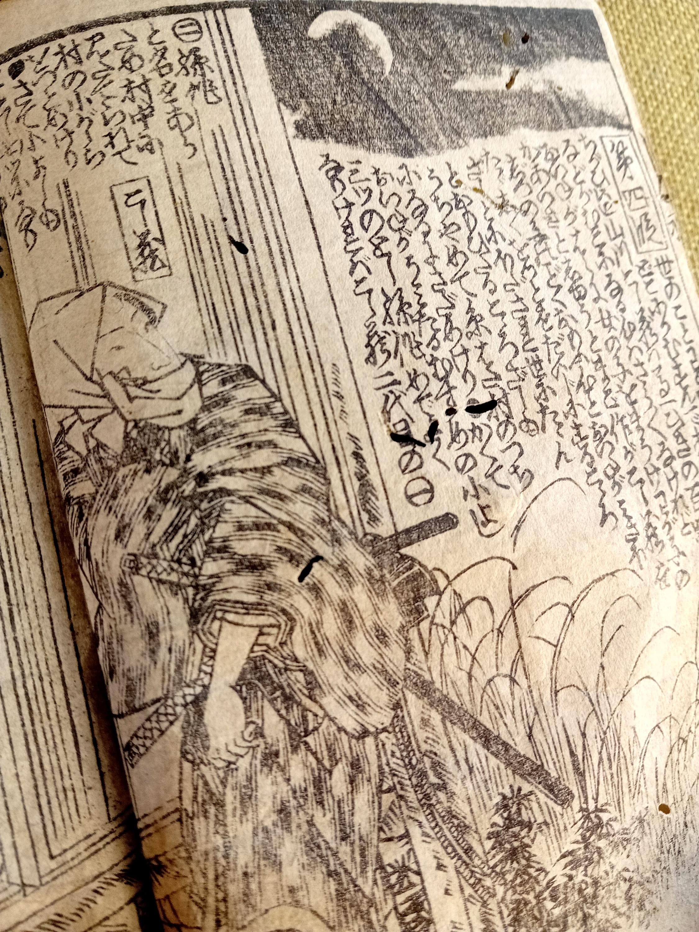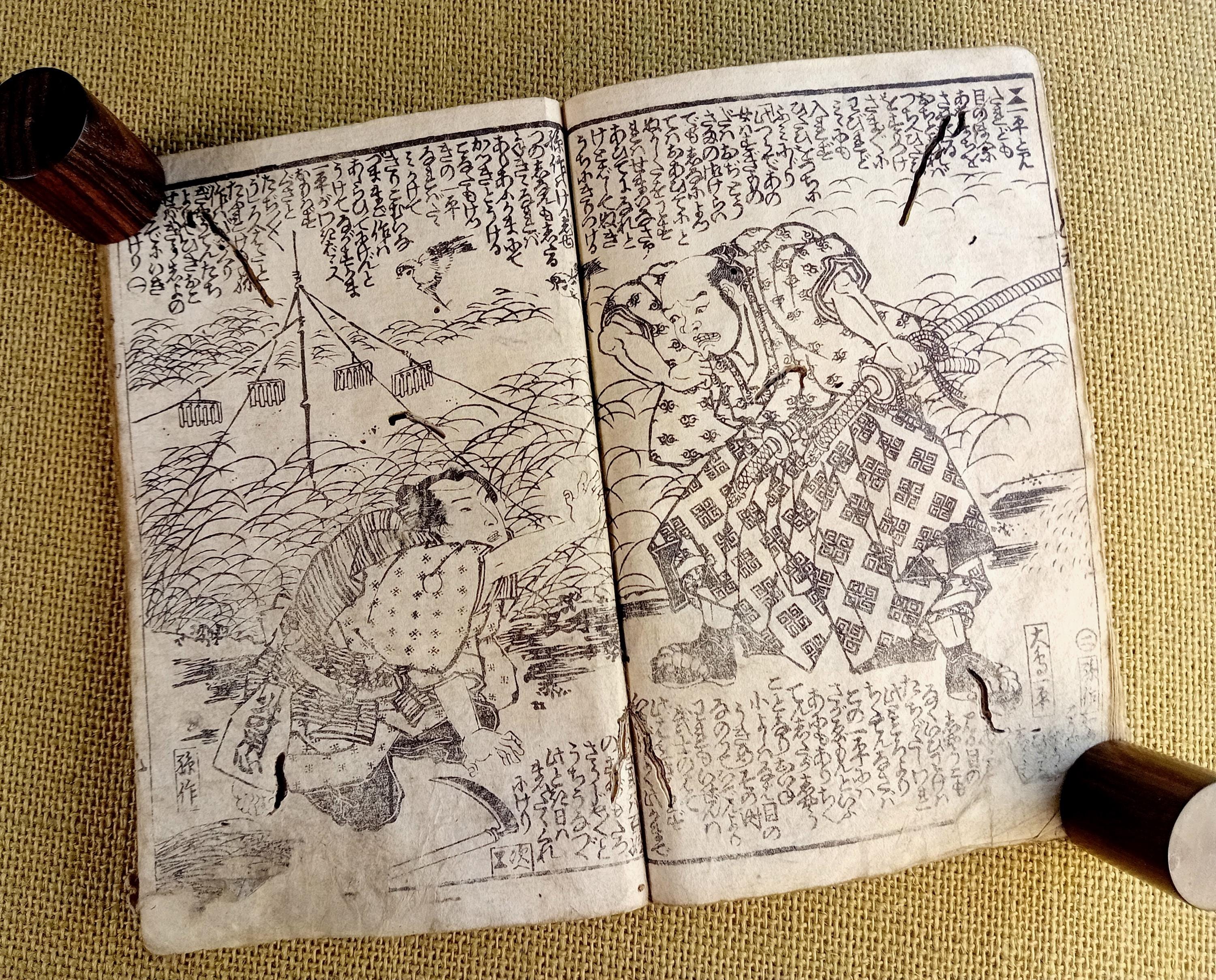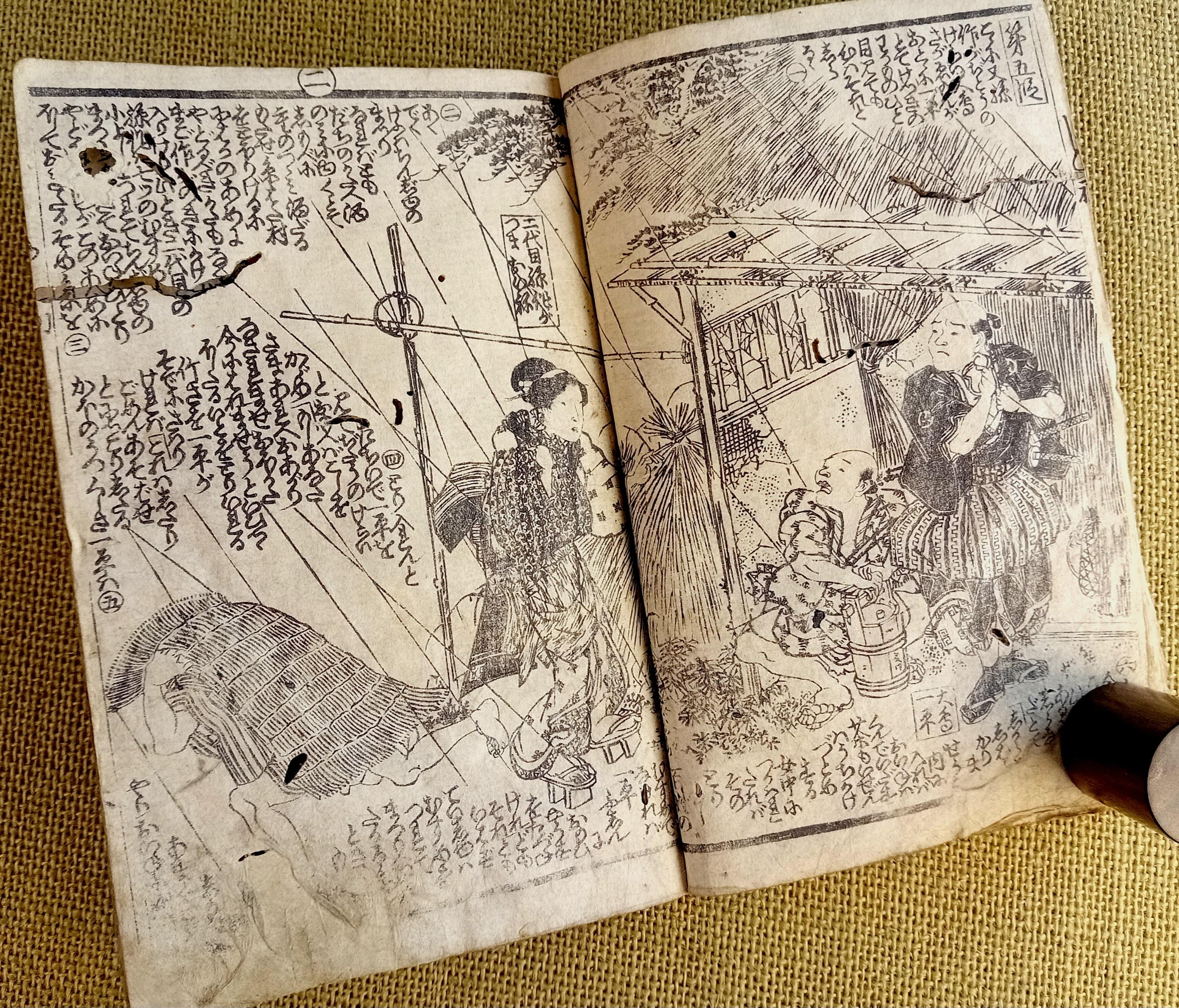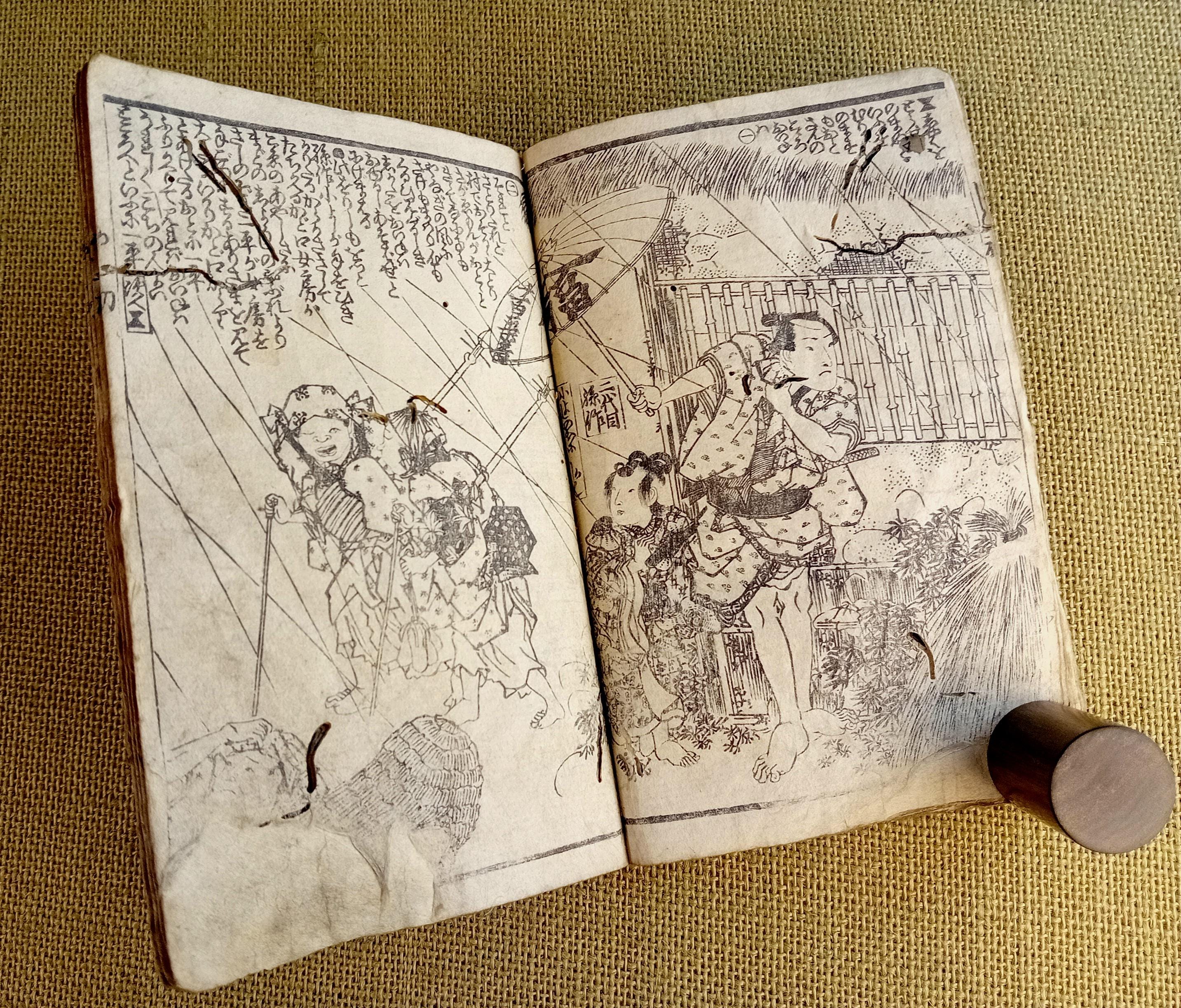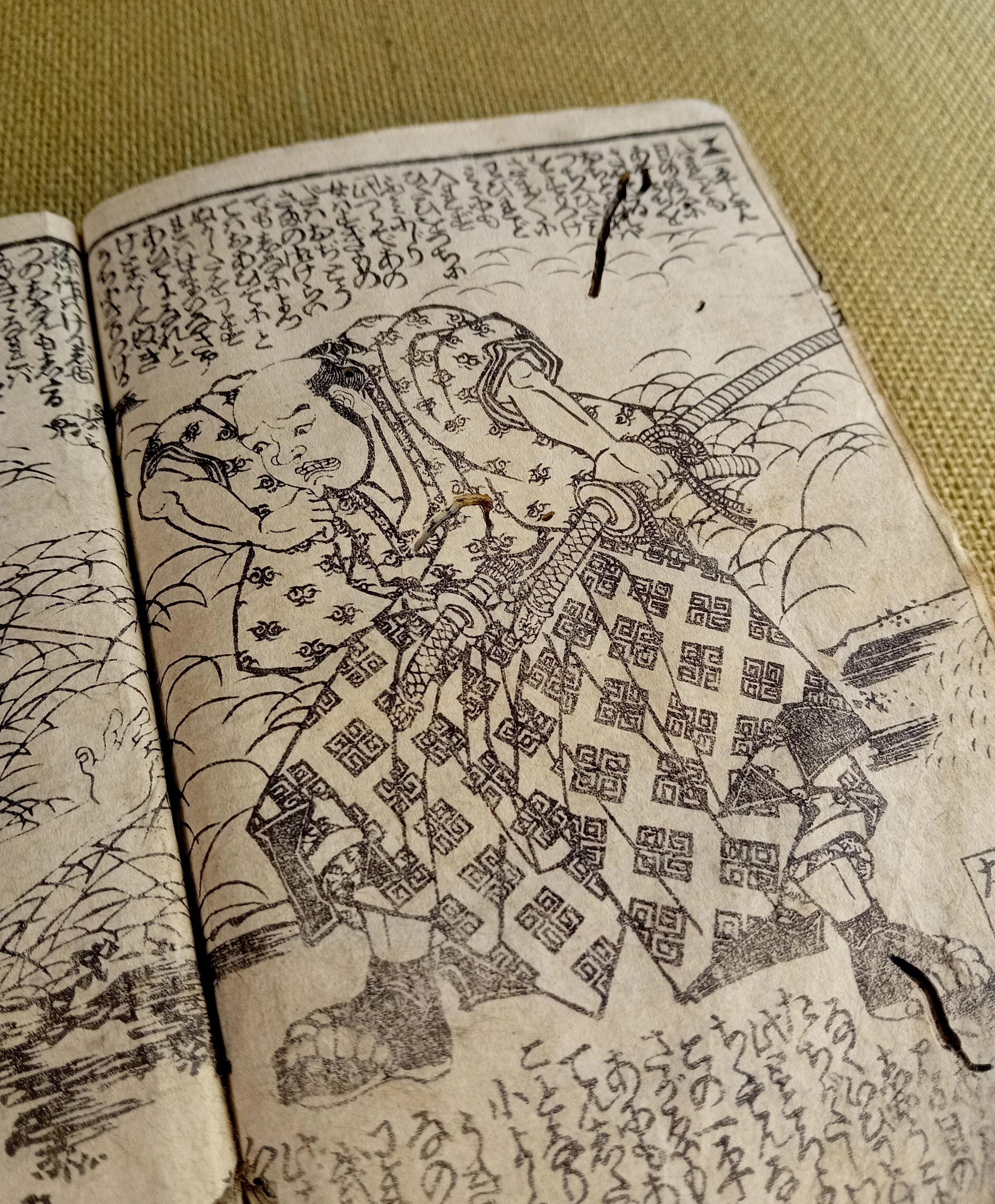 Illustrated Japanese book printed from carved wooden blocks on traditional paper.