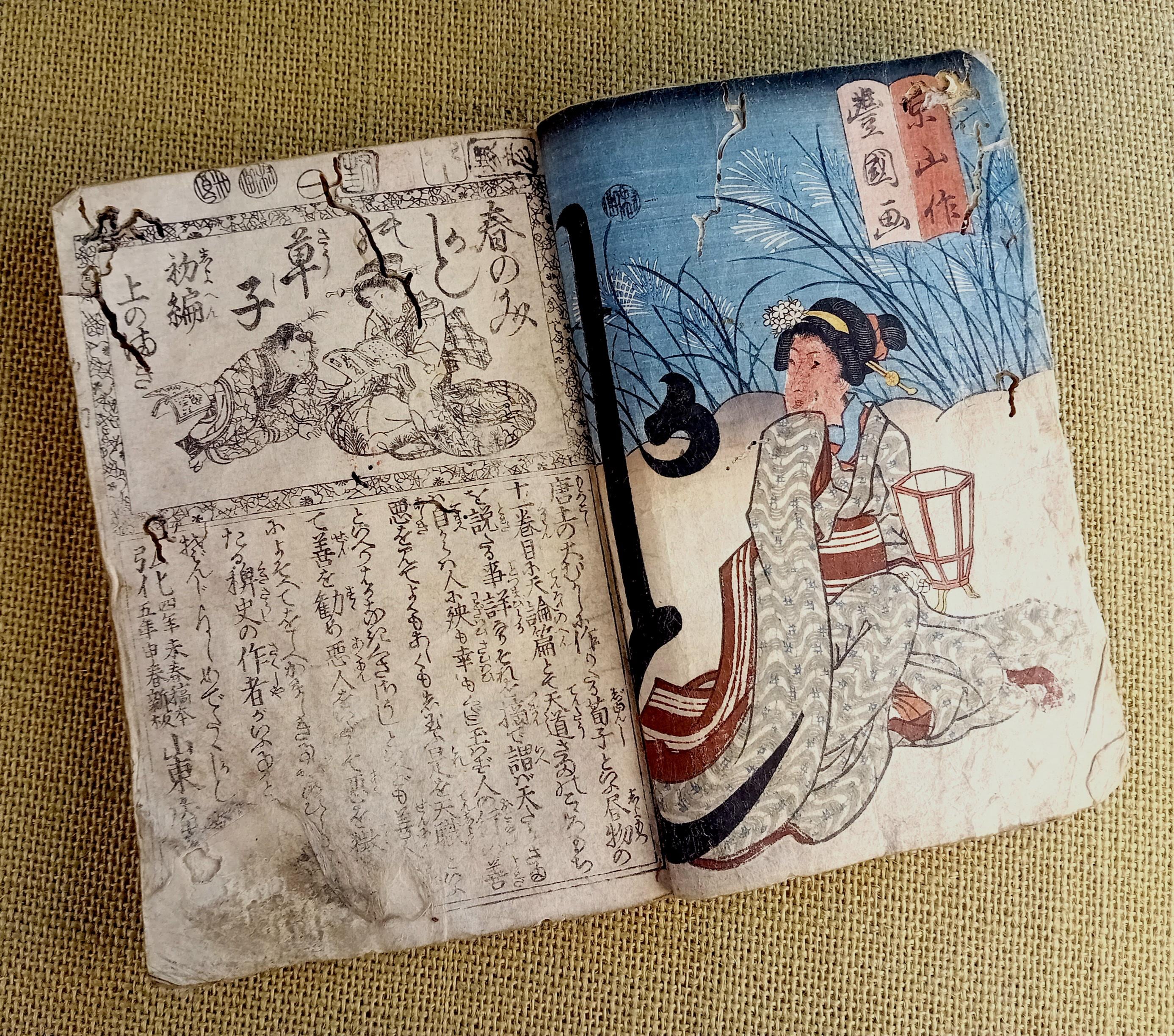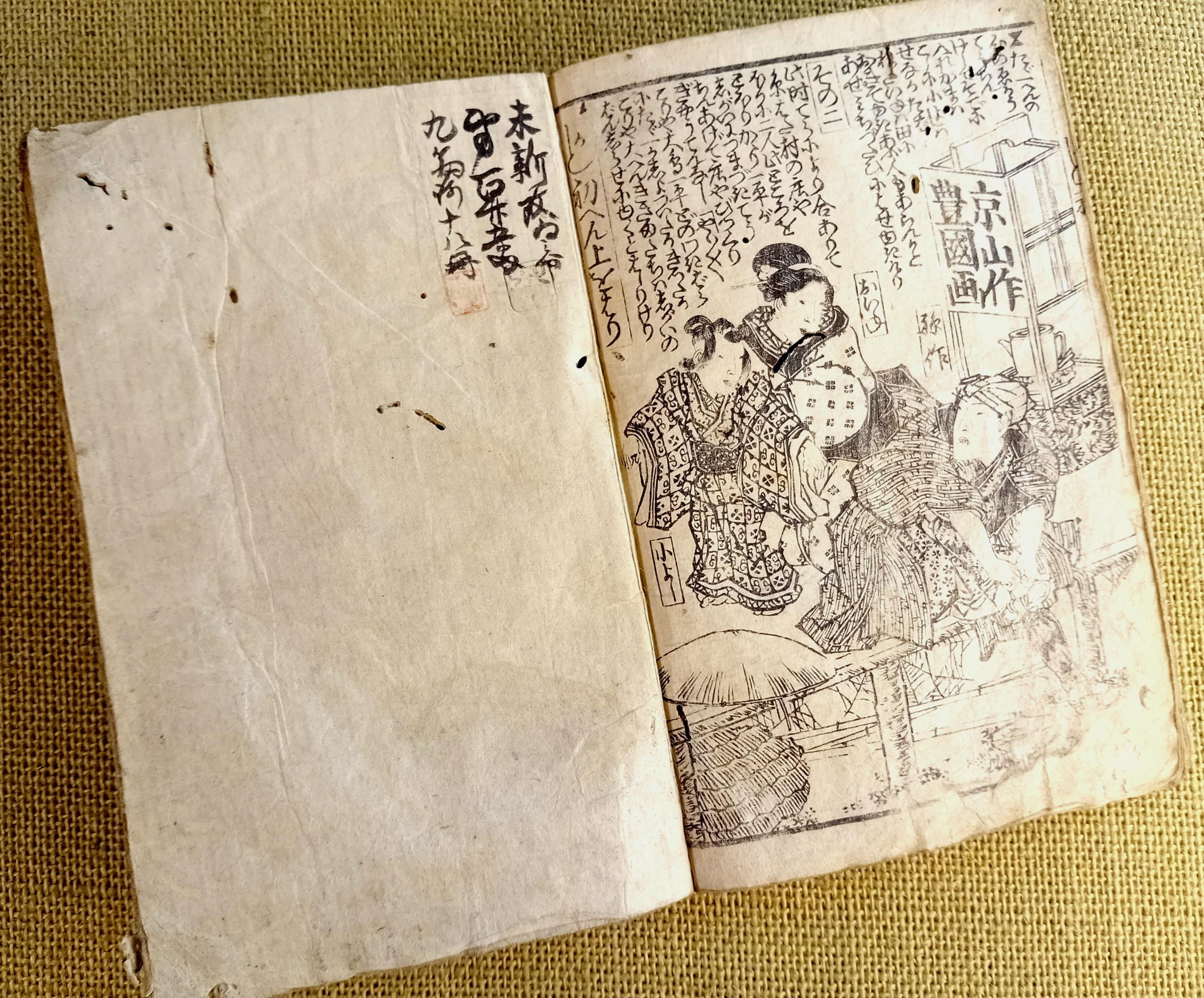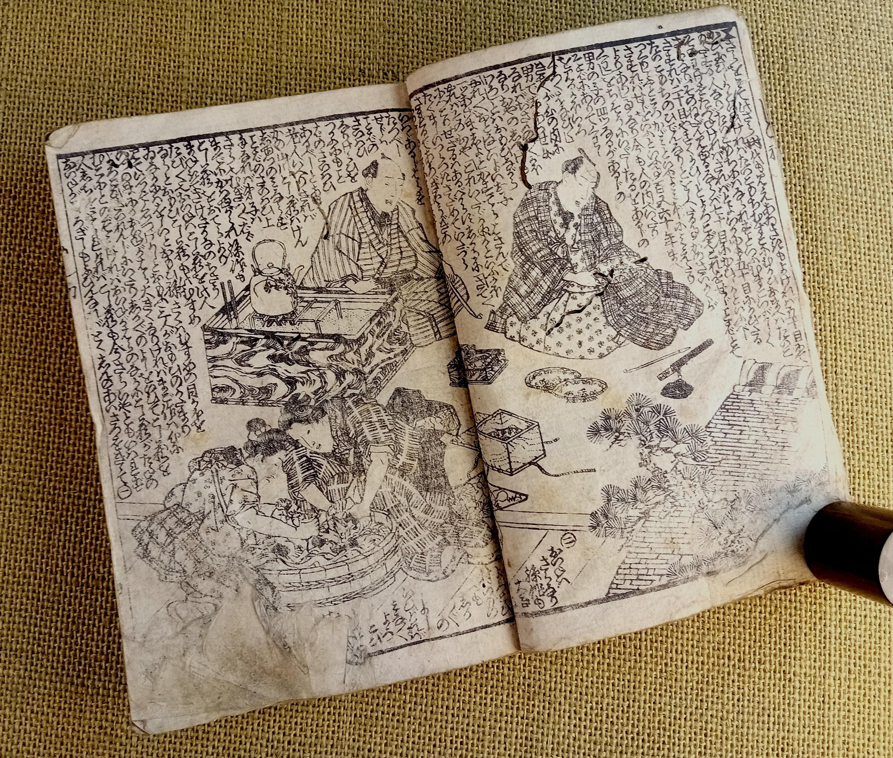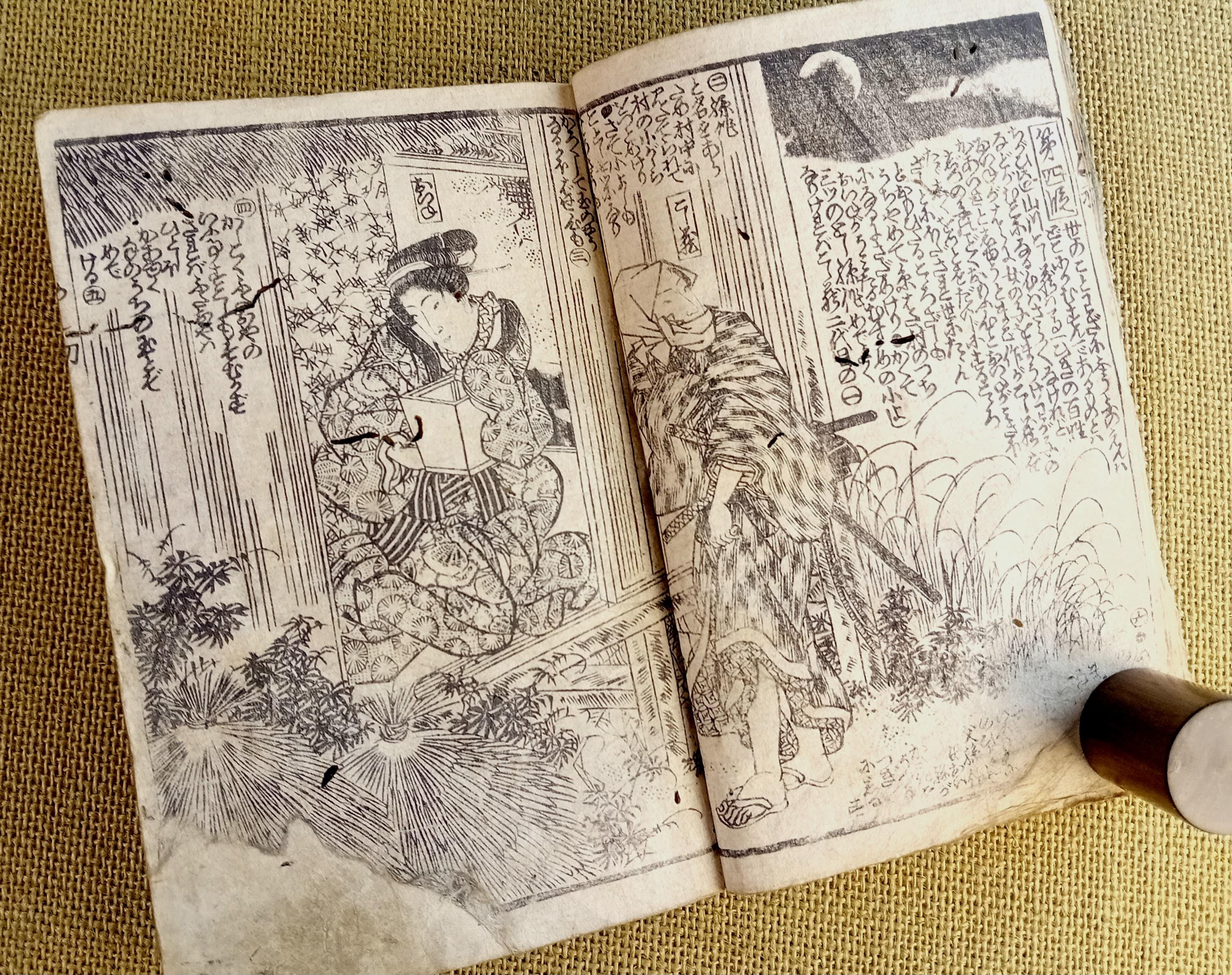 Antique Japanese illustrated book produced using traditional woodblock printing.