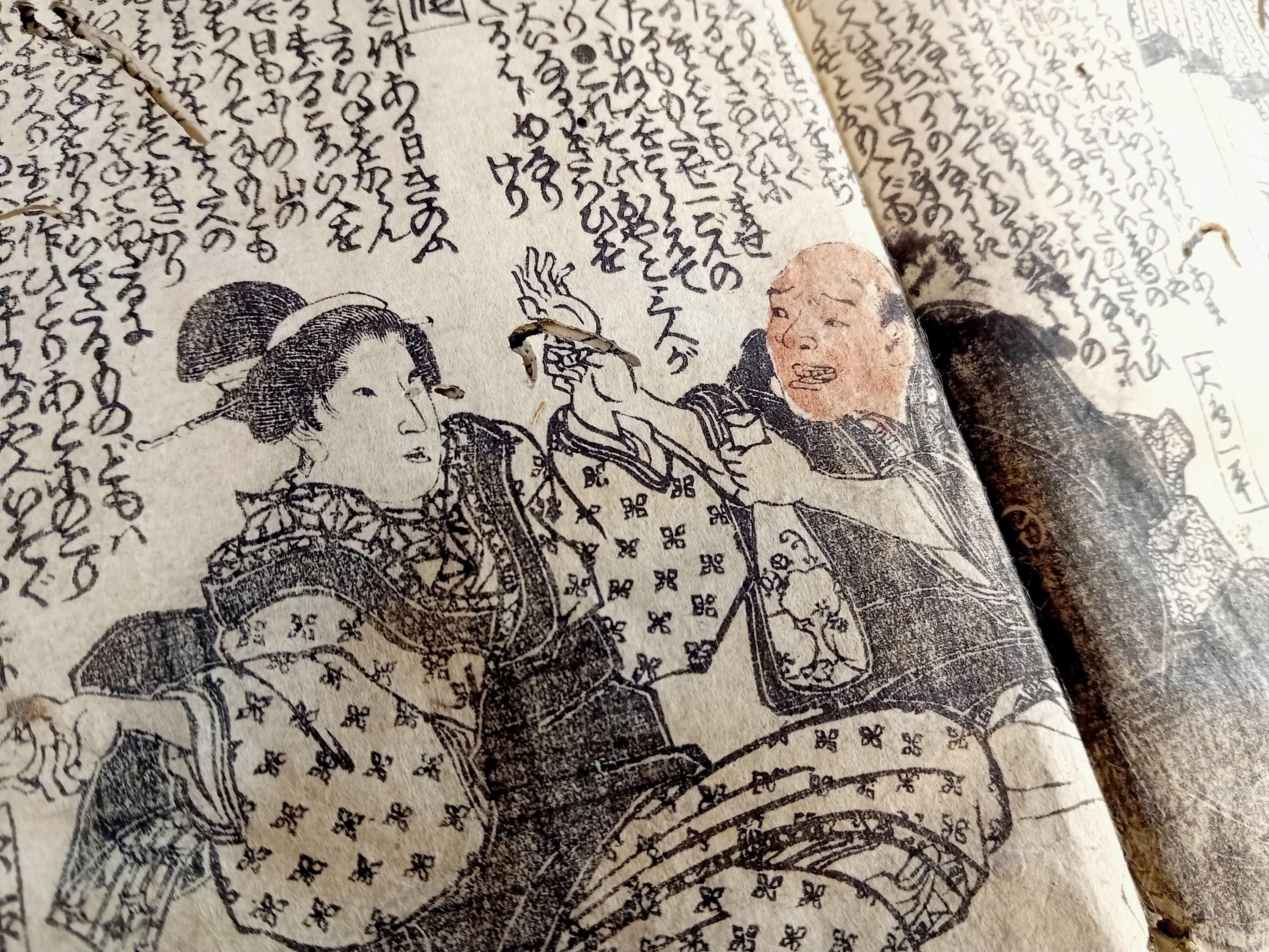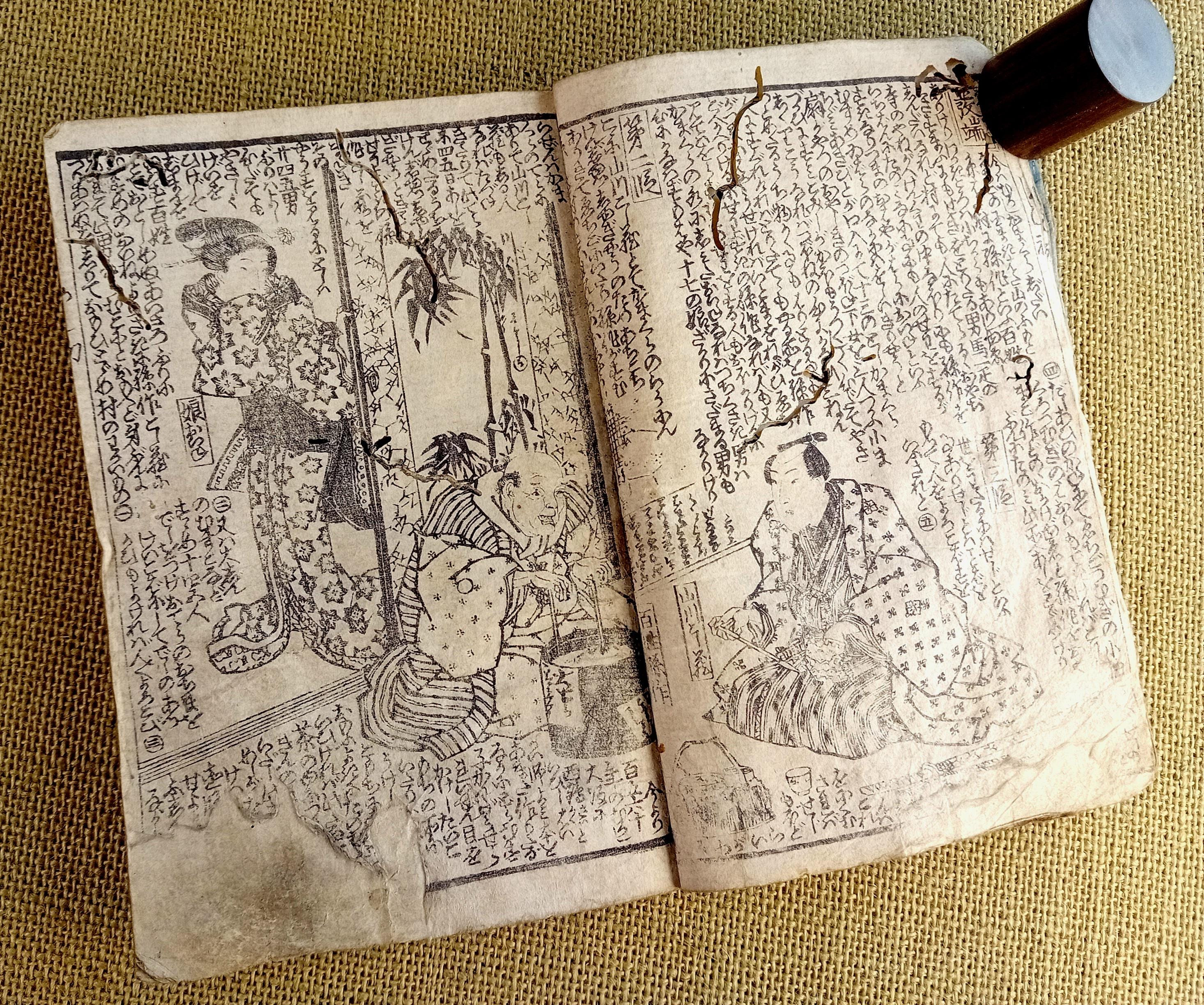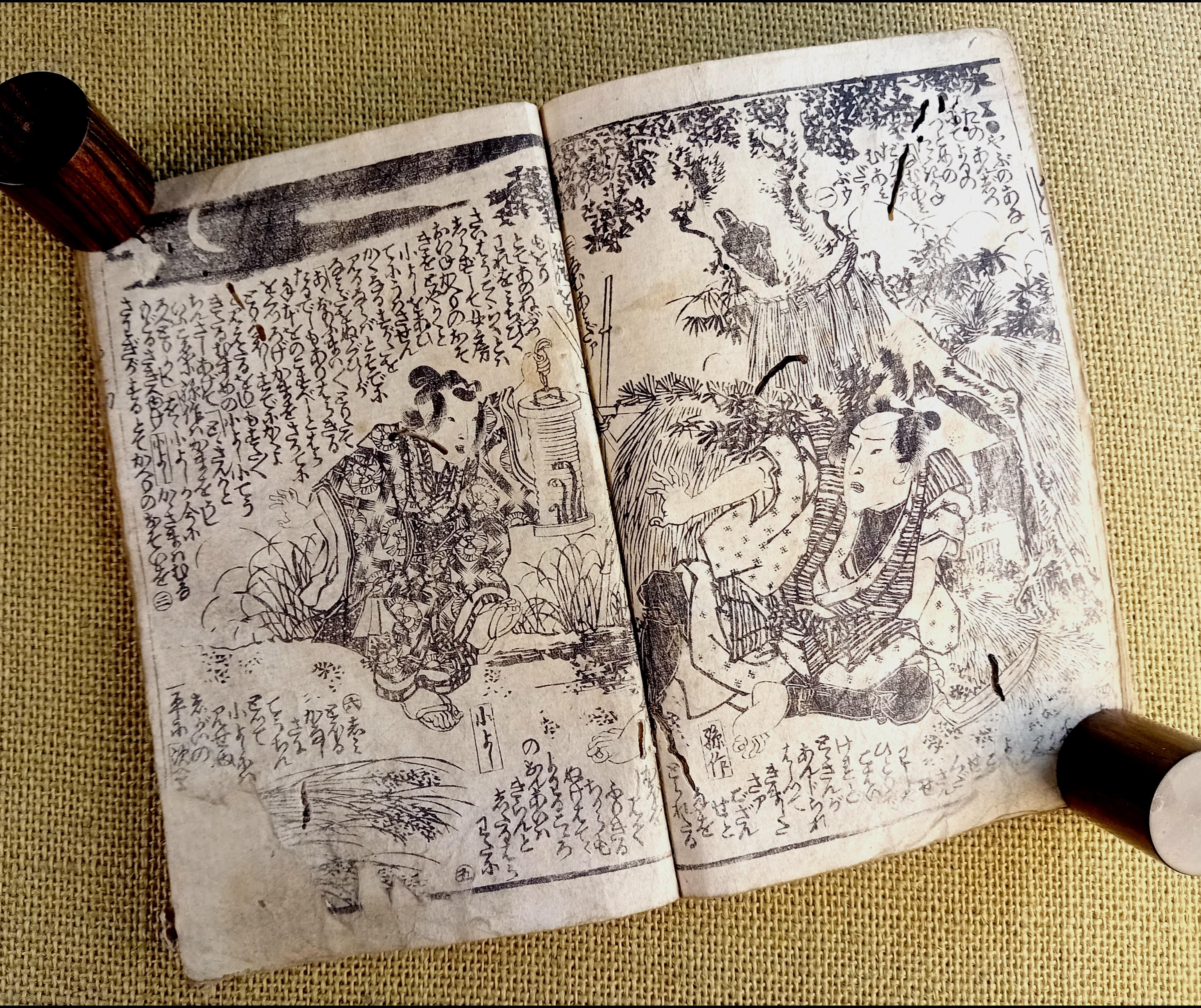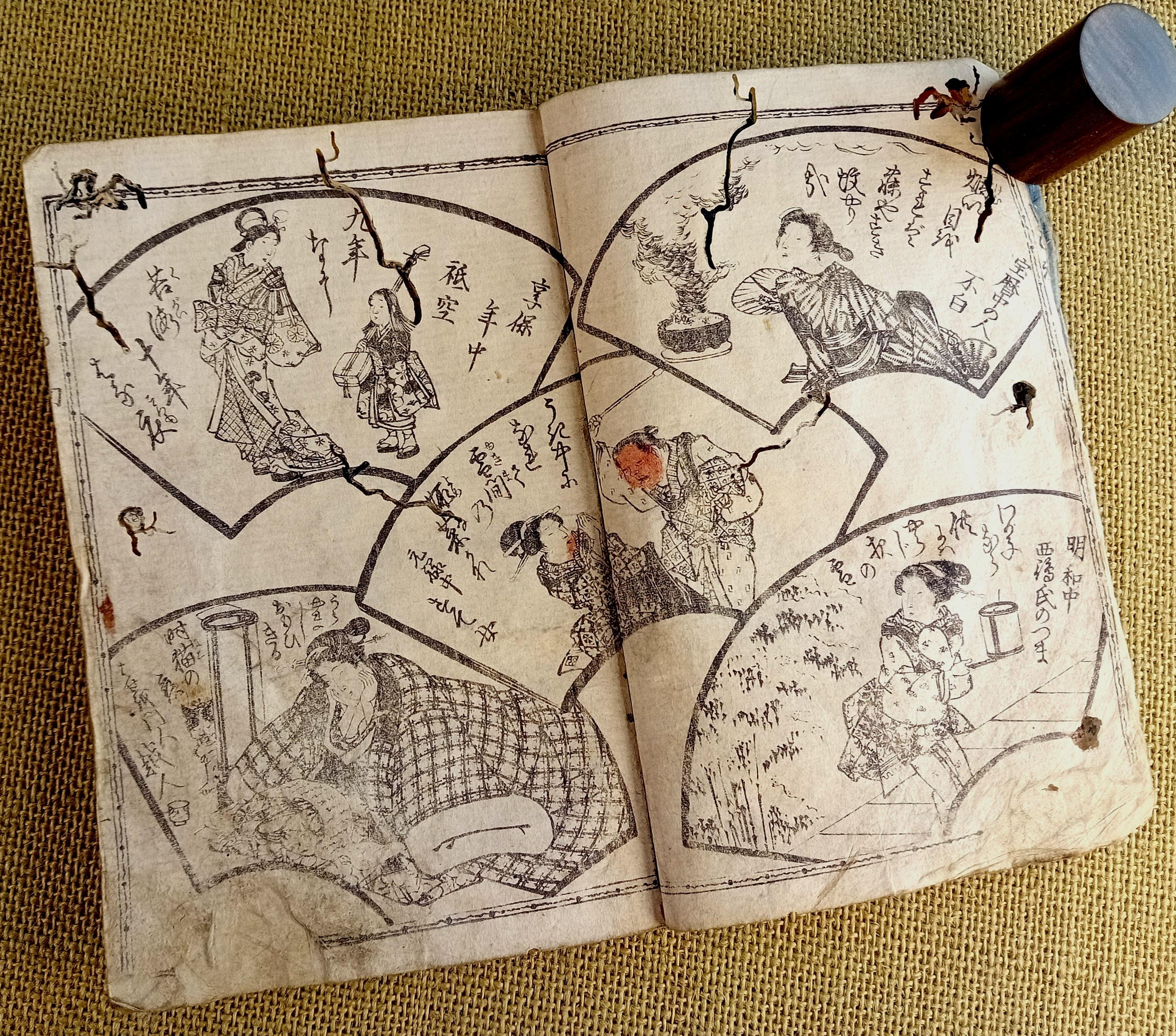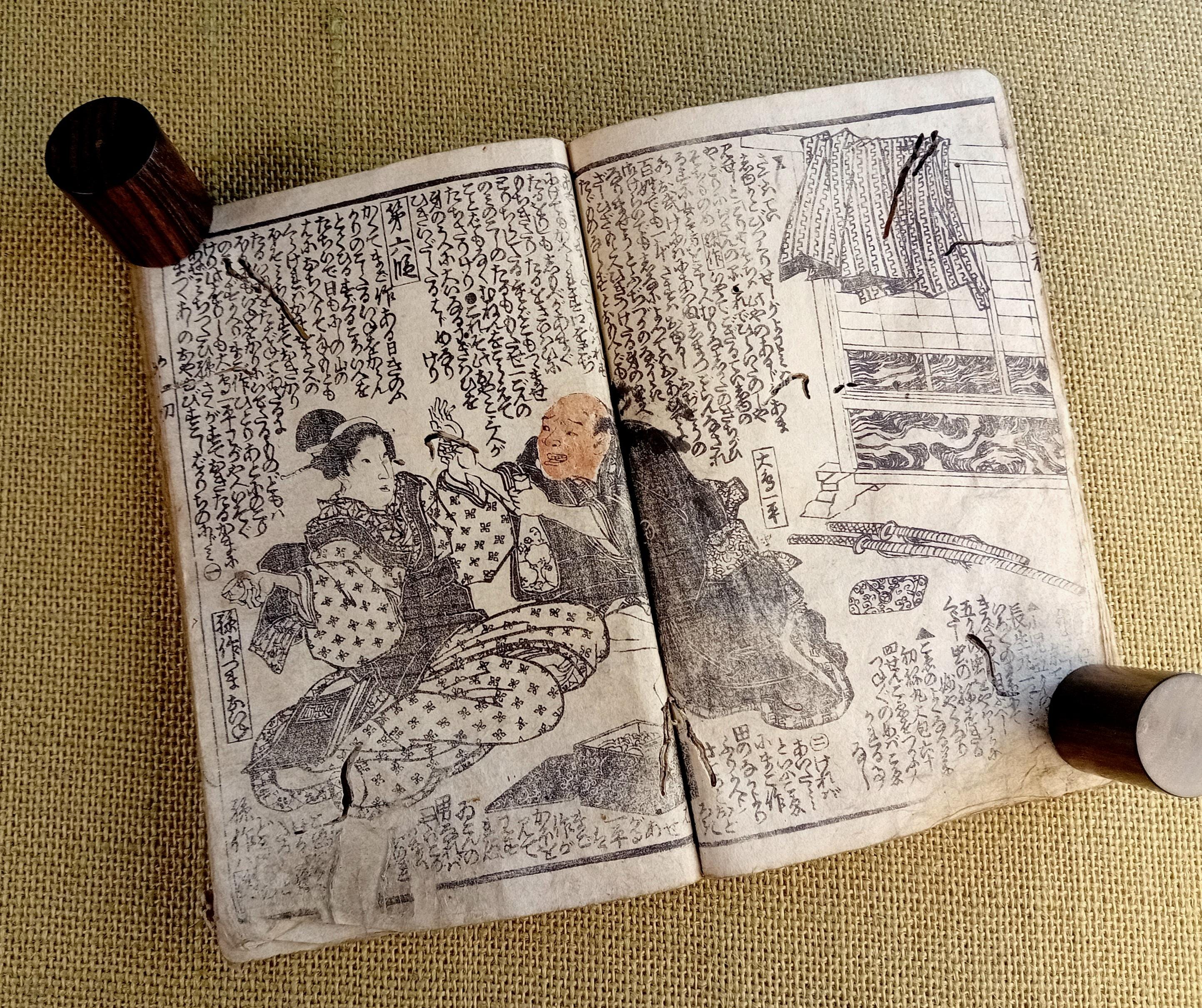 Antique Japanese illustrated book produced using traditional woodblock printing.