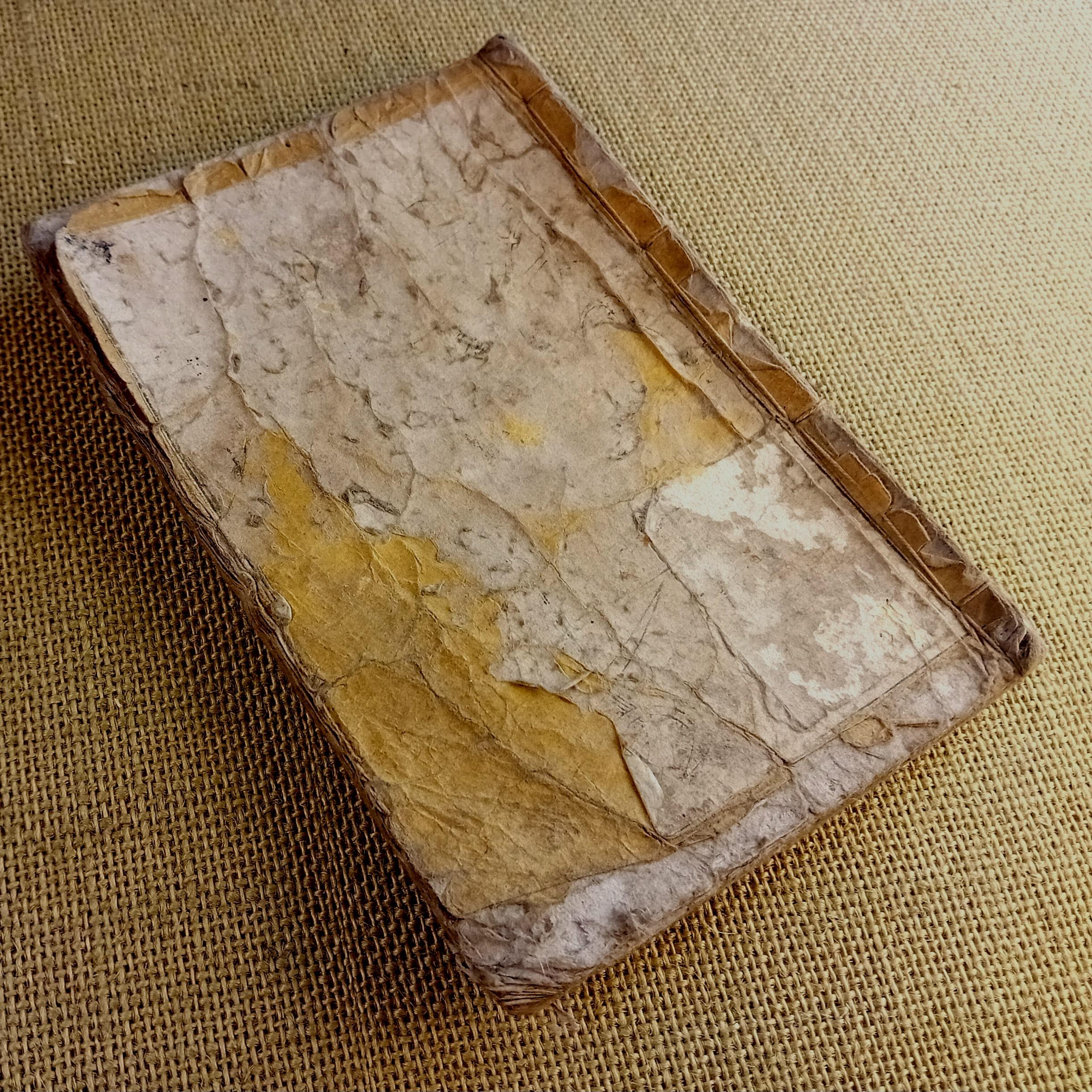 Antique condition. Natural signs of age are present, including paper toning, traces of insect activity, surface wear, and worn covers, consistent with the historical use of an authentic Edo-period woodblock-printed book.