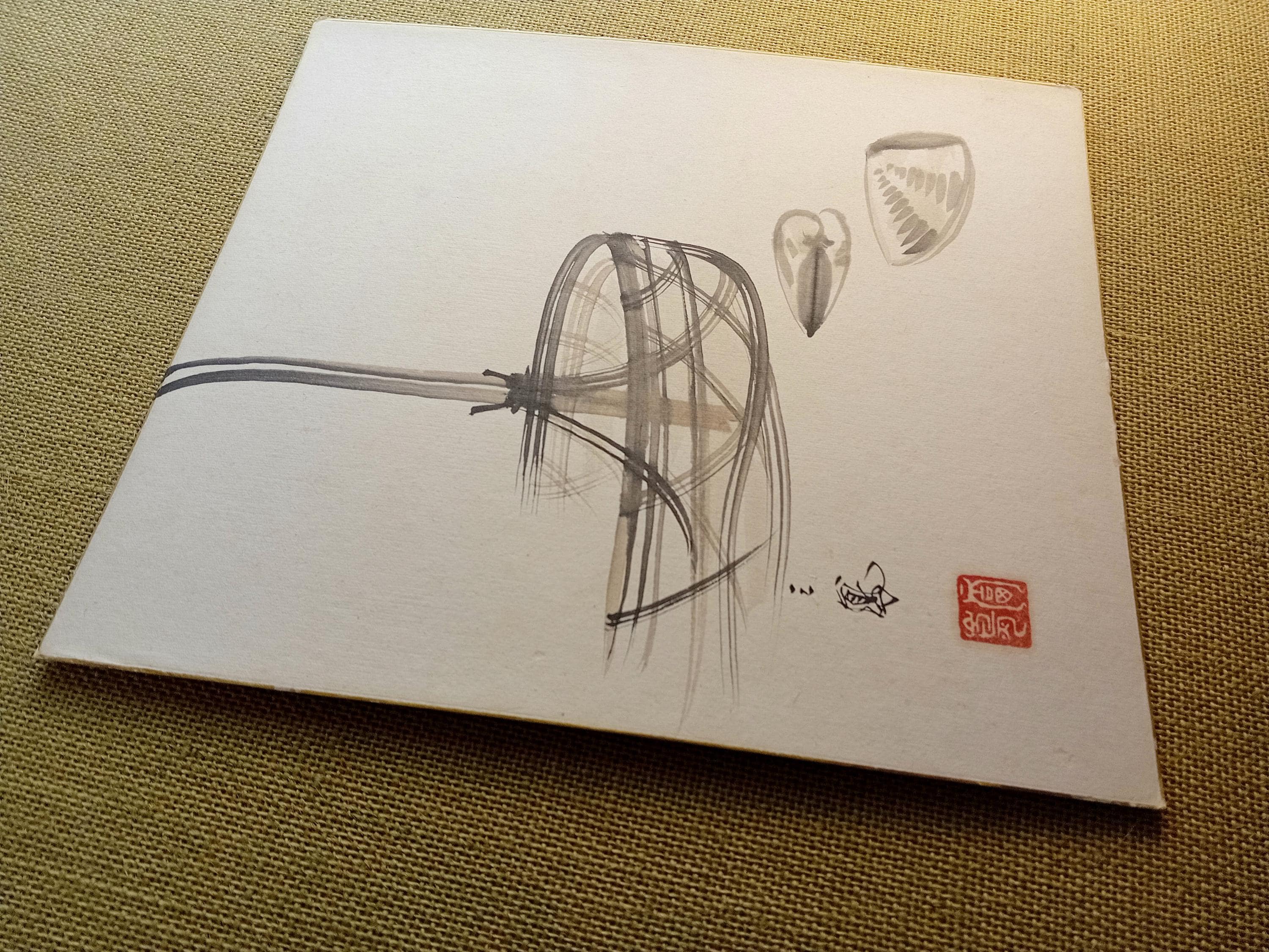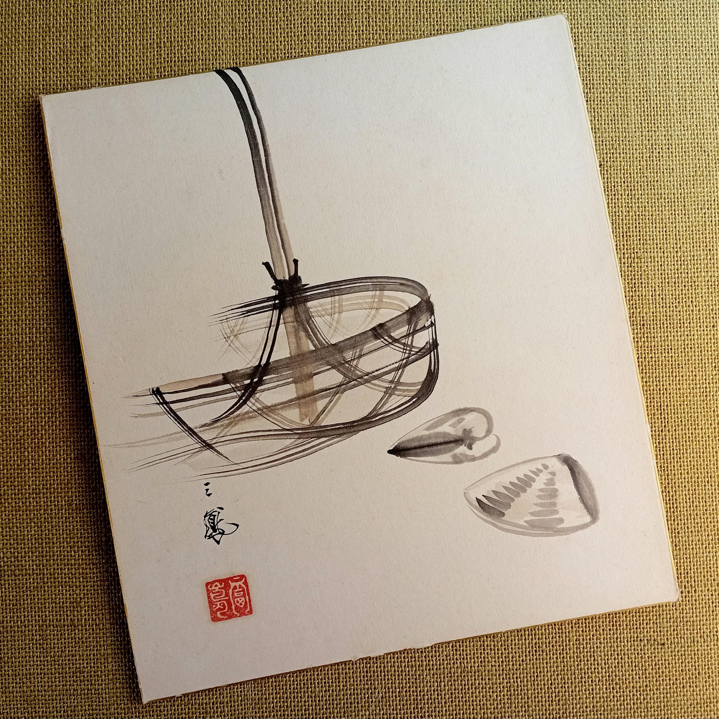Japanese ink painting on shikishi from the Shōwa period.