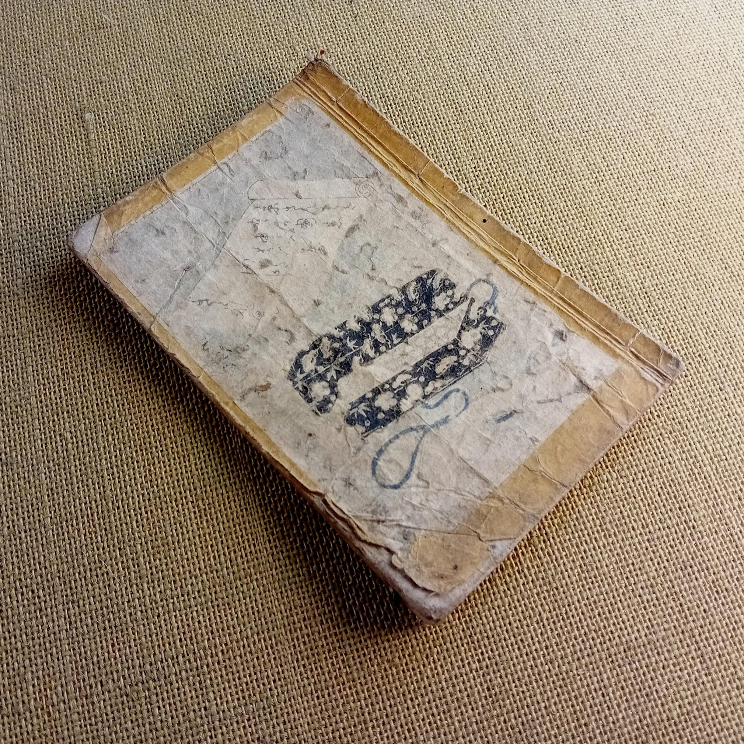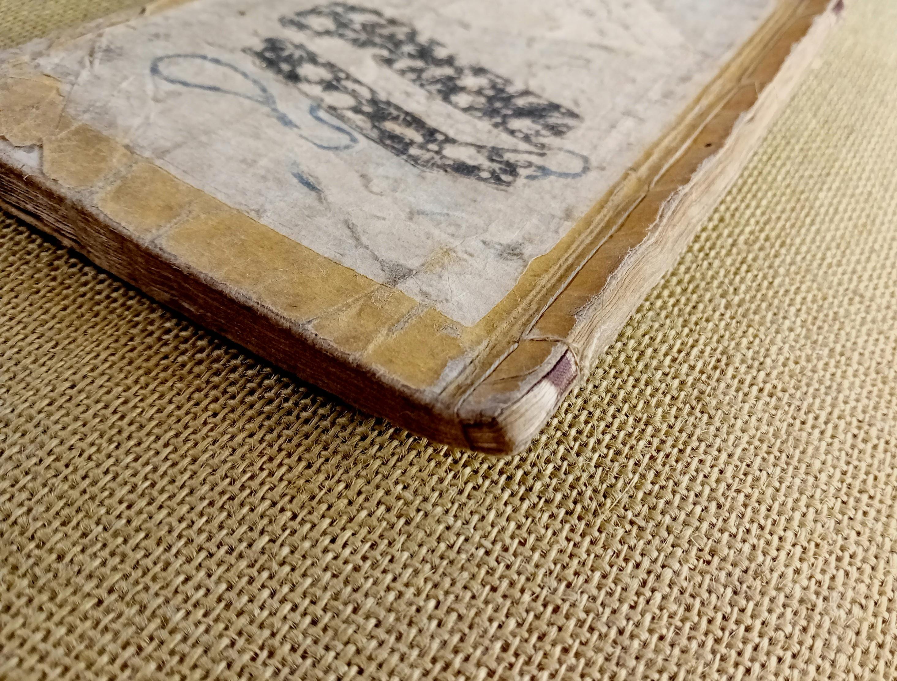 Antique condition. Natural signs of age are present, including paper toning, traces of insect activity, surface wear, and worn covers, consistent with the historical use of an authentic Edo-period woodblock-printed book.