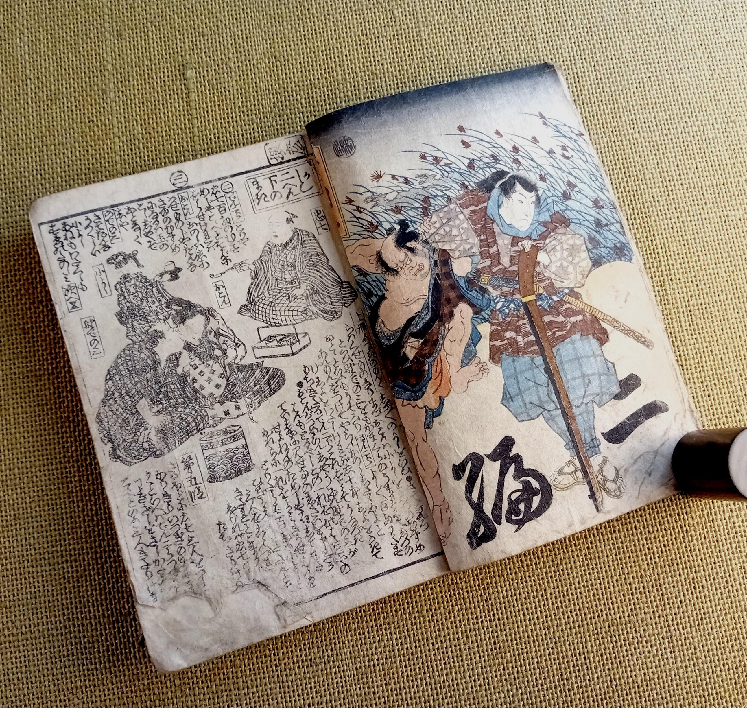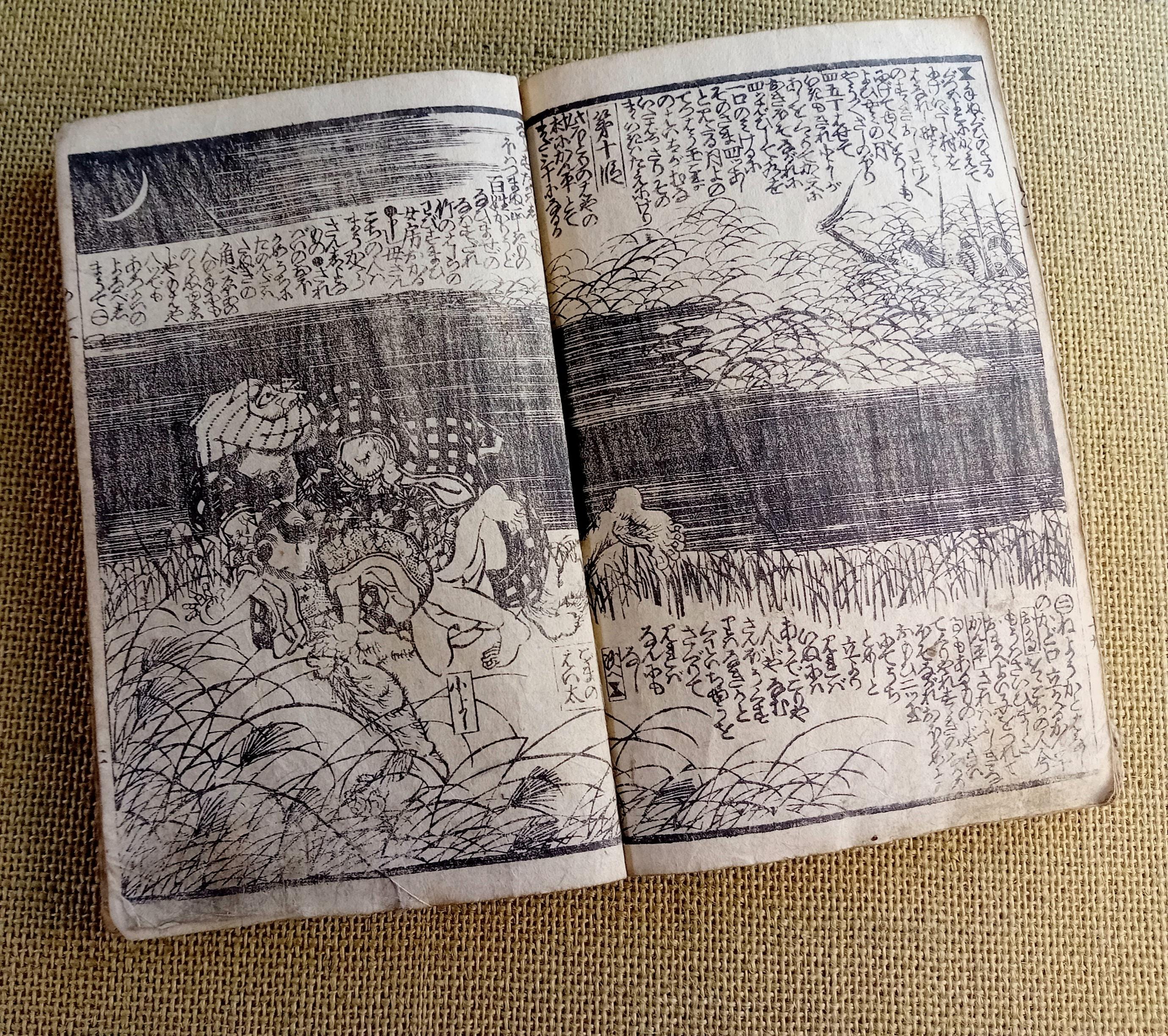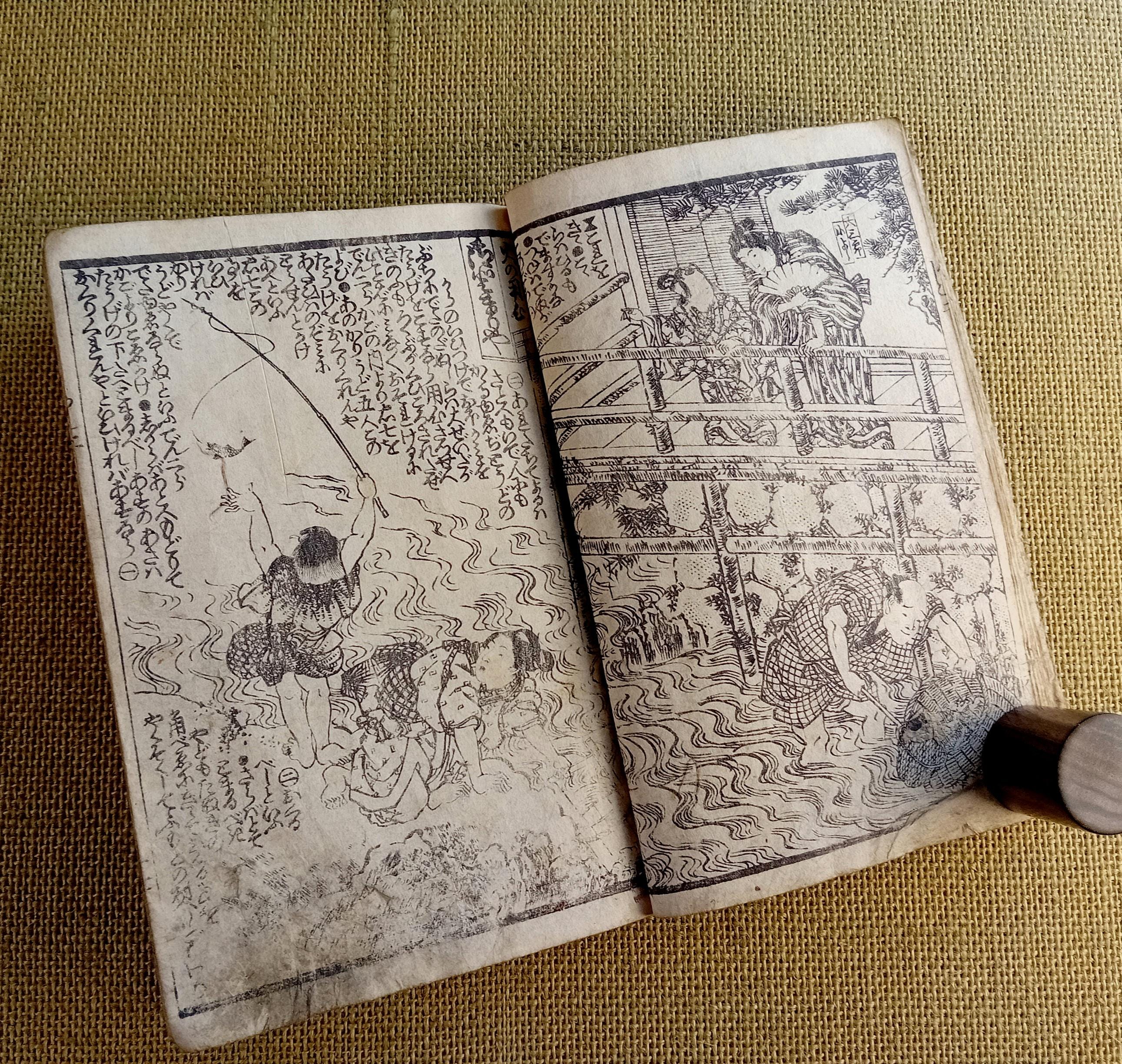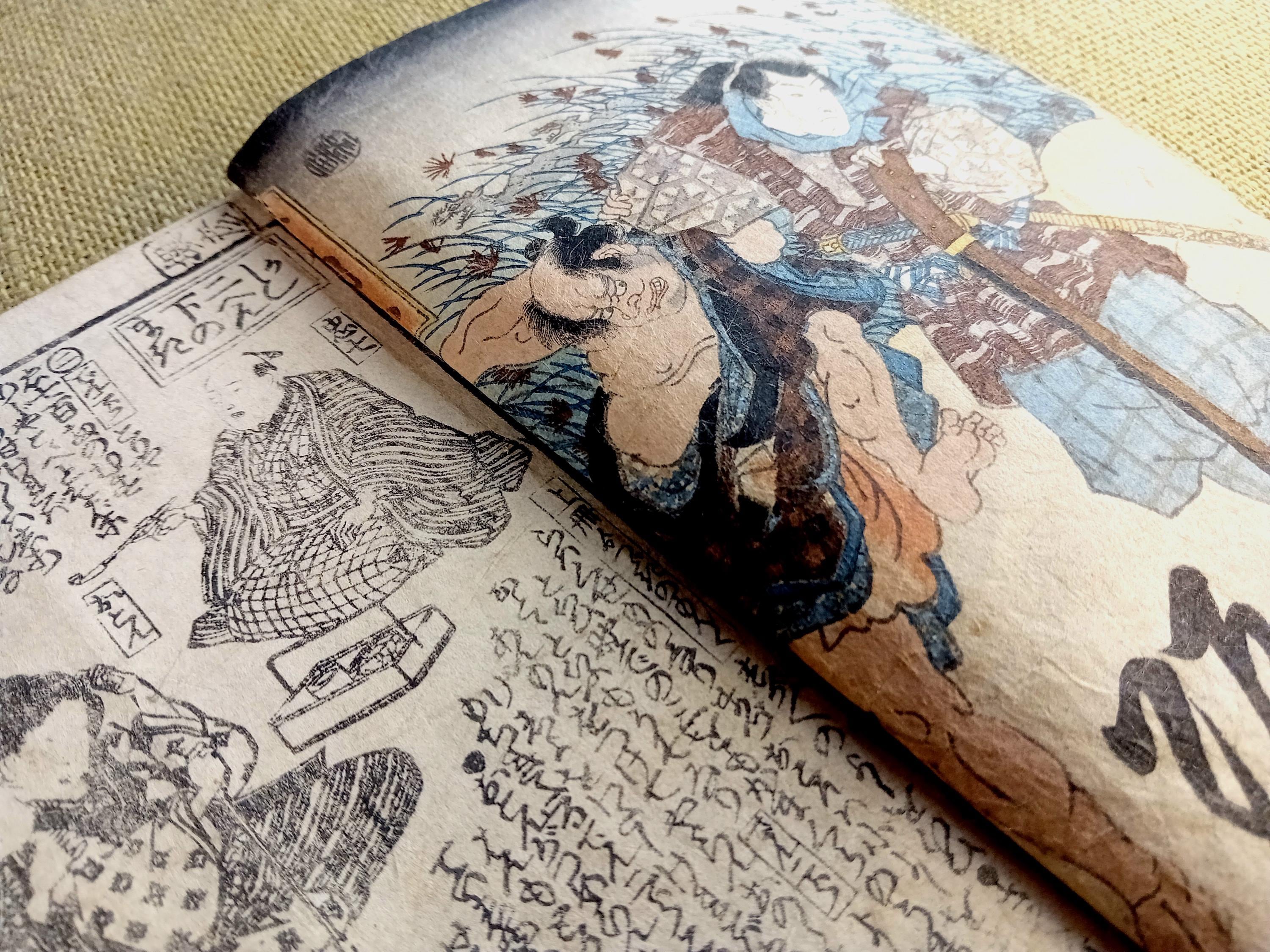 Illustrated Japanese book printed from carved wooden blocks on traditional paper.