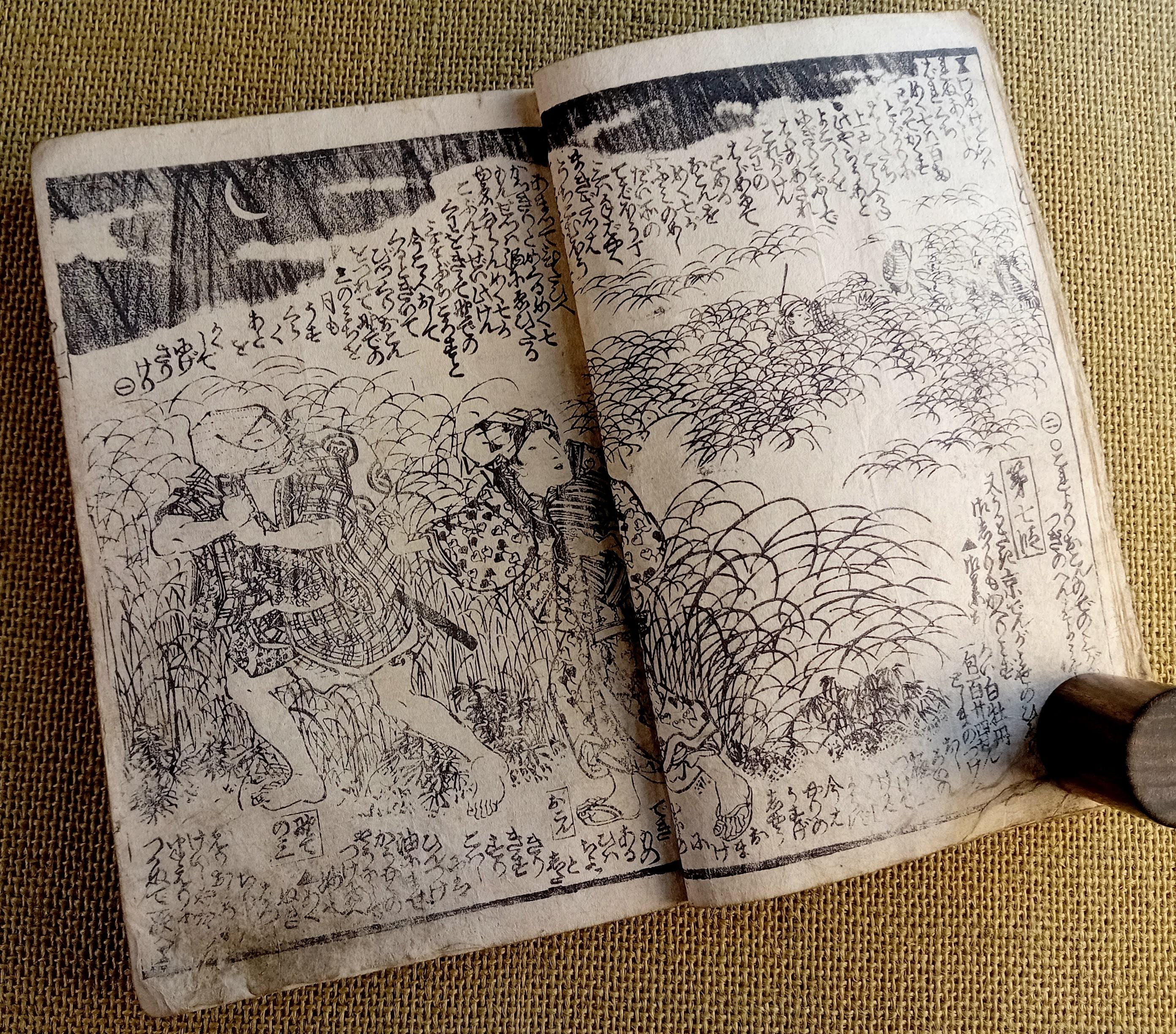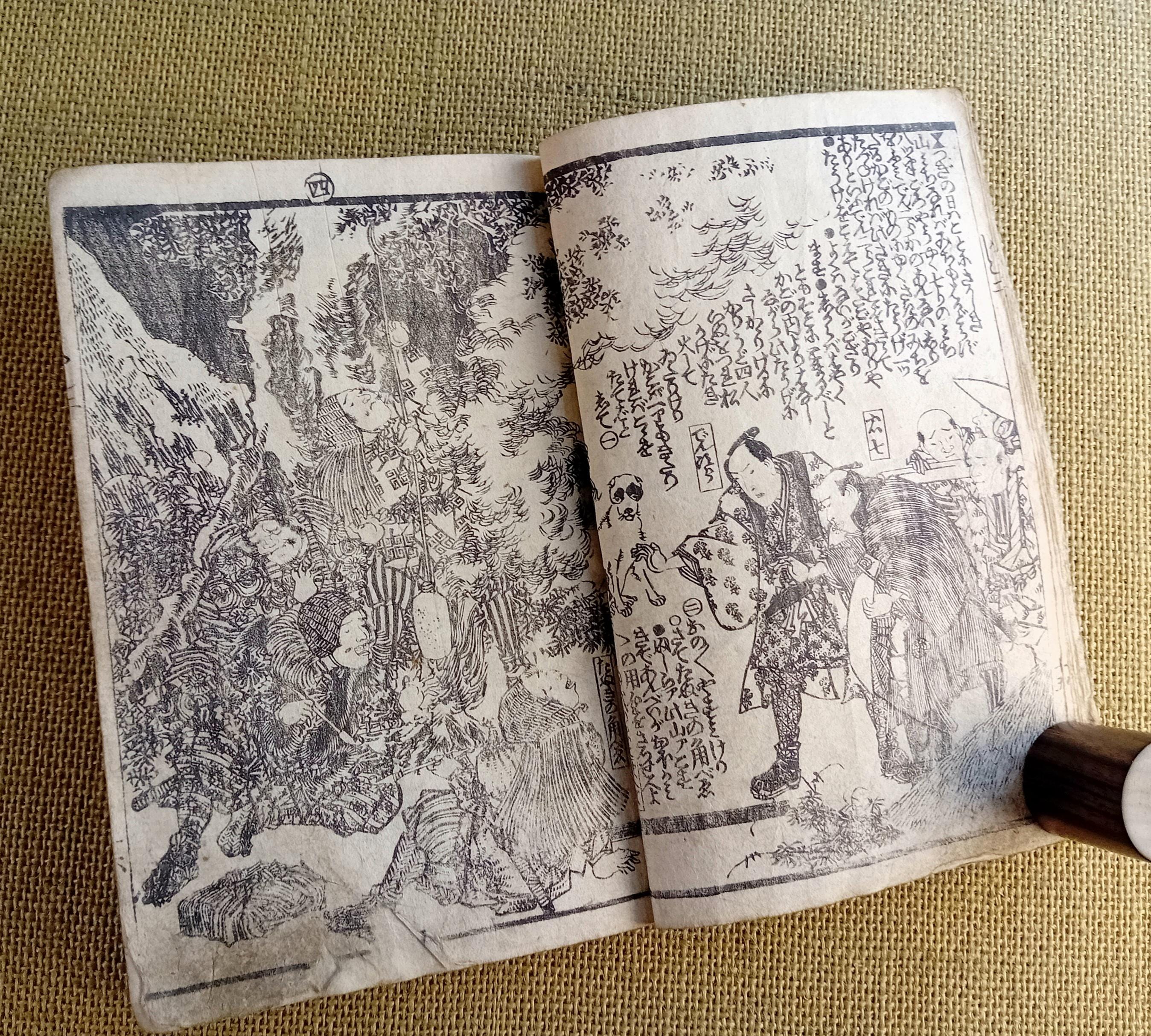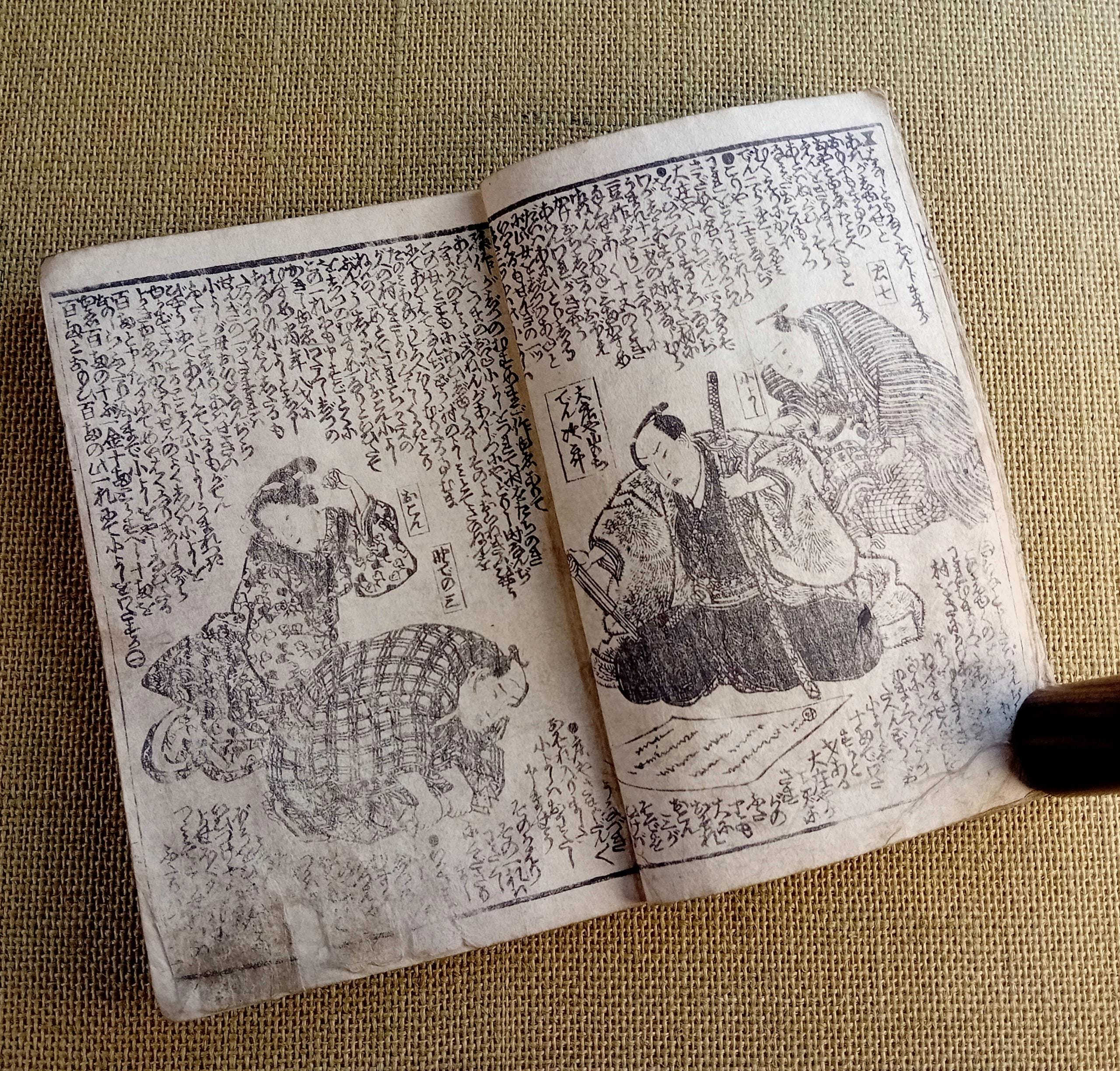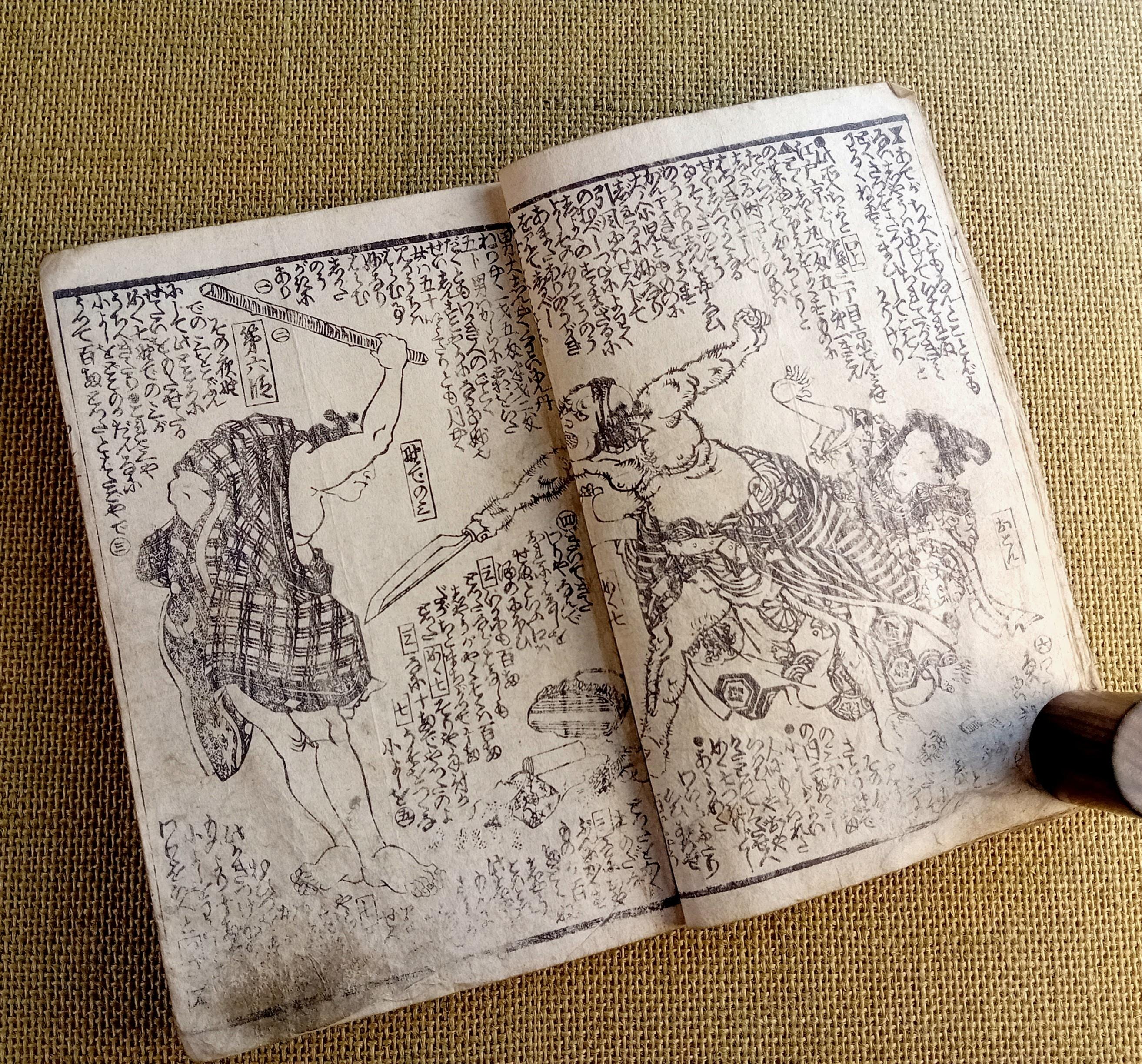 Antique Japanese illustrated book produced using traditional woodblock printing.