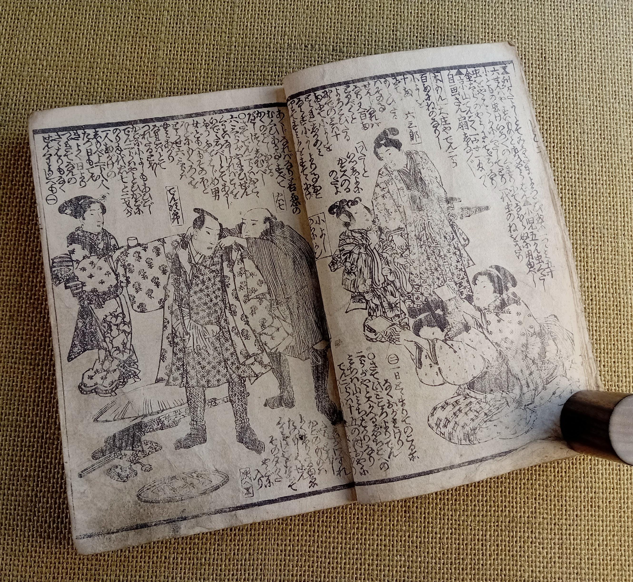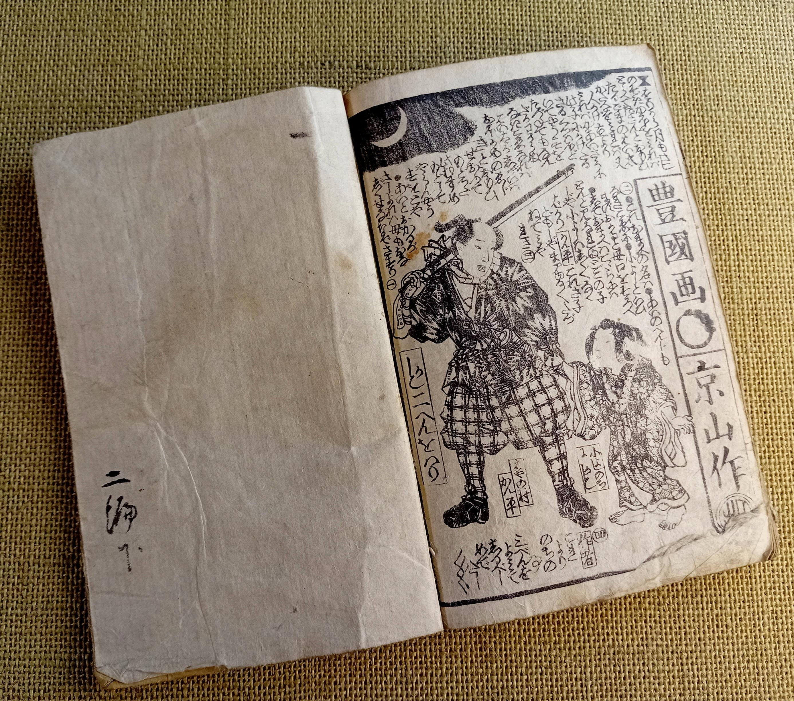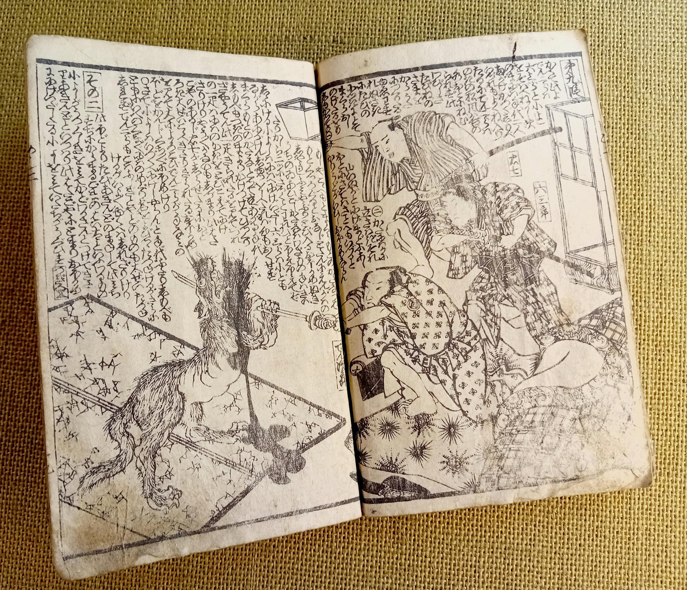 Antique Japanese illustrated book produced using traditional woodblock printing.