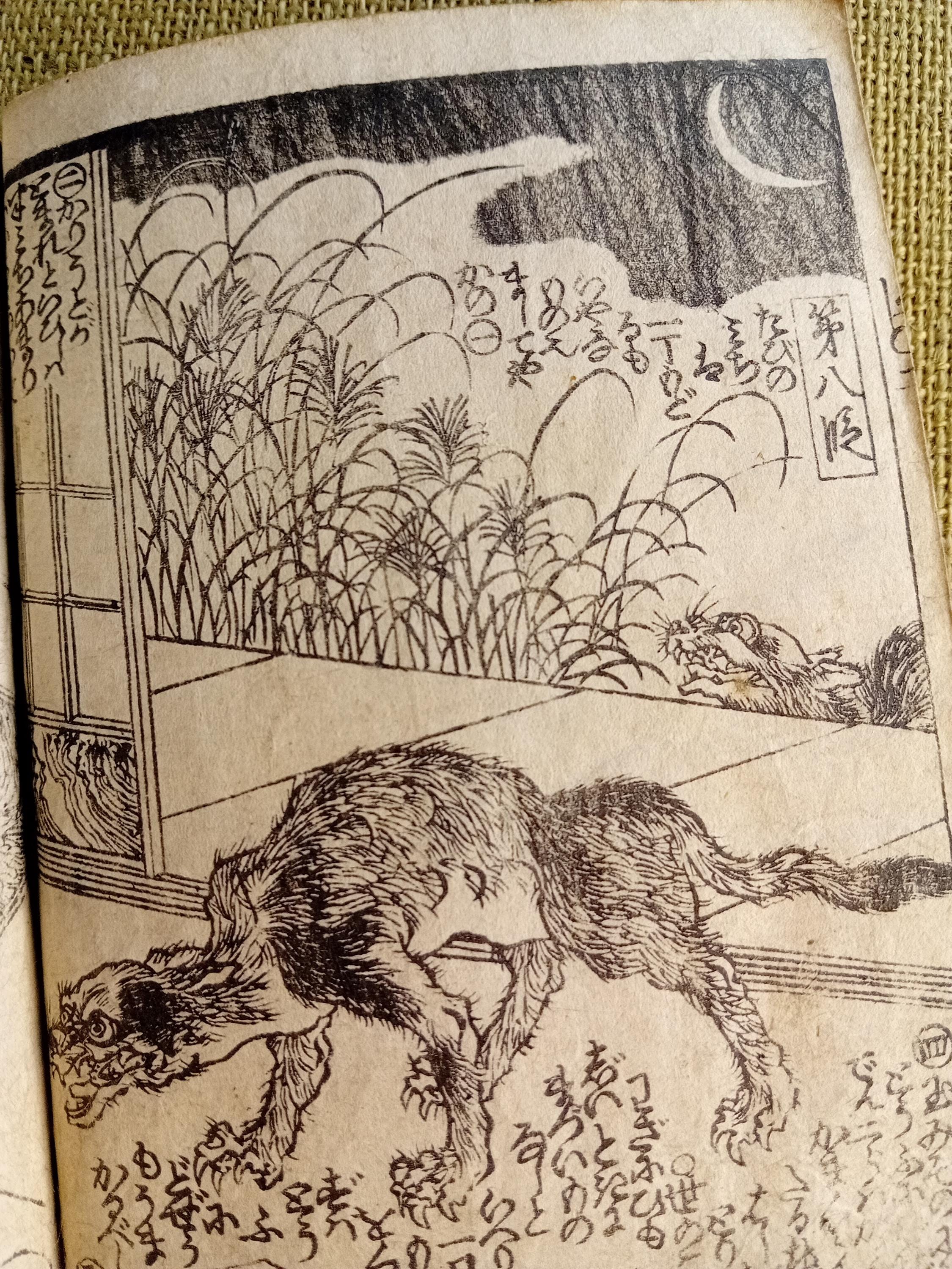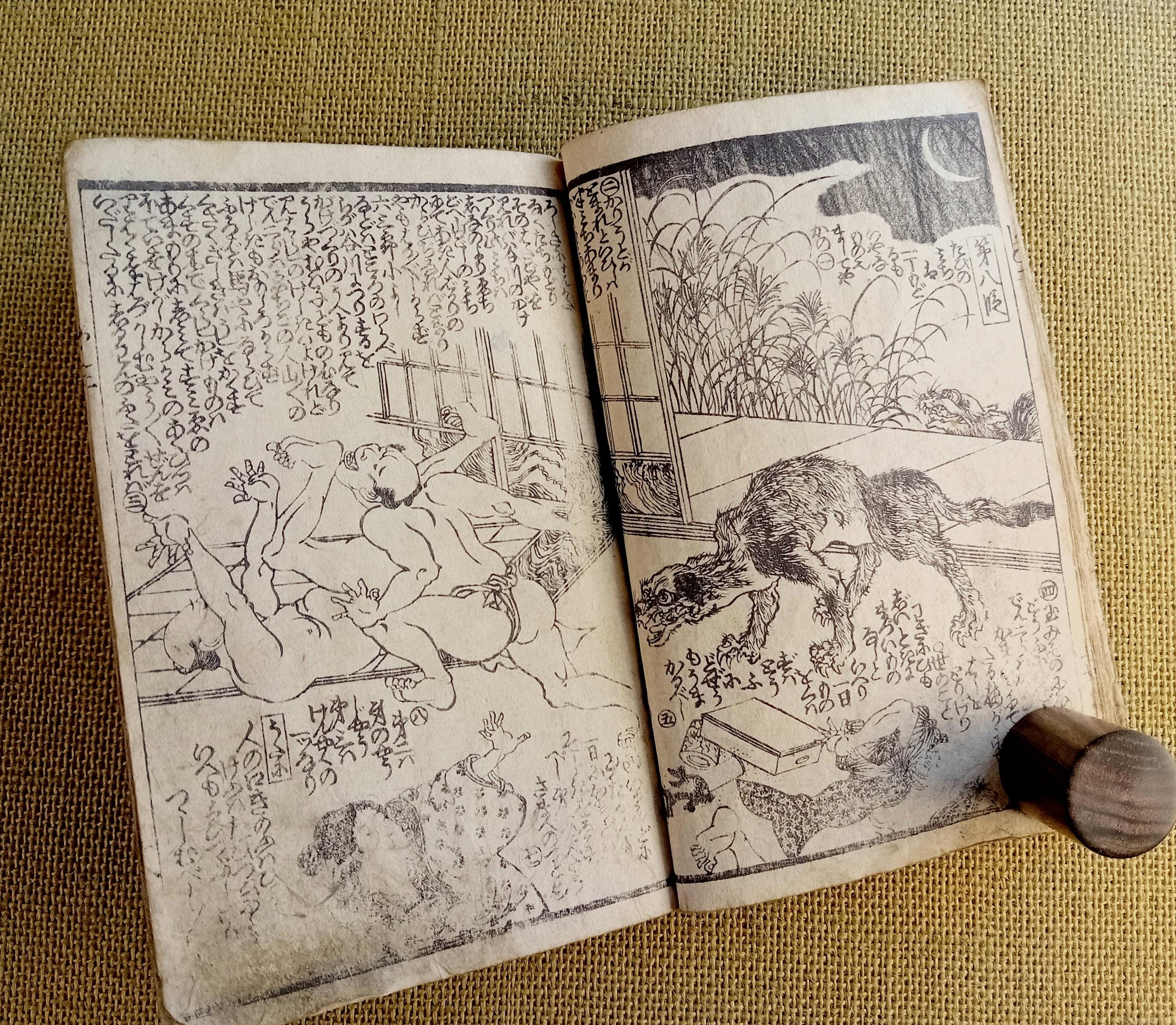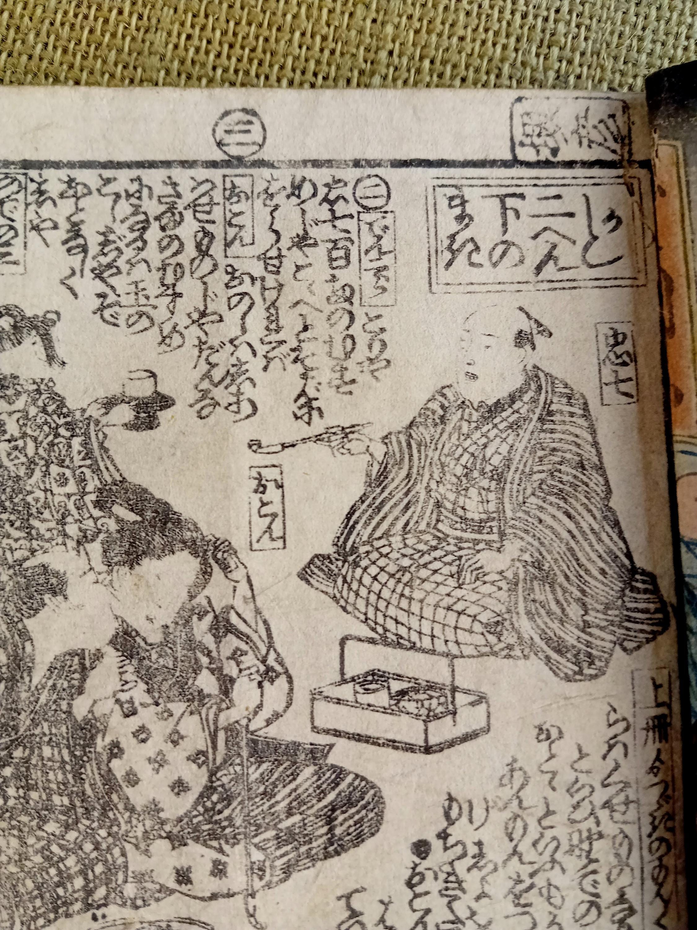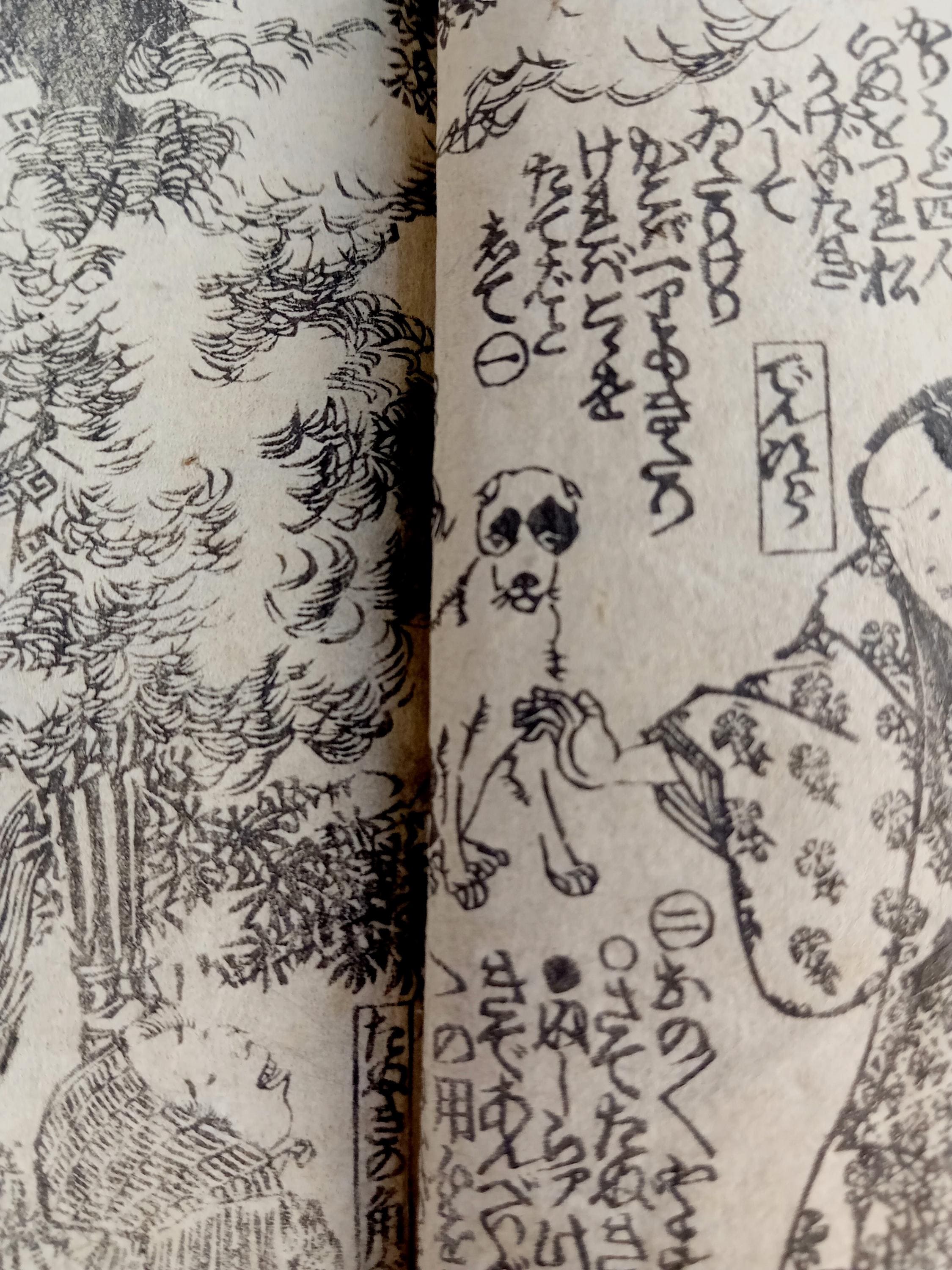 Antique Japanese illustrated book produced using traditional woodblock printing.
