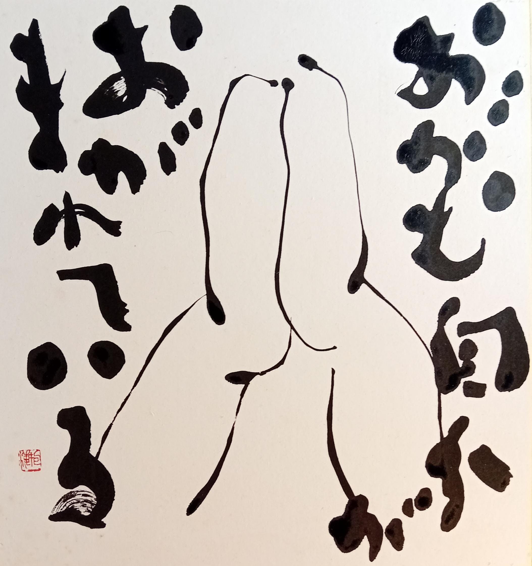 The composition belongs to the shoga tradition, combining calligraphy and painting within a single work.
