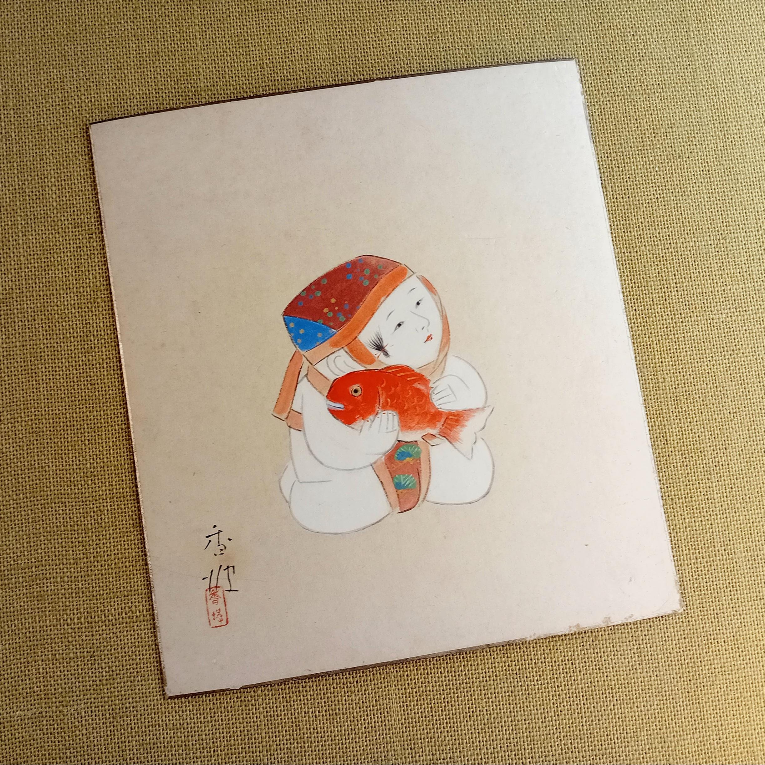 Original Japanese painting on shikishi board. The work follows the decorative tradition of Japanese painting from the early–mid Shōwa period.
