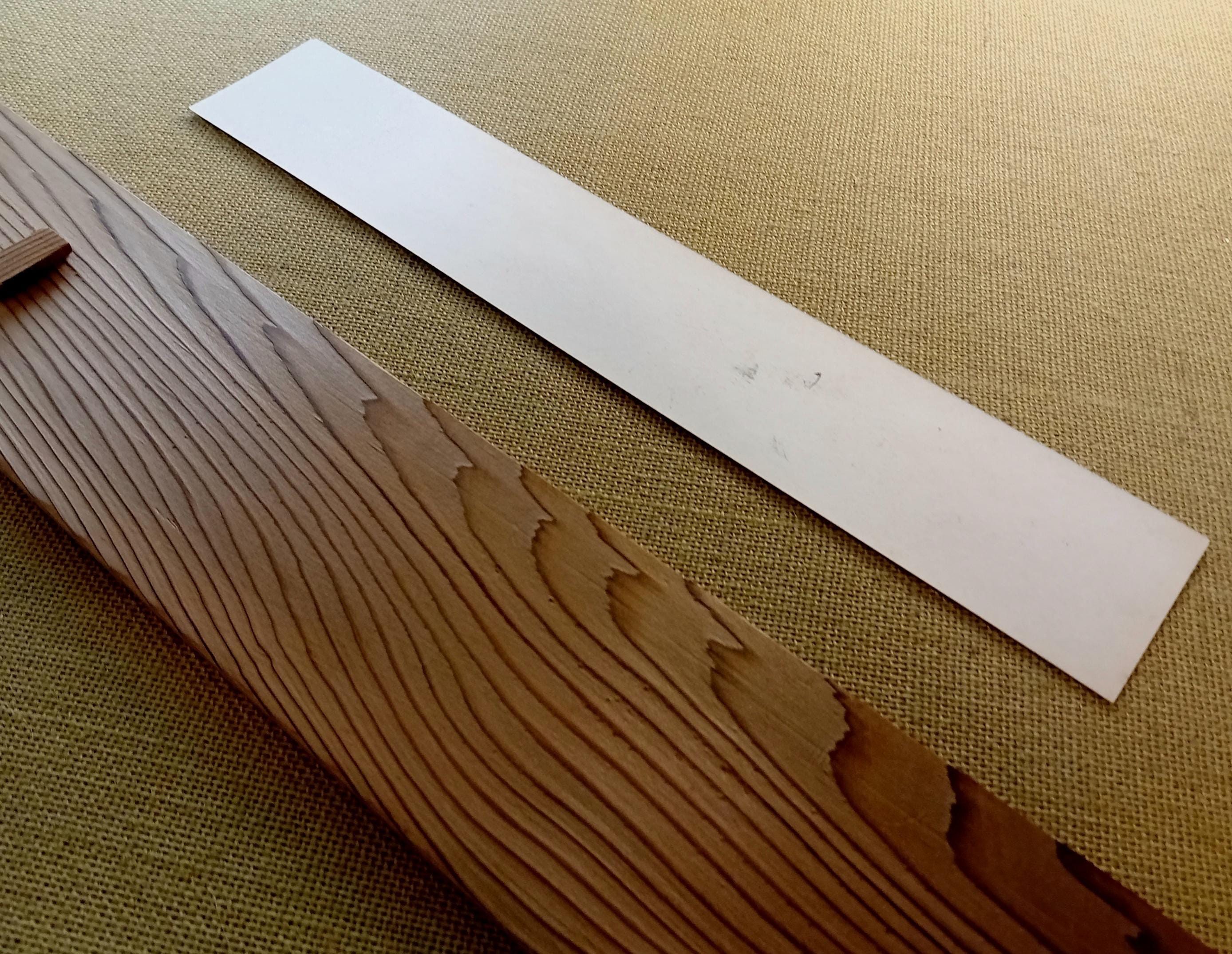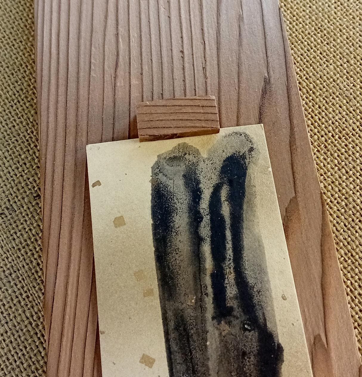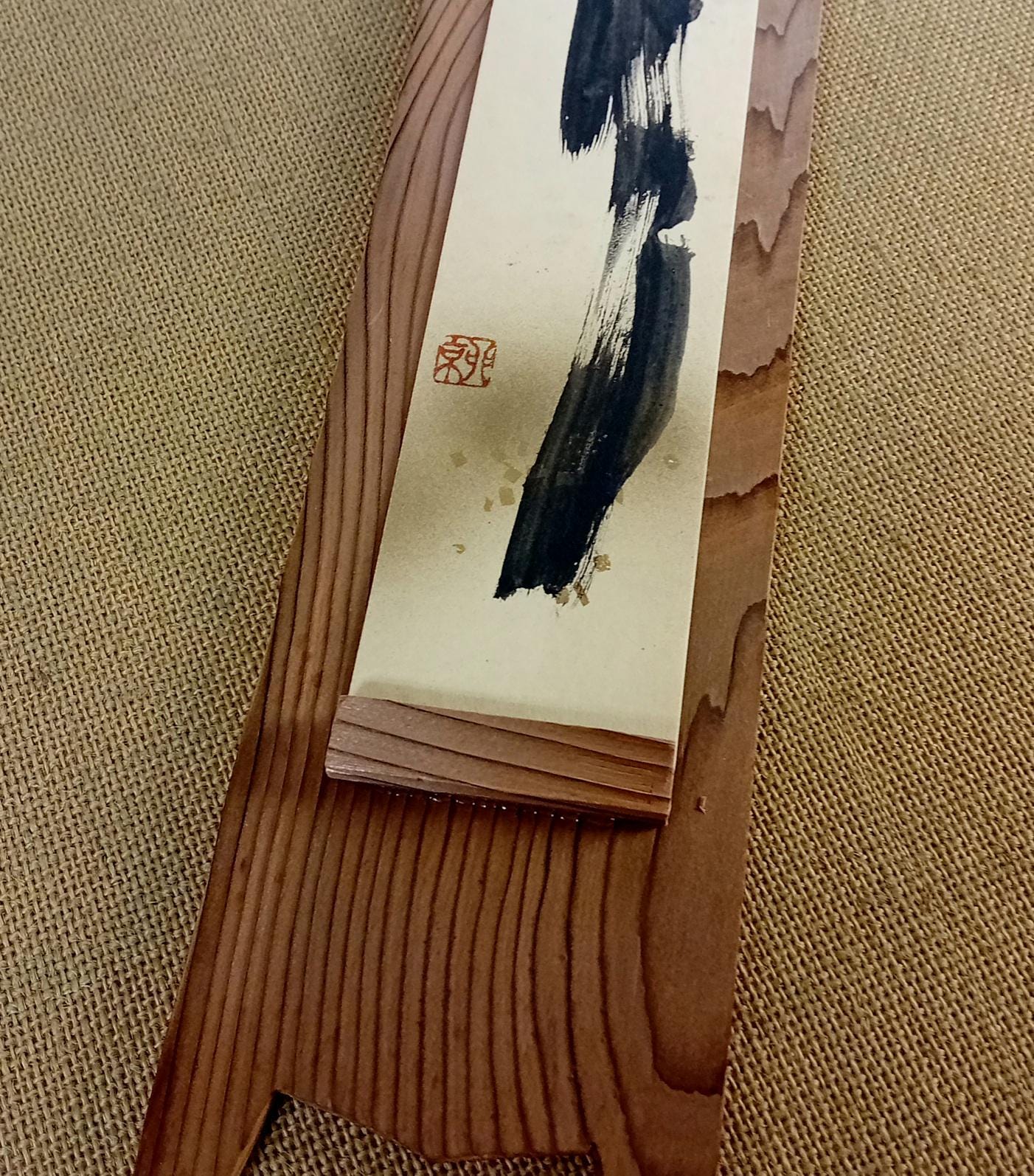 Included with the piece is a vintage Shōwa wooden display shelf suitable for vertical presentation.