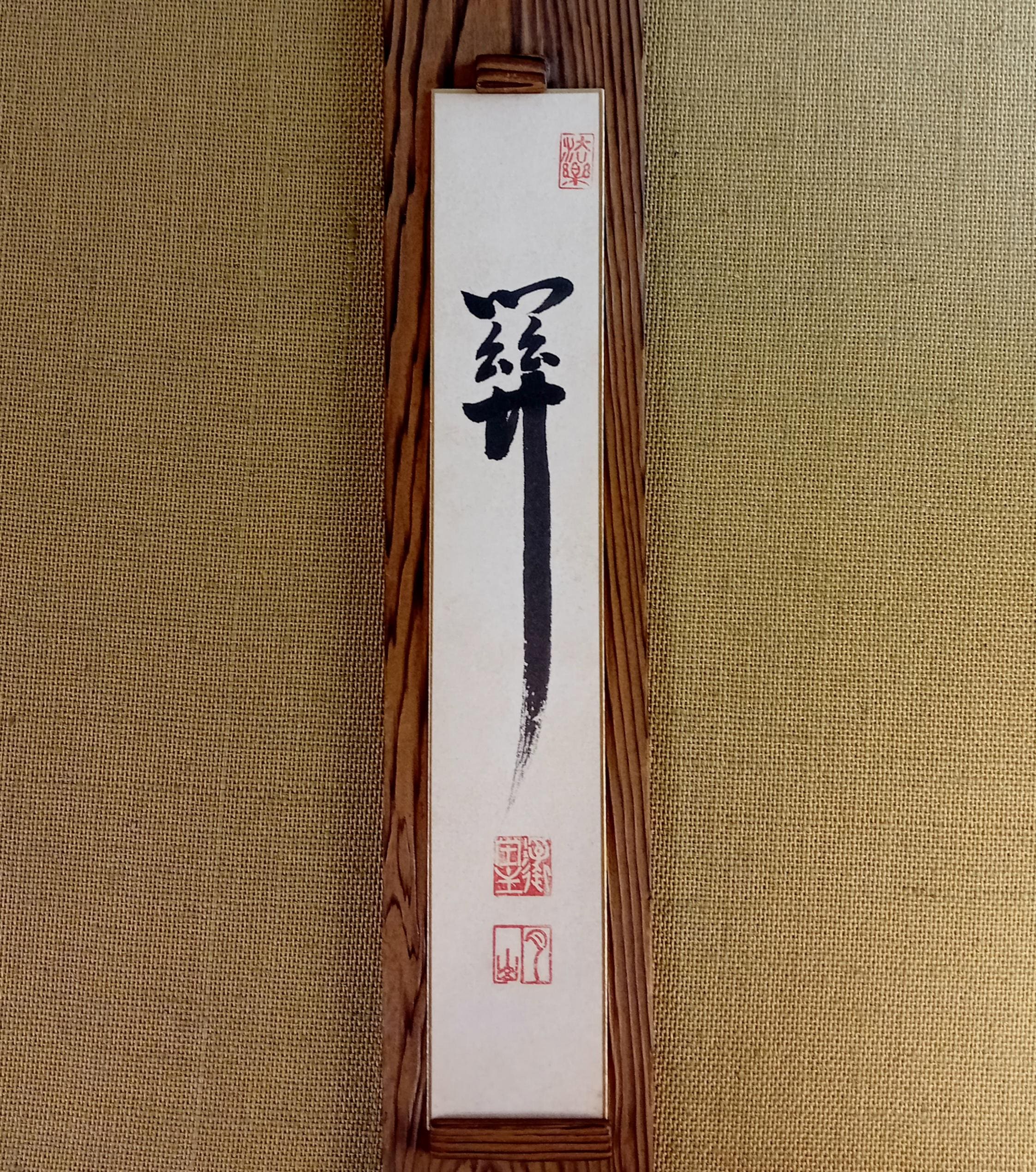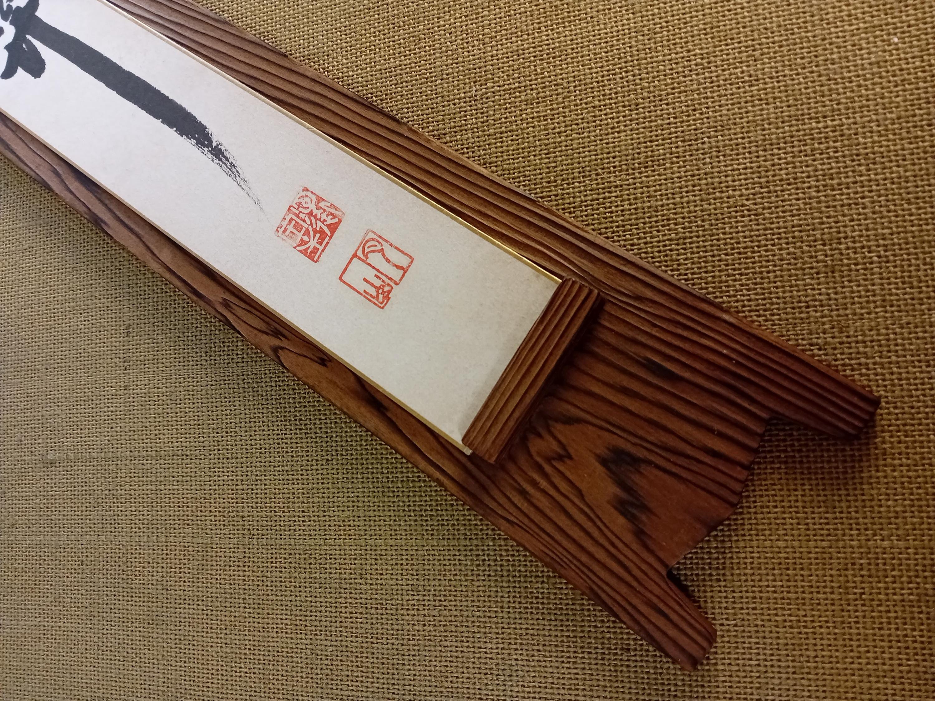 Included with the piece is a vintage Shōwa wooden display shelf suitable for vertical presentation.