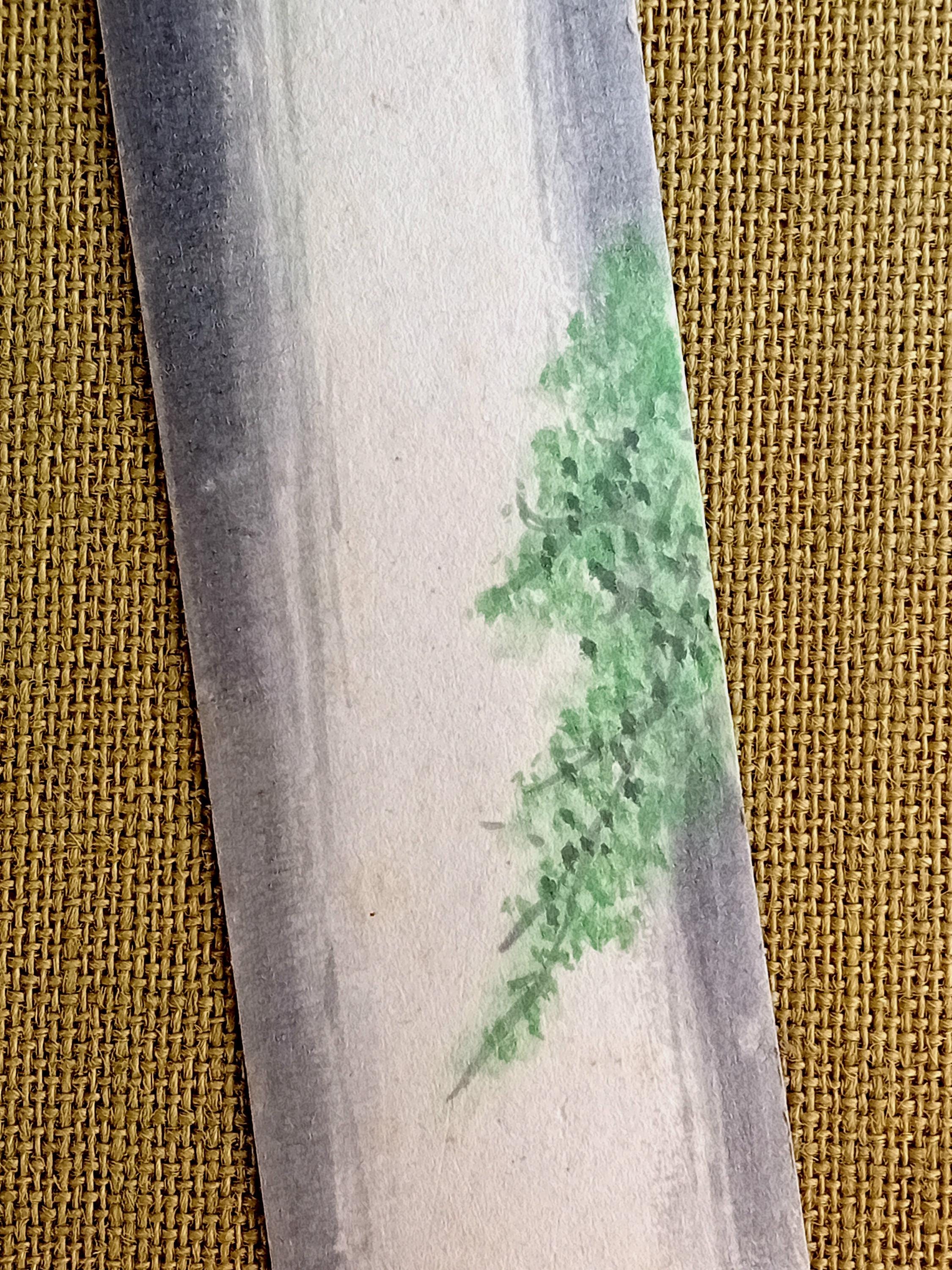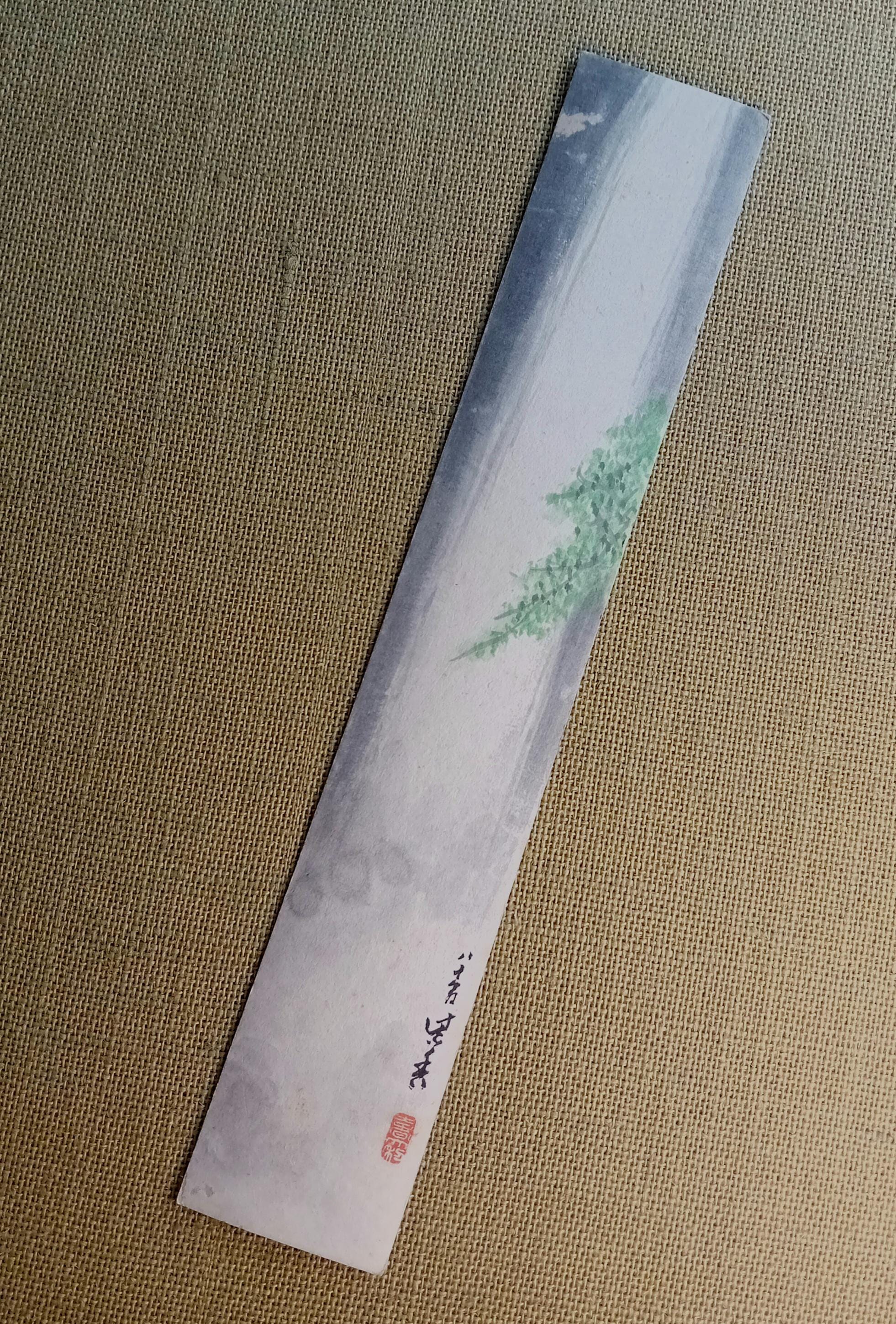 Minimal Japanese landscape composition in vertical tanzaku format.