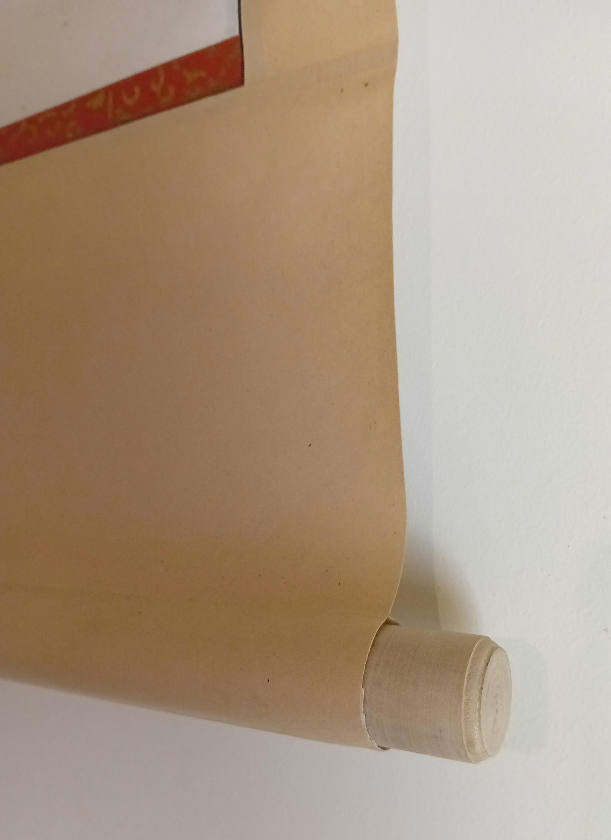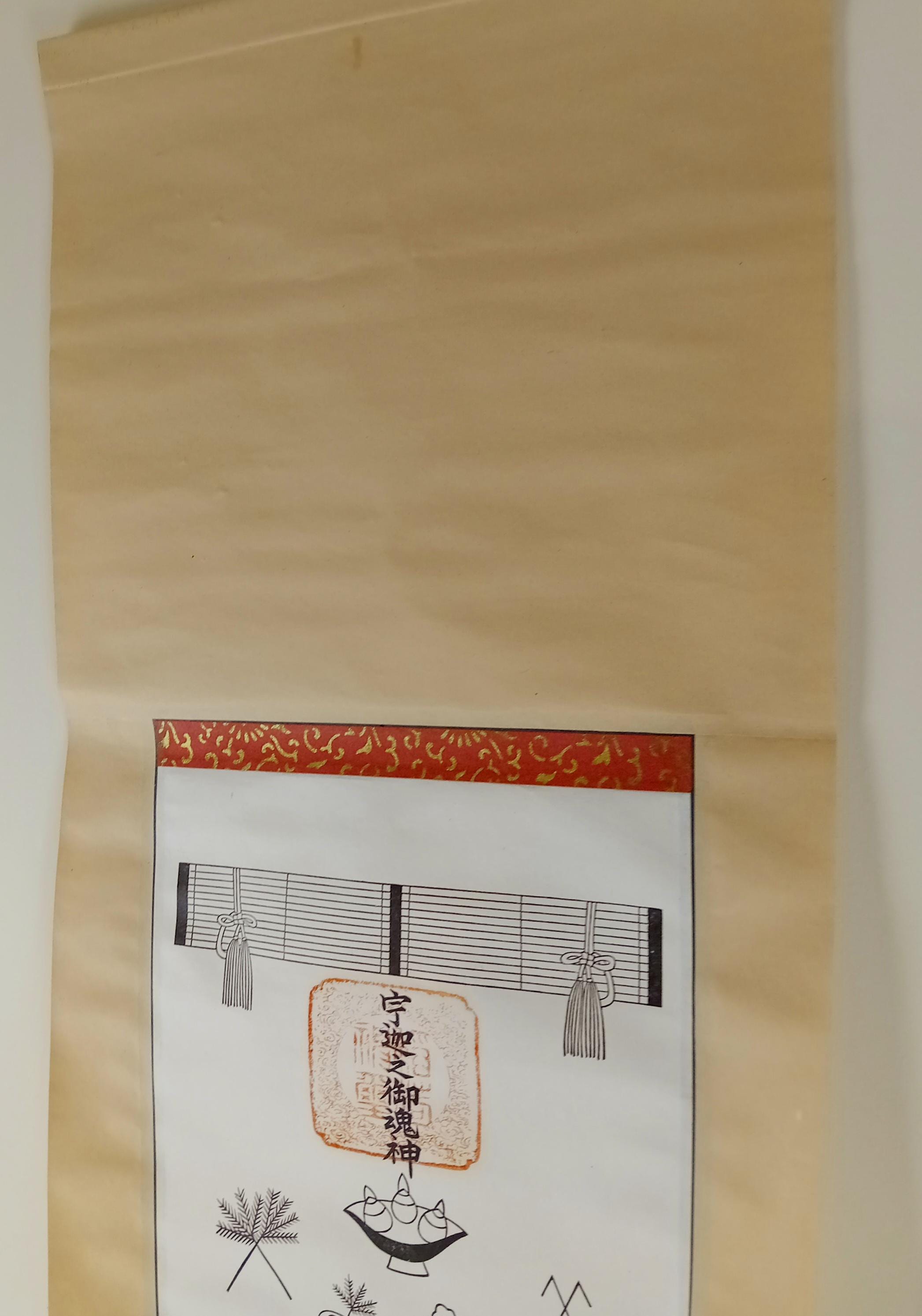 Original Japanese Shinto kakejiku with a printed religious composition.