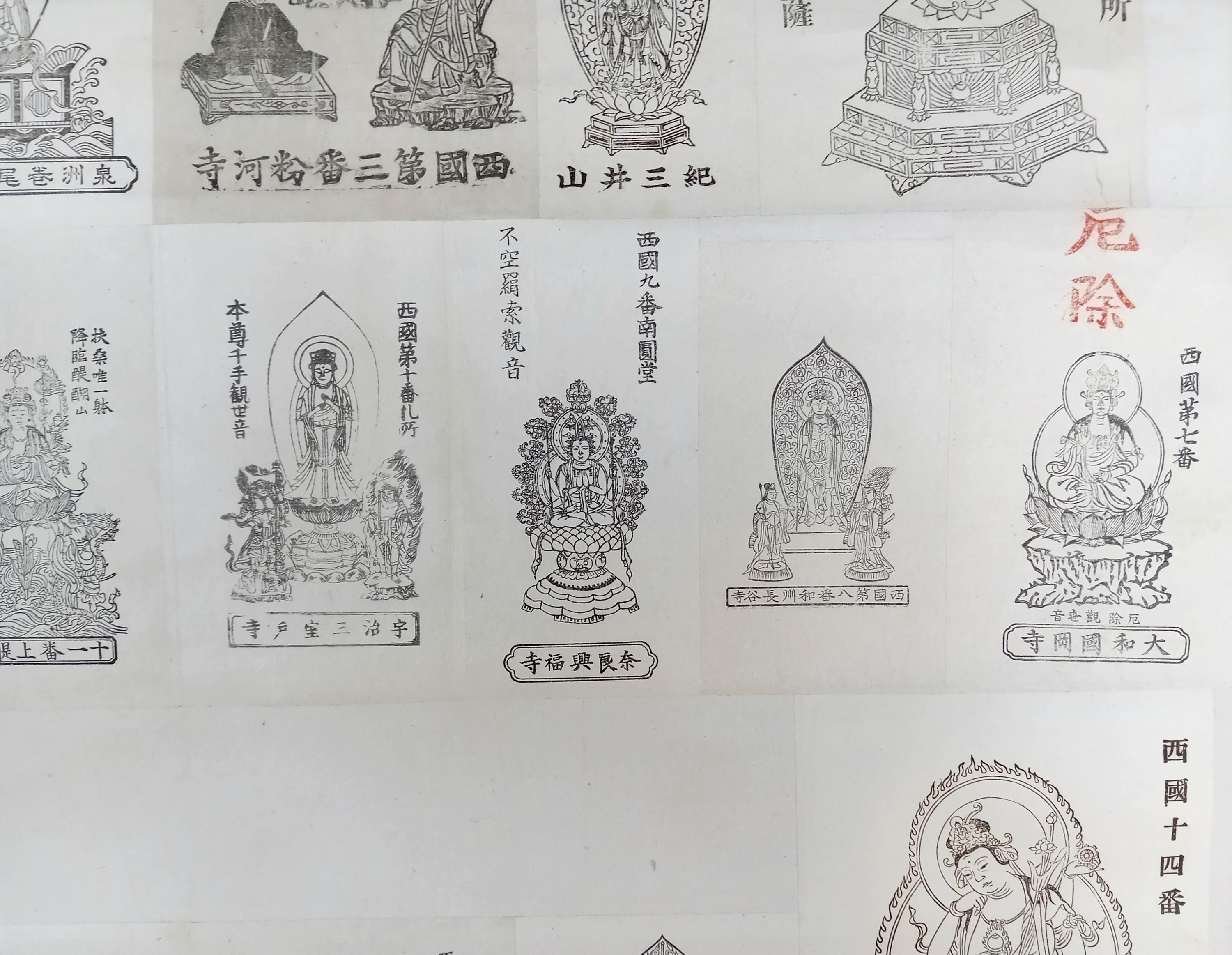 This work belongs to the Japanese temple tradition of Buddhist pilgrimage imagery. It combines devotional function with a structured visual overview of the Saigoku Kannon circuit and would have served as a religious display connected with prayer, protection, and pilgrimage memory.