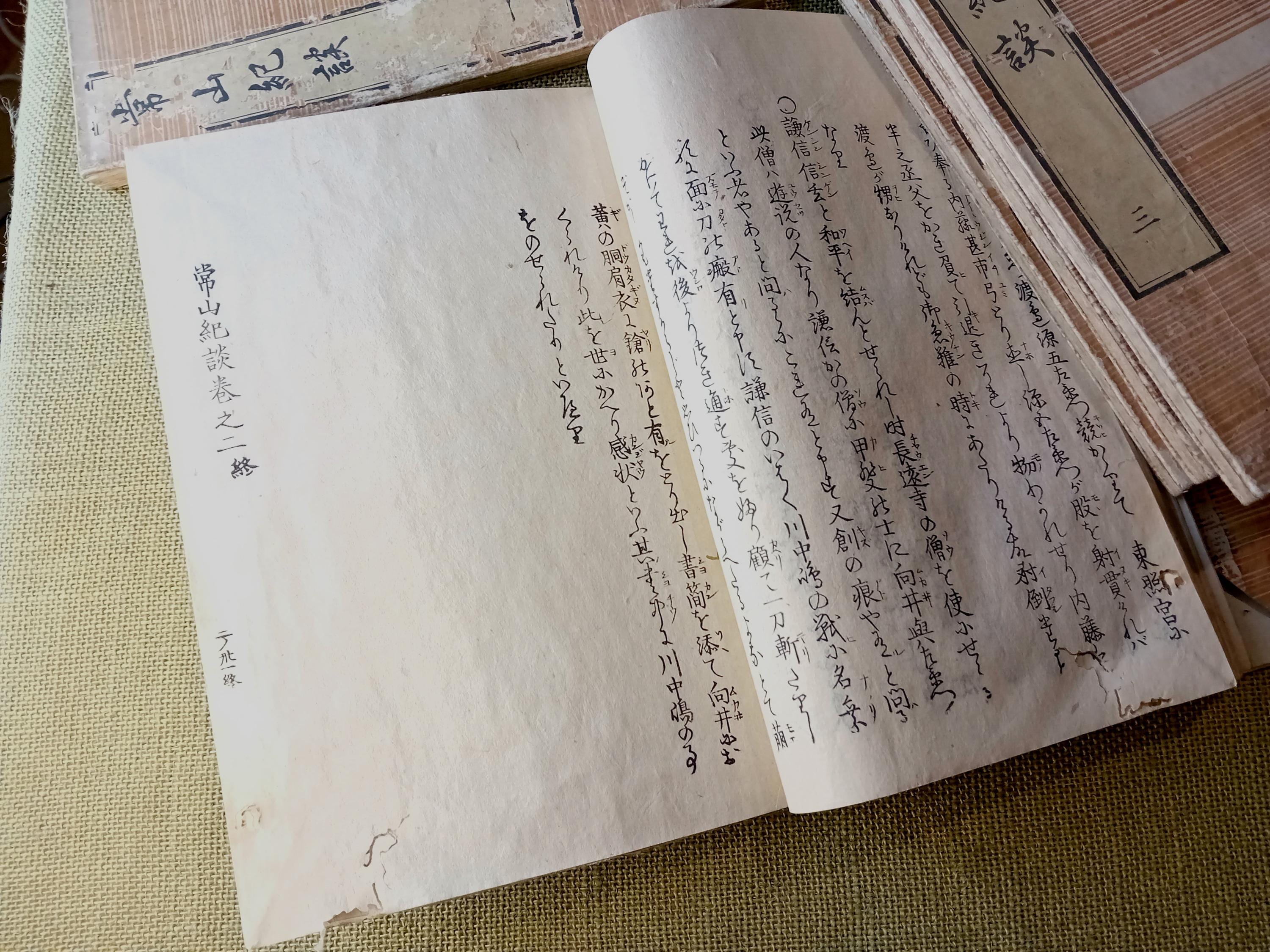This set belongs to Jozan Kidan, a well-known Japanese historical anecdotal work centered on warriors, retainers, strategy, conduct, and memorable episodes from the military culture of earlier Japan. Rather than functioning as a continuous novel, it gathers short and medium-length accounts that move between martial history, character portrait, practical wisdom, exemplary behavior, and striking episodes preserved in warrior tradition.