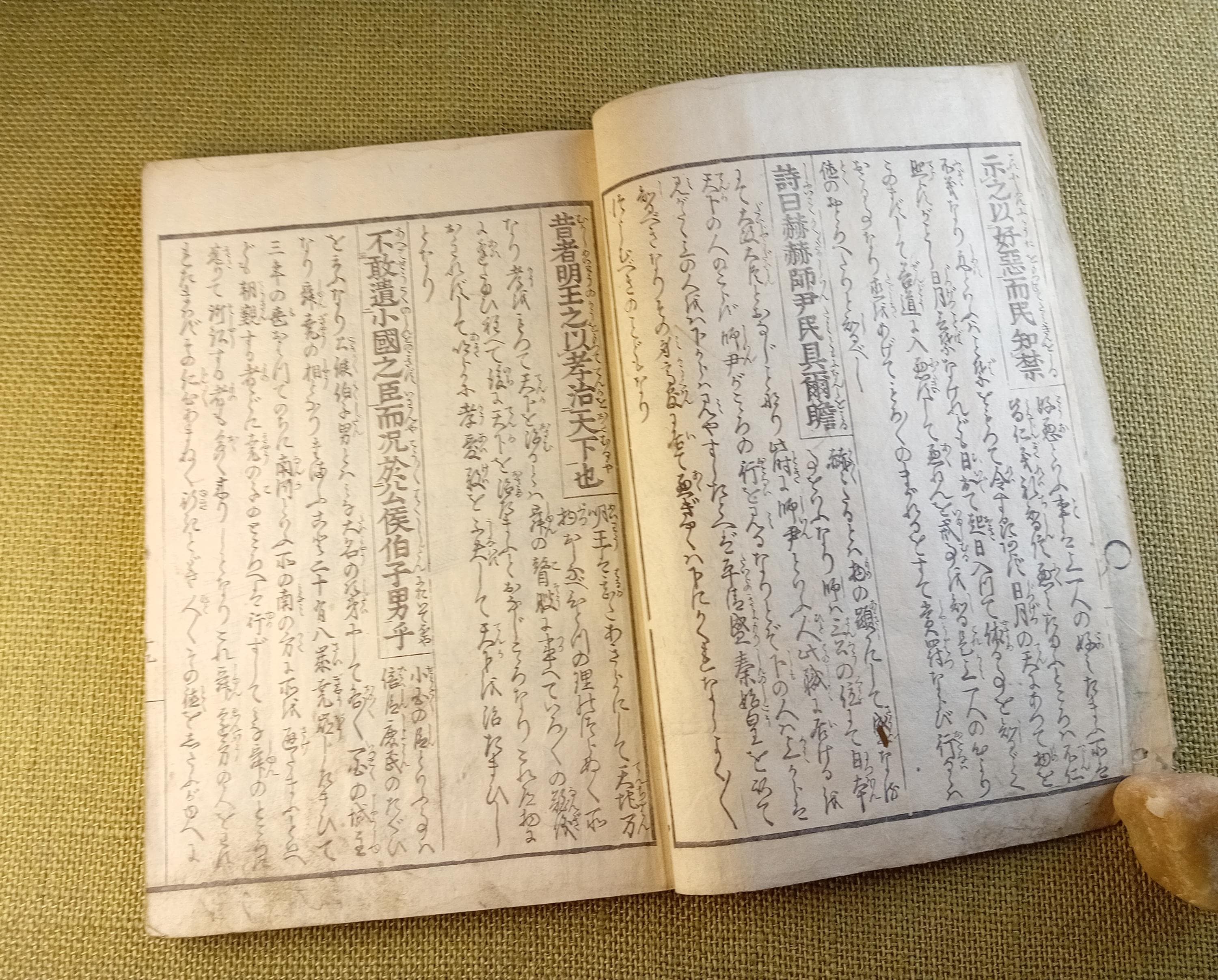 Antique condition. Natural age-related wear is present, including paper toning, signs of time to the cover and edges, and general handling wear consistent with an authentic old Japanese book. Please review the photos carefully.