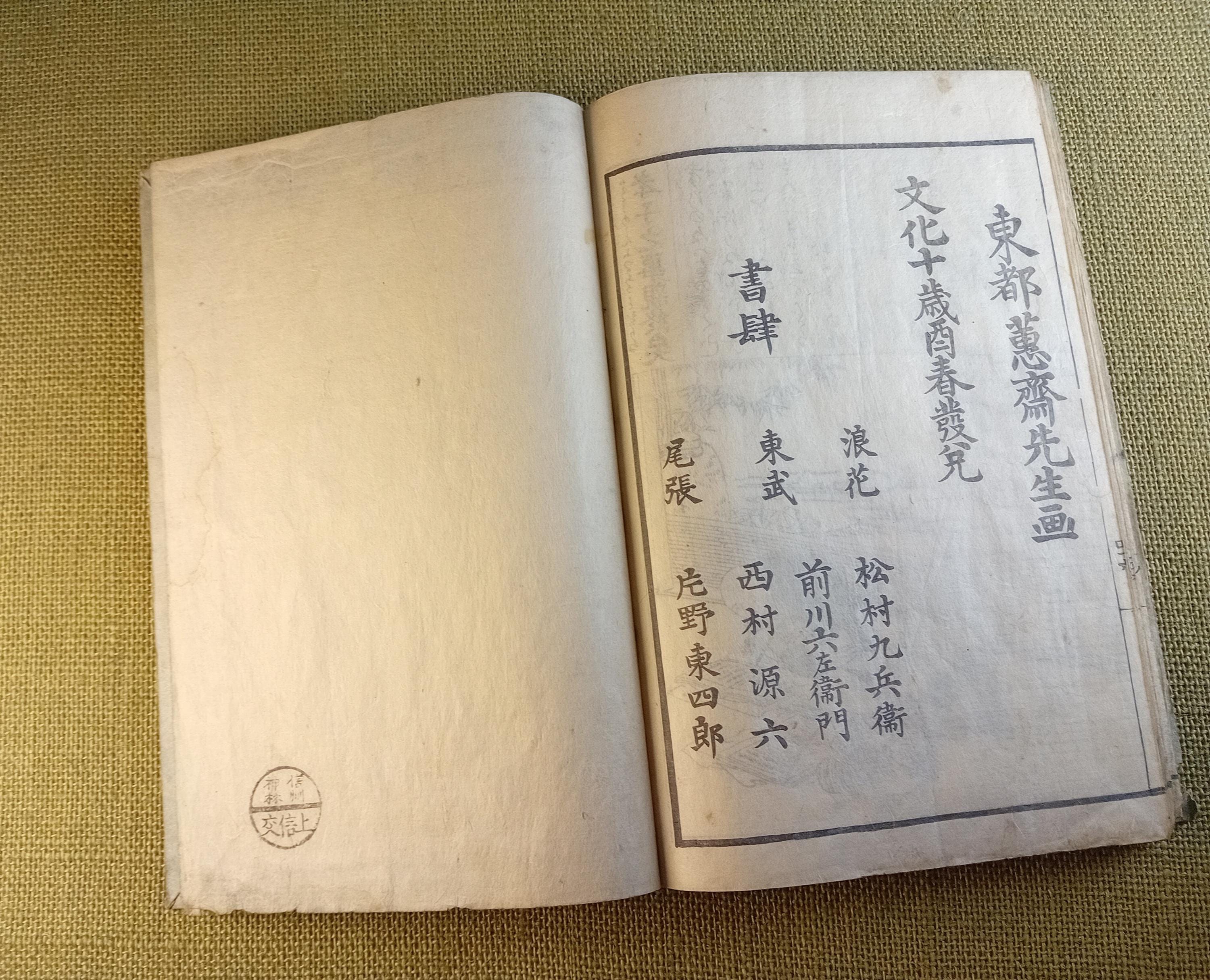 This is the early 1813 bibliographic line, distinct from the later edition associated with Takai Ranzan and Hokusai. Waseda and related catalog records list these as separate entries. For the 1813 edition, the text author is not securely established in the university description.