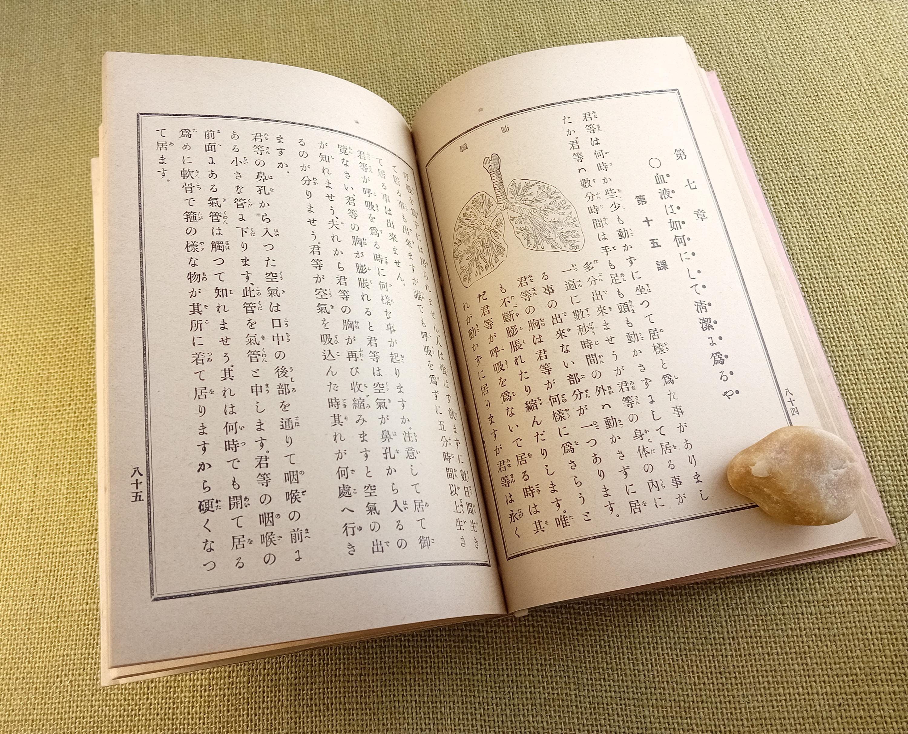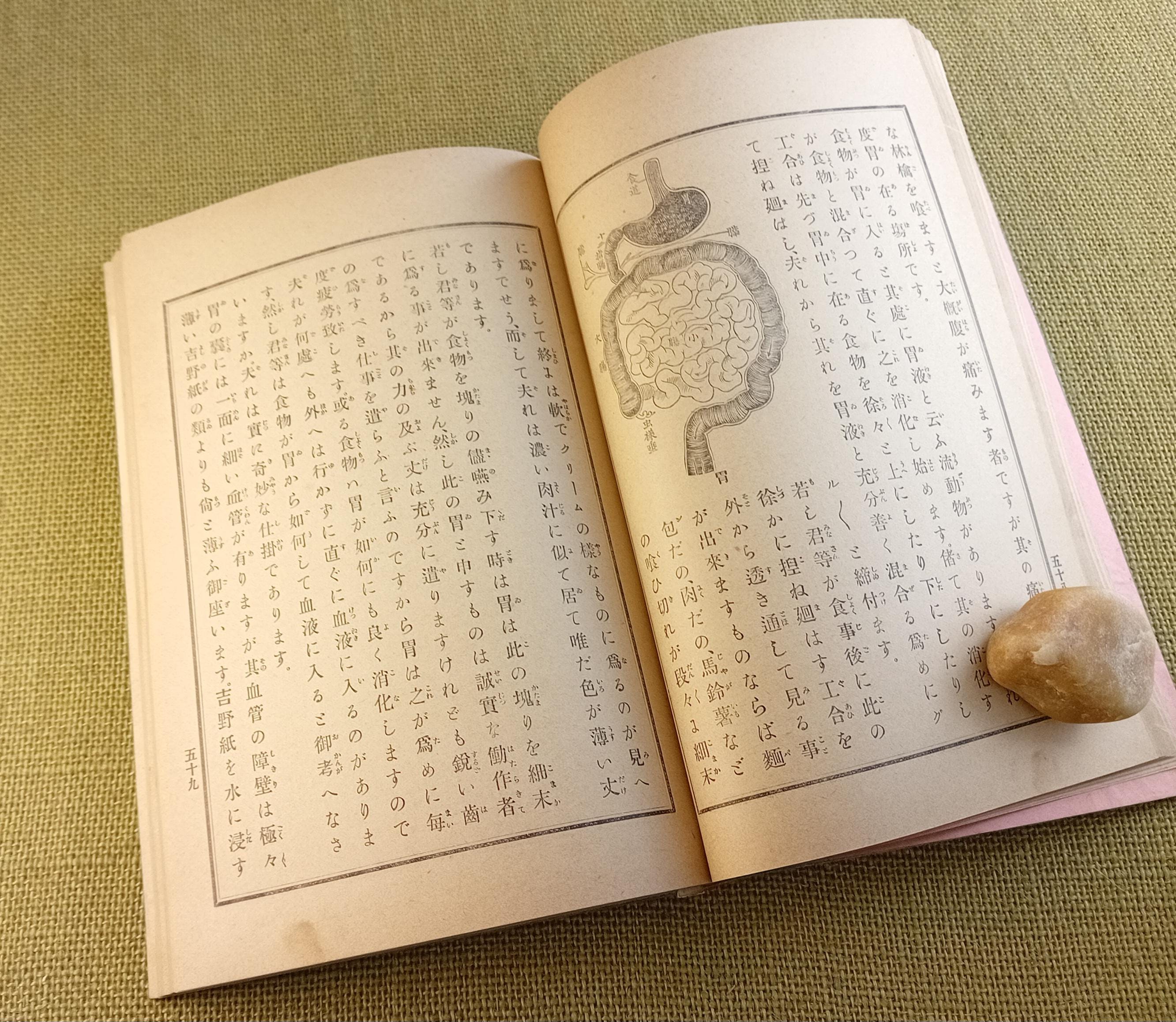 “An introductory physiology reader for young readers.” Antique Japanese book from the Meiji period. March 1903. Complete volume. Traditional Japanese binding.