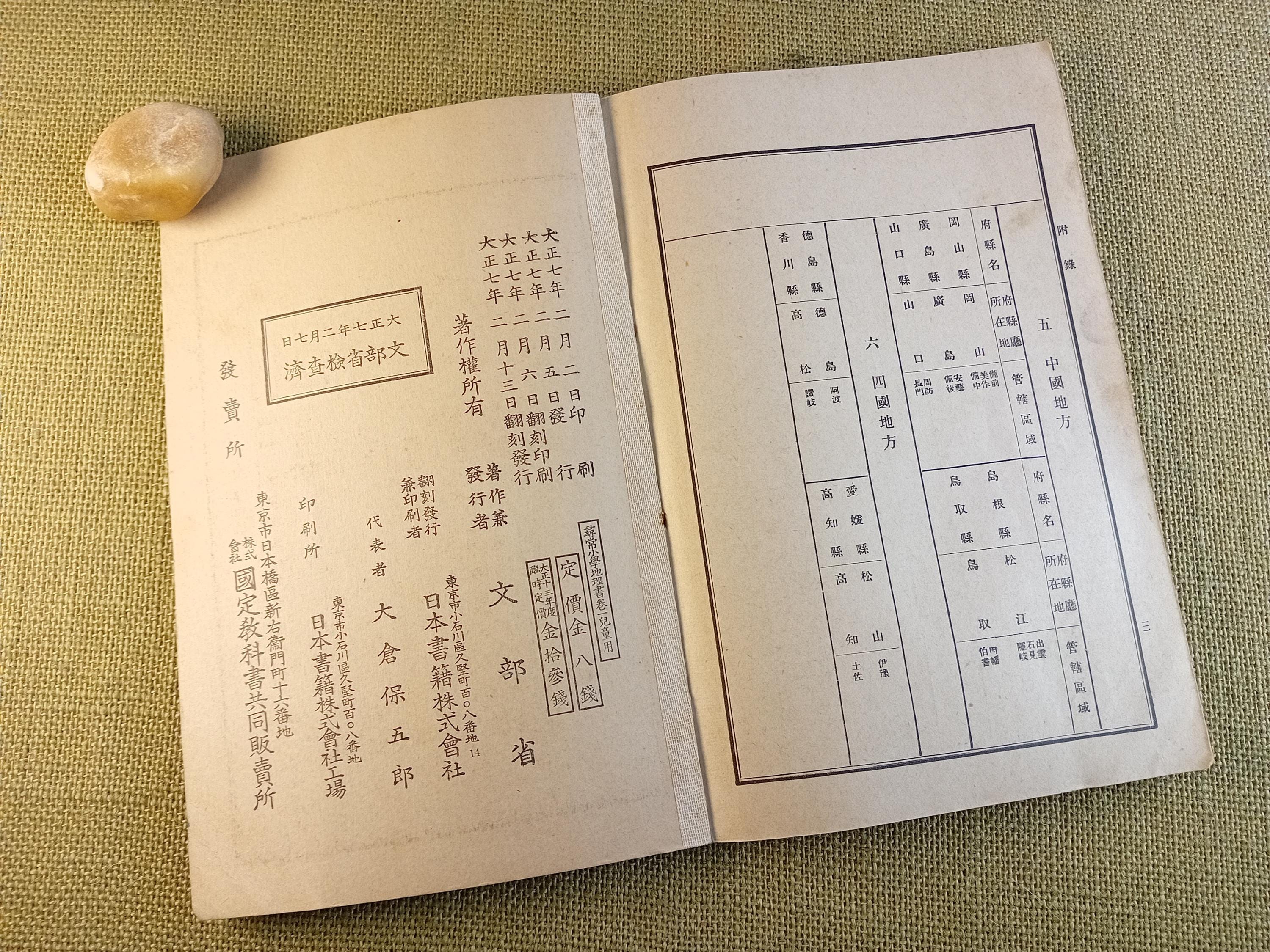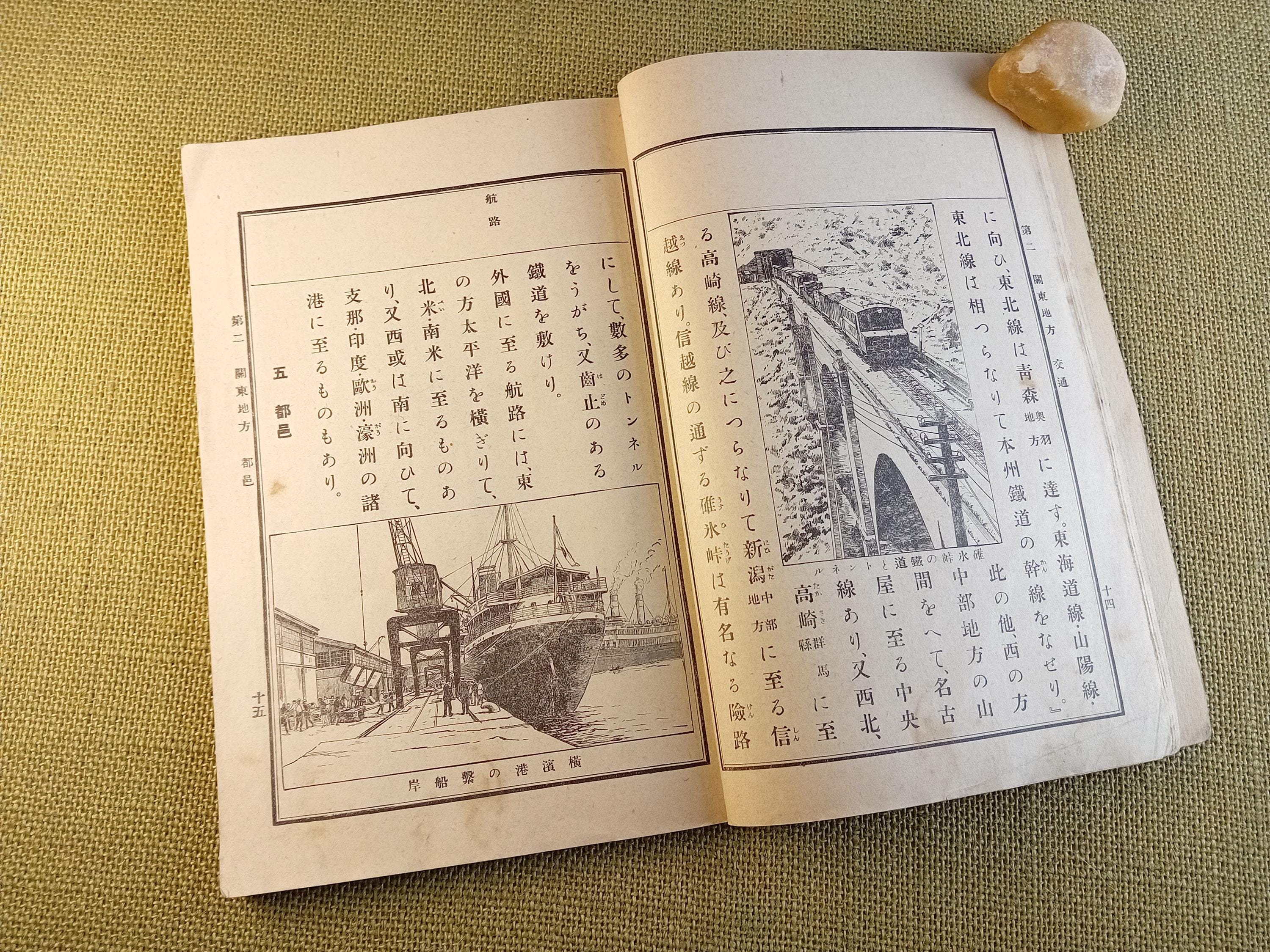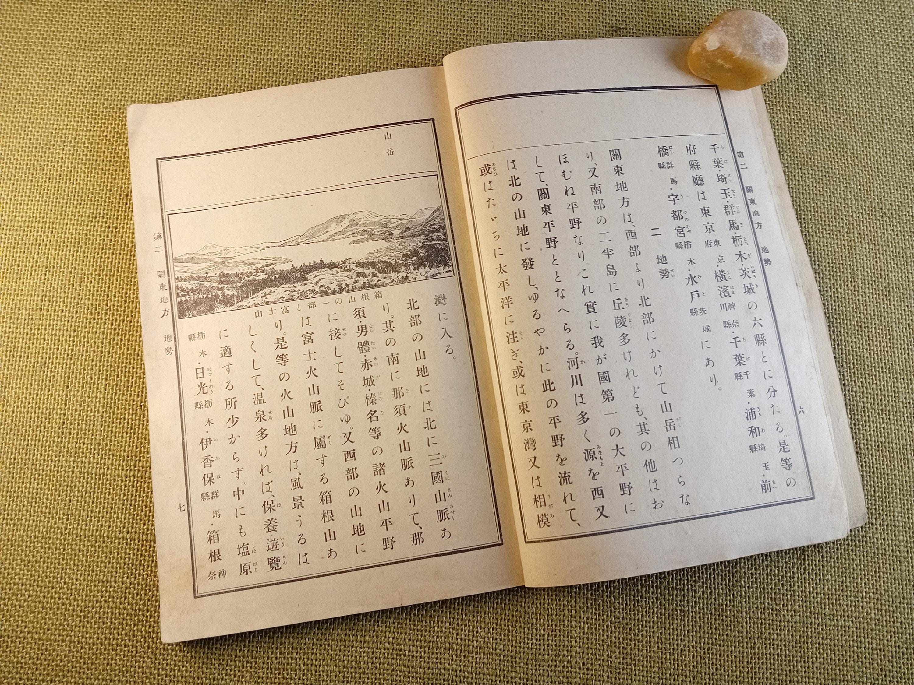This Japanese school geography book for children belongs to the world of early modern education in Japan, where geography was part of a child’s first structured understanding of country, region, and the wider world. It is a real schoolbook of the Taisho period, made for elementary learning and everyday classroom use.