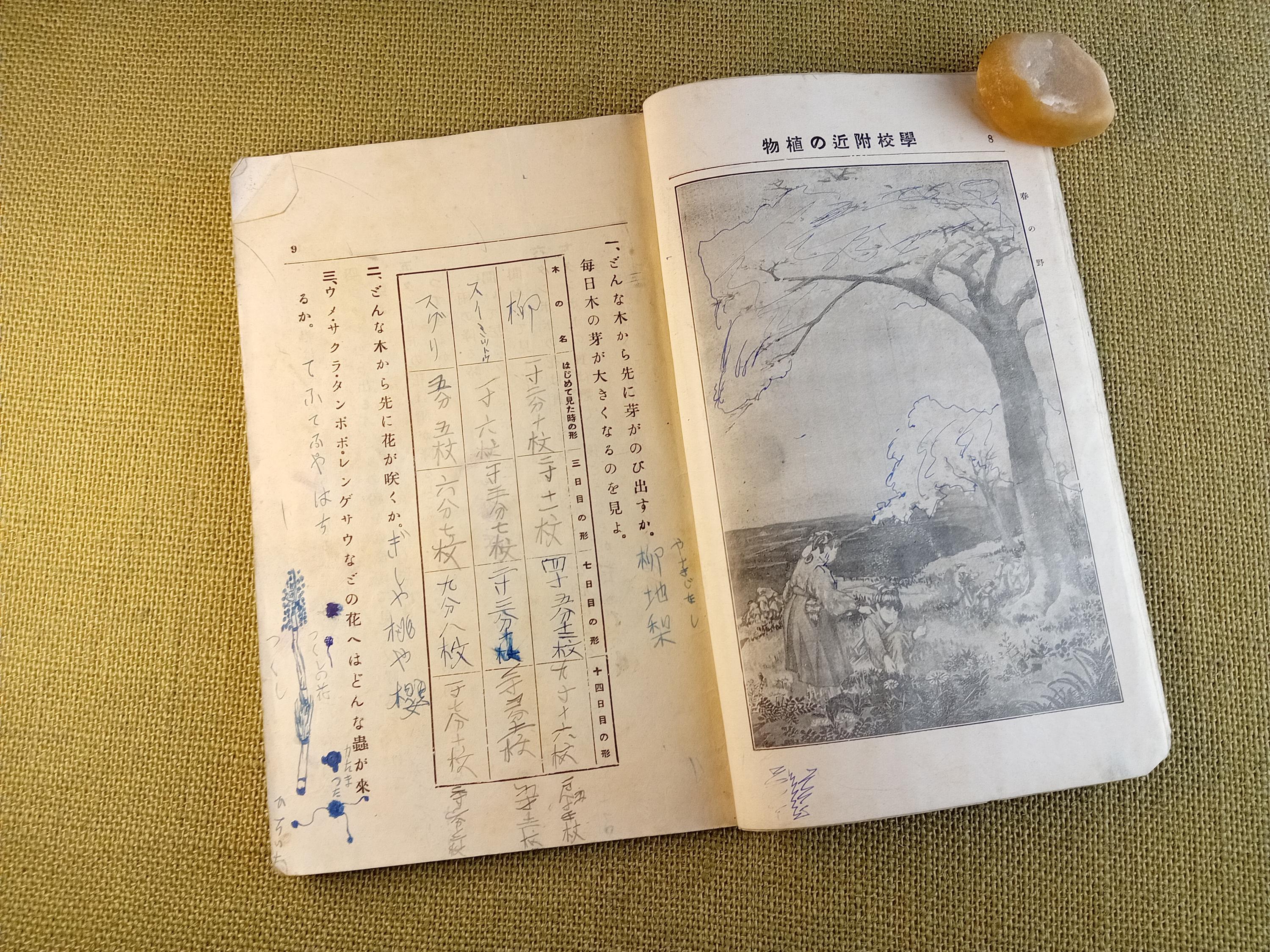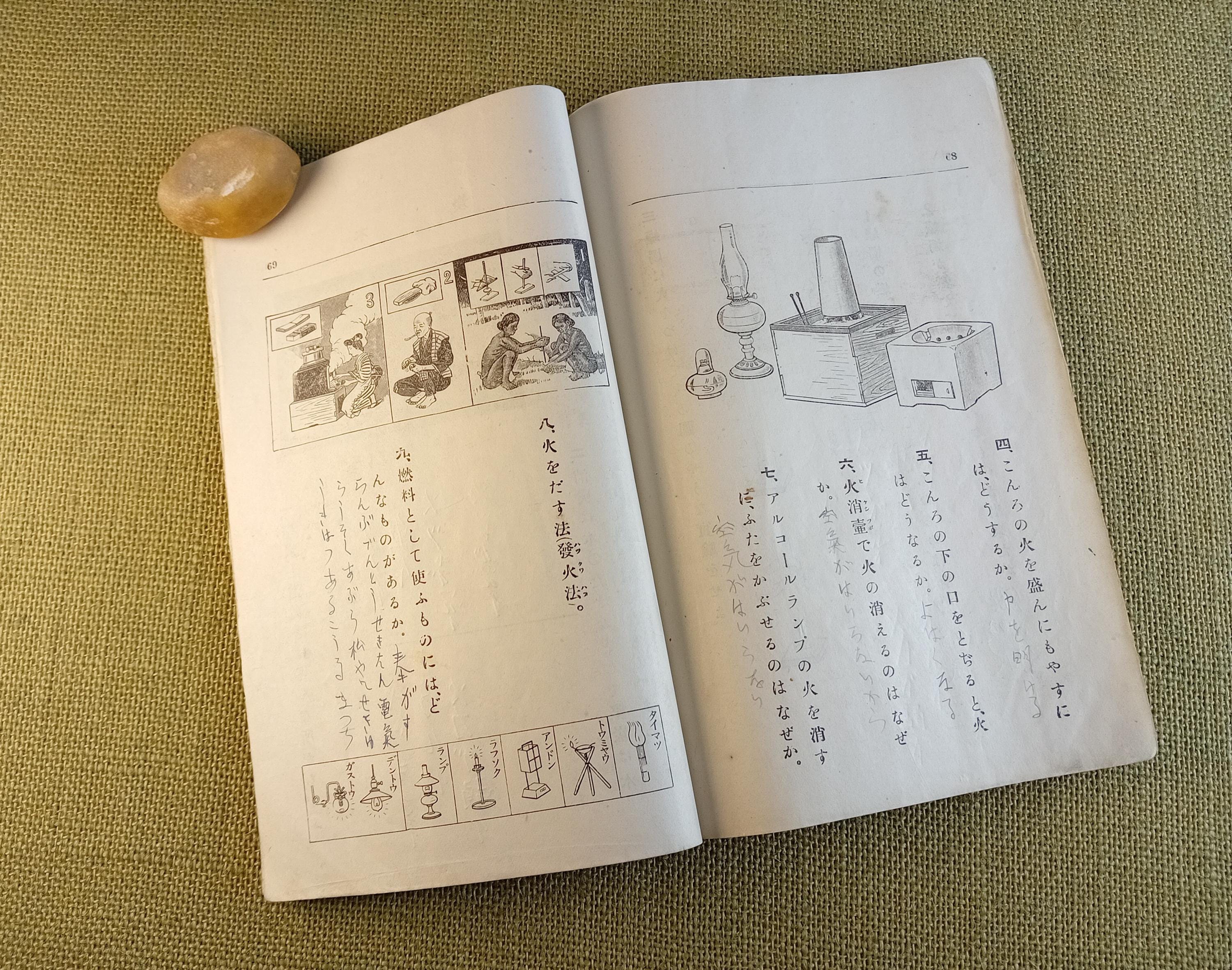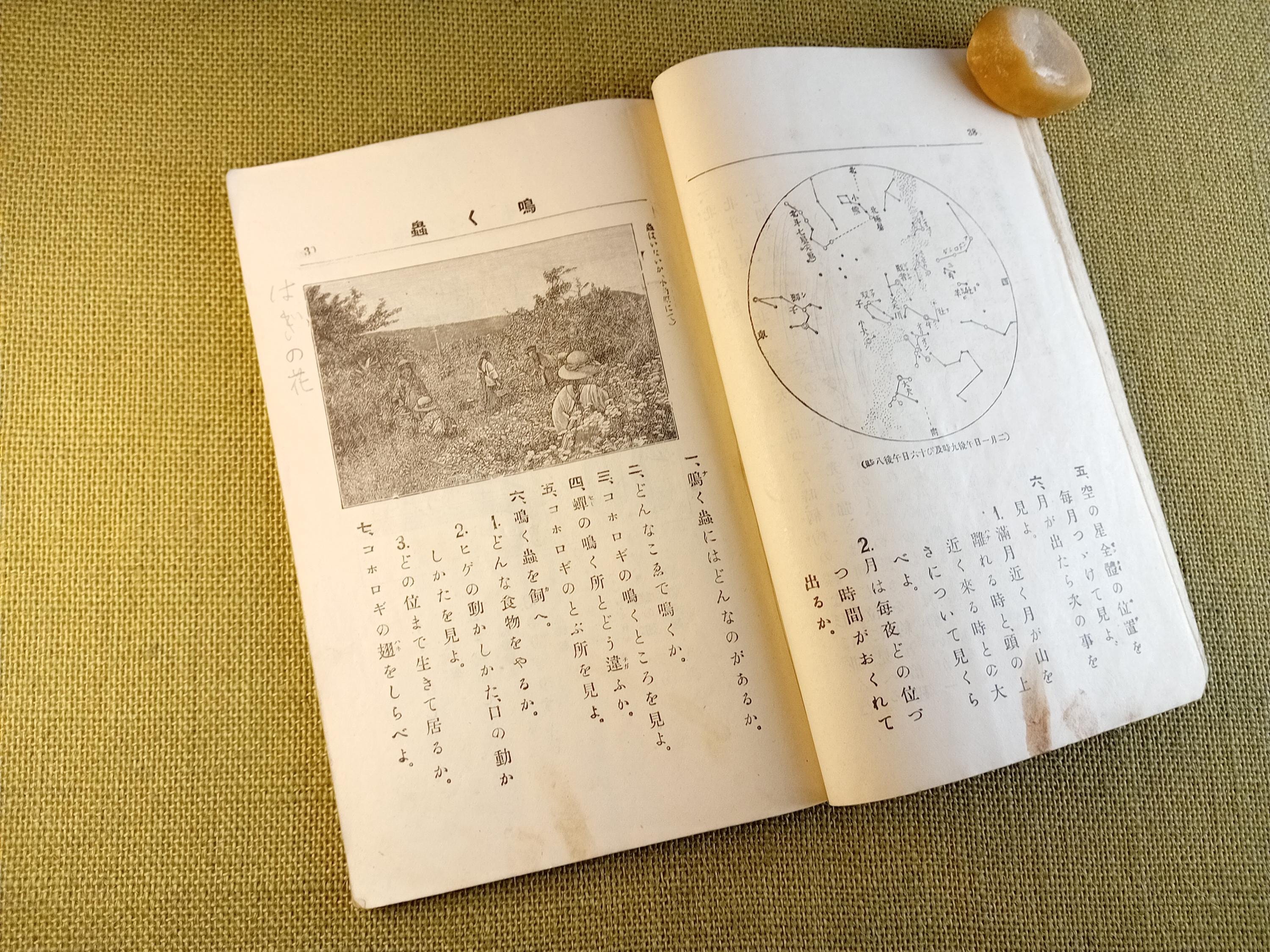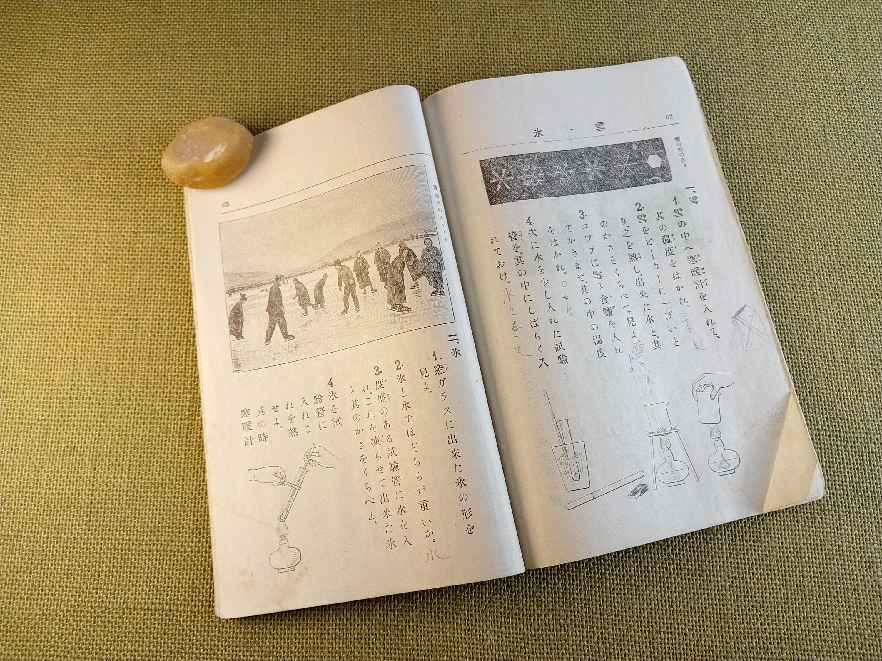 This Japanese school science book belongs to the world of early twentieth-century education, where natural science helped shape a child’s structured understanding of nature, seasons, plants, animals, materials, weather, and the physical world. It is a real schoolbook of the Taisho period, prepared for everyday classroom use and elementary study.