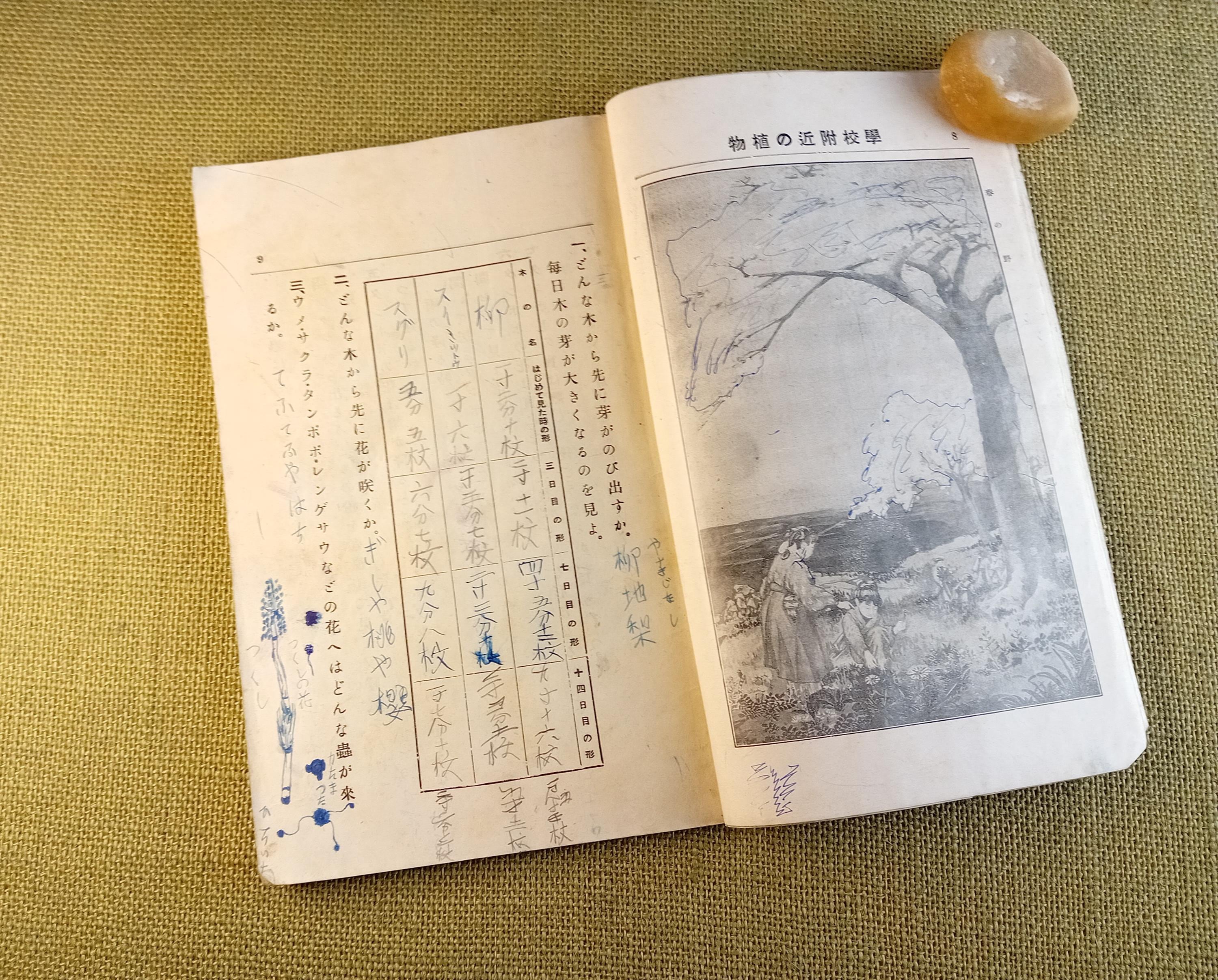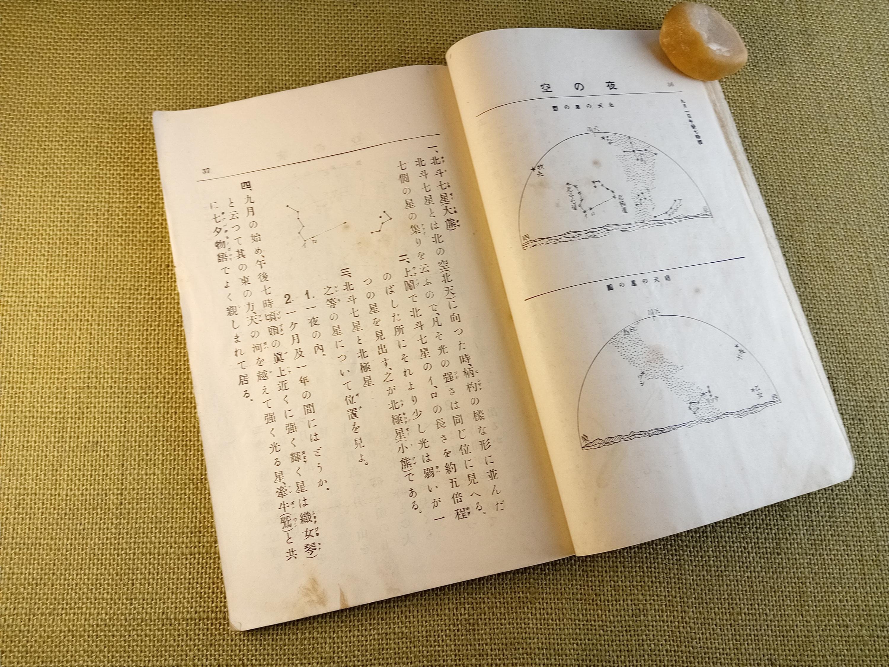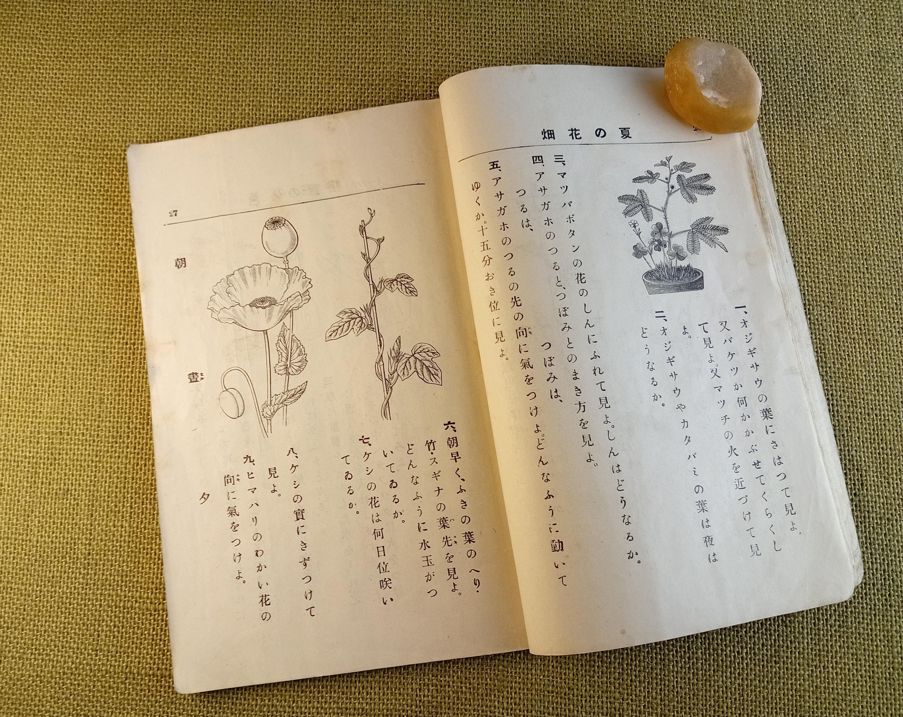 This Japanese school science book belongs to the world of early twentieth-century education, where natural science helped shape a child’s structured understanding of nature, seasons, plants, animals, materials, weather, and the physical world. It is a real schoolbook of the Taisho period, prepared for everyday classroom use and elementary study.
