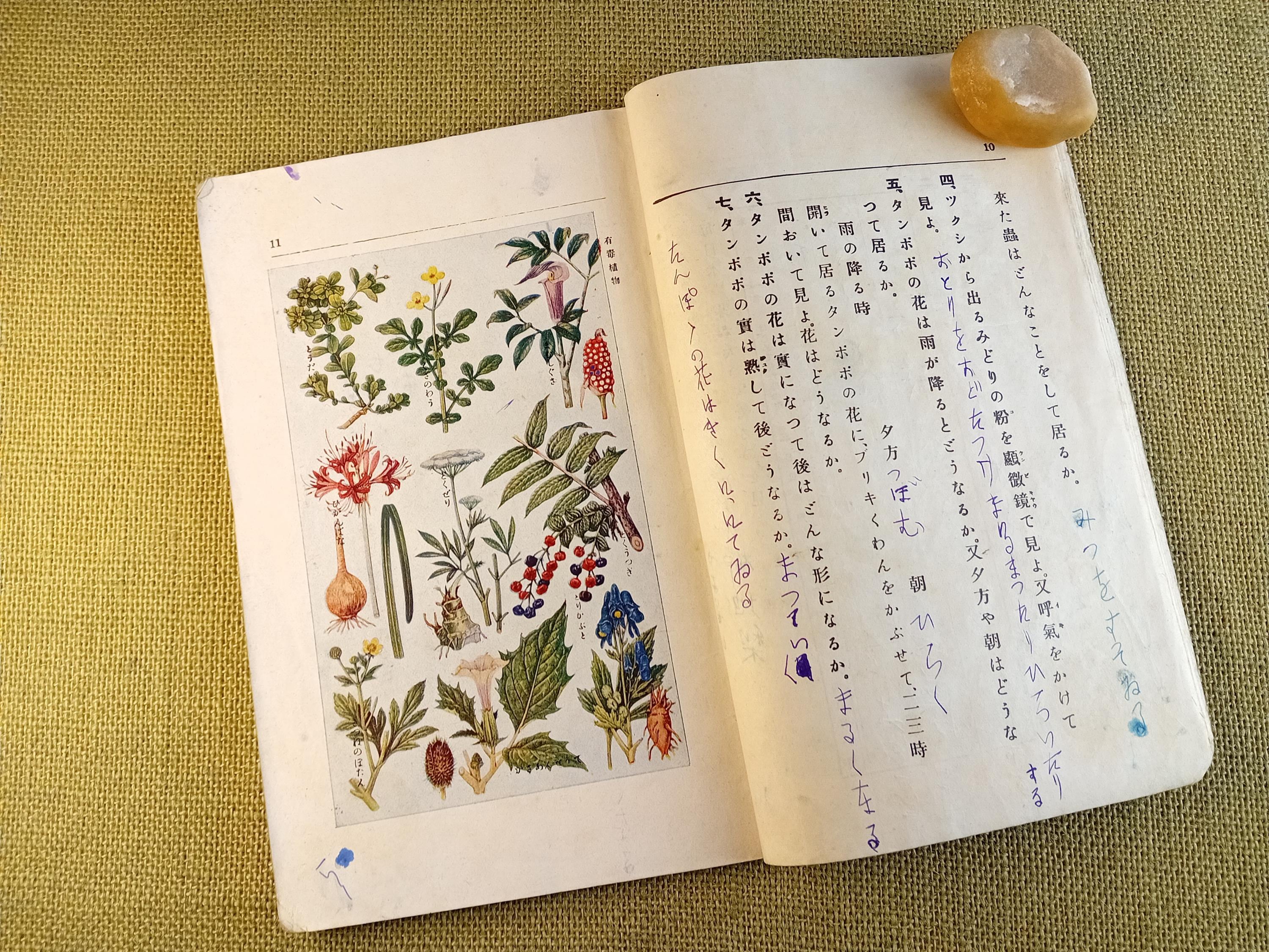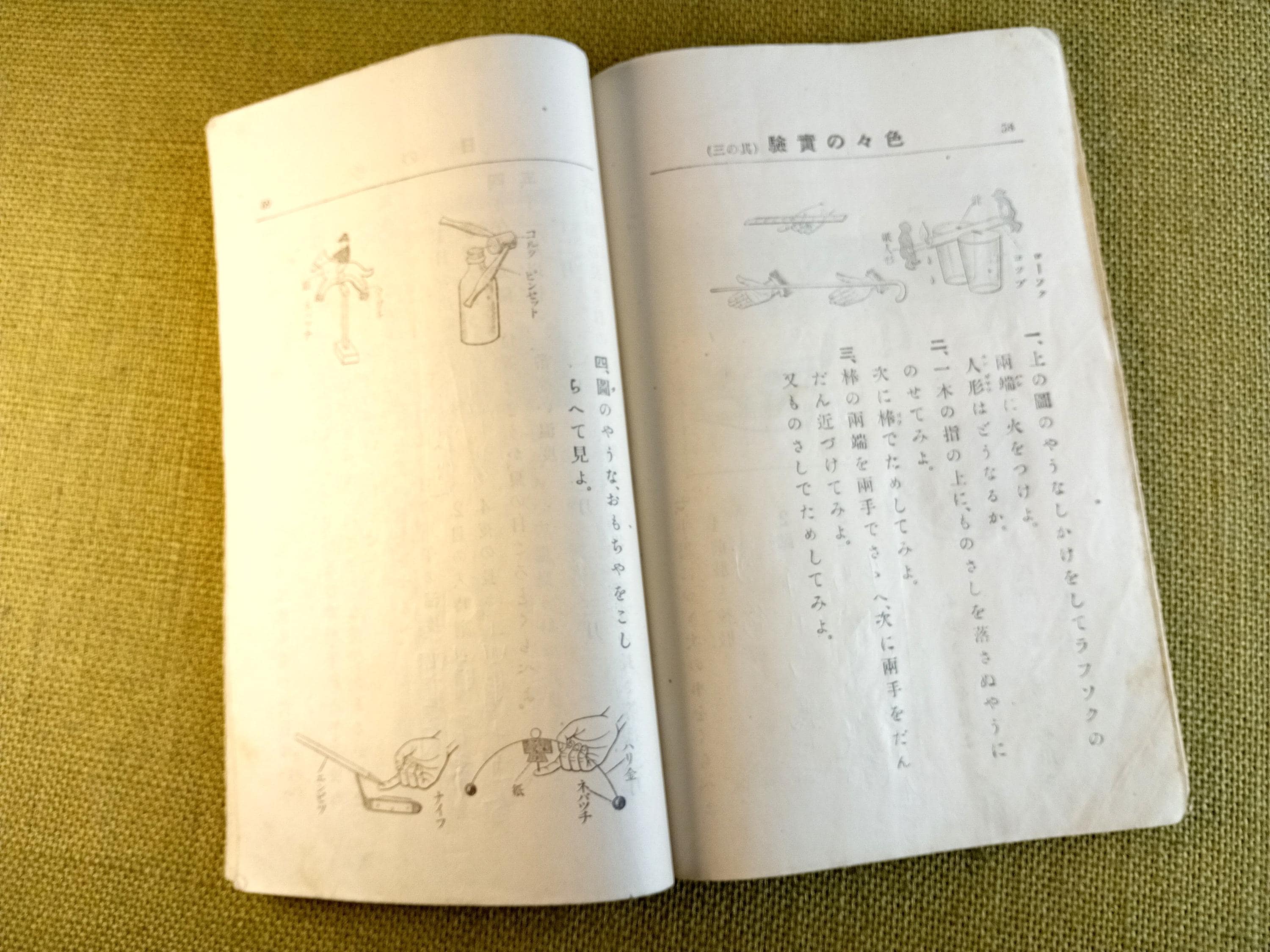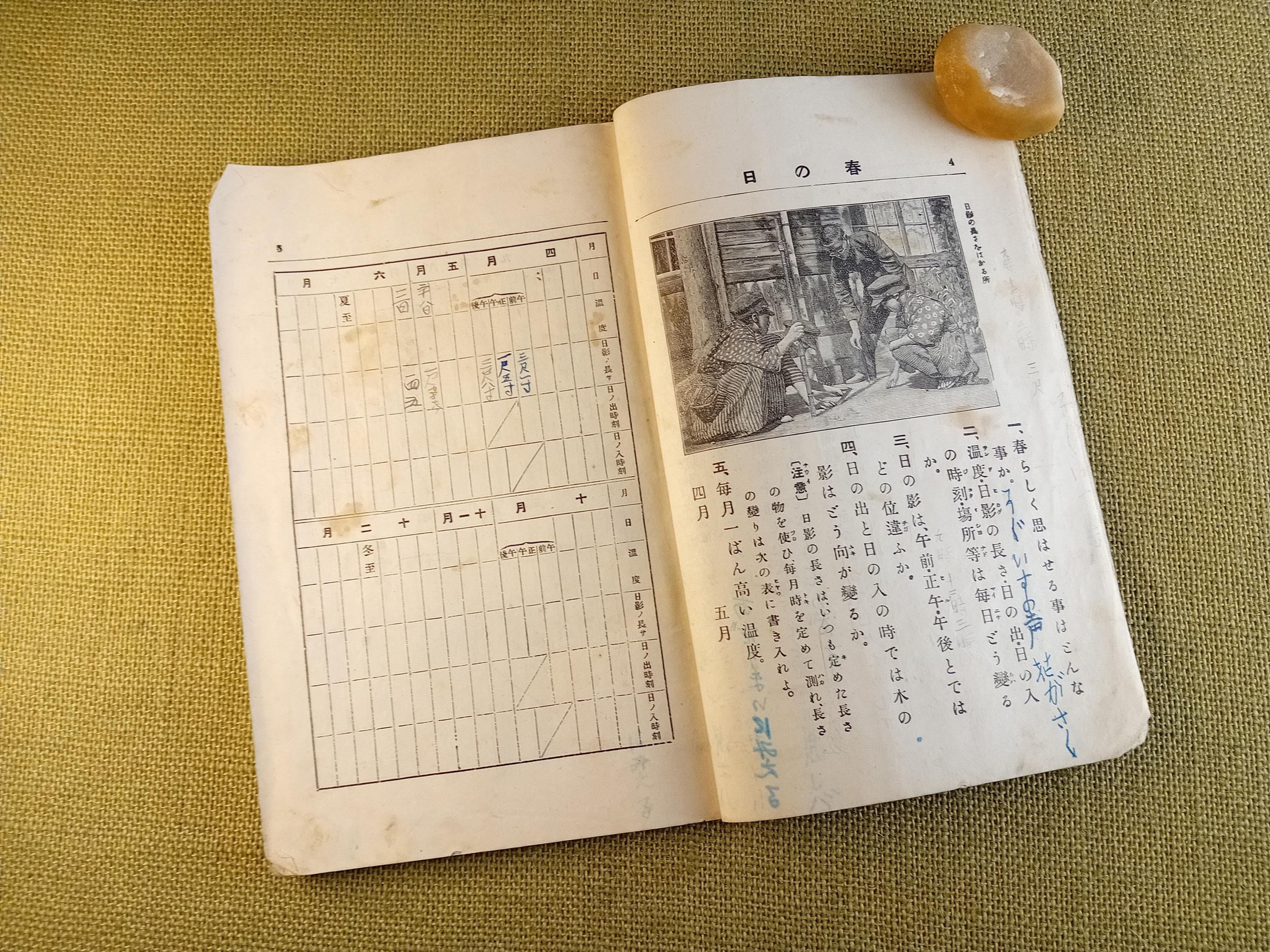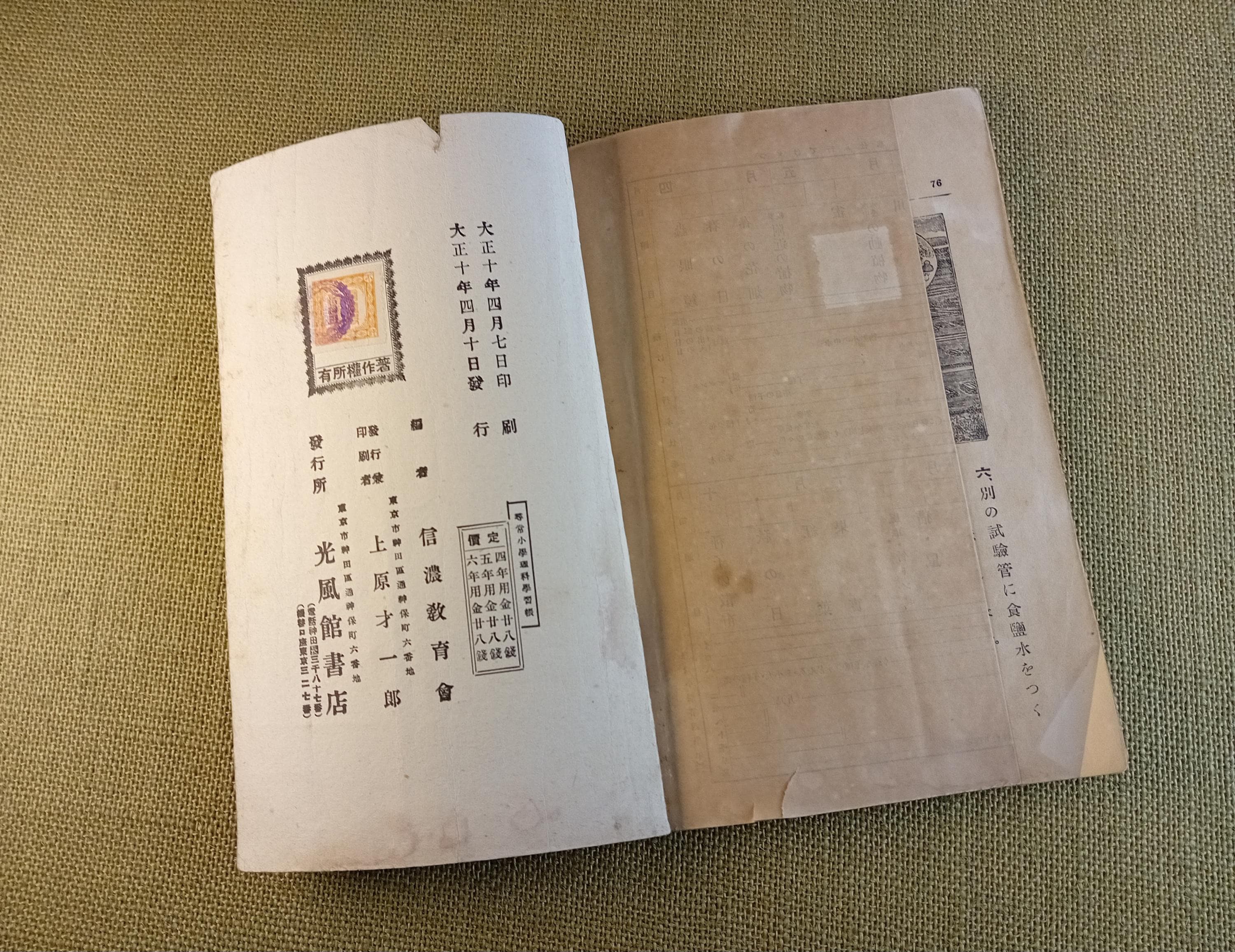 This Japanese school science book belongs to the world of early twentieth-century education, where natural science helped shape a child’s structured understanding of nature, seasons, plants, animals, materials, weather, and the physical world. It is a real schoolbook of the Taisho period, prepared for everyday classroom use and elementary study.