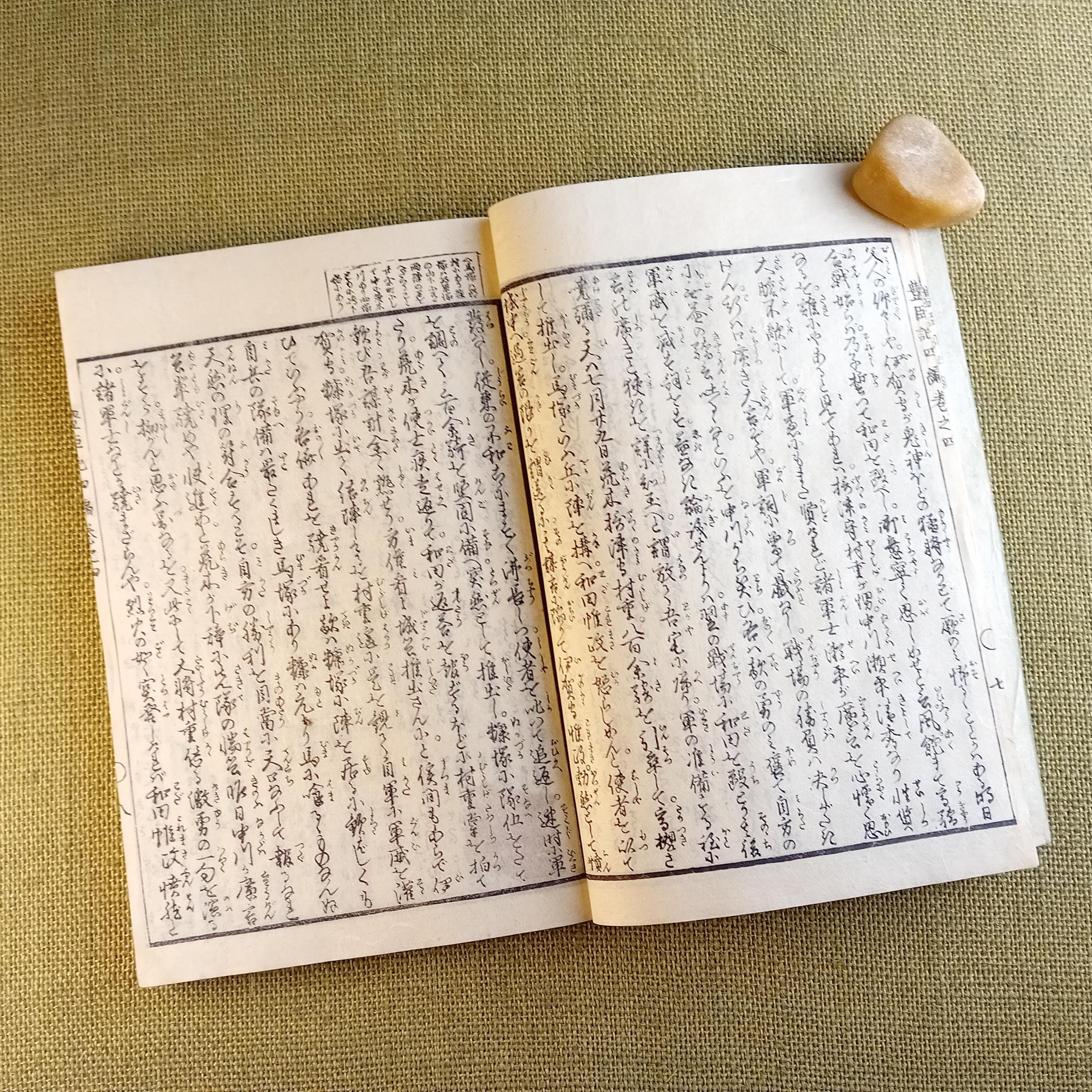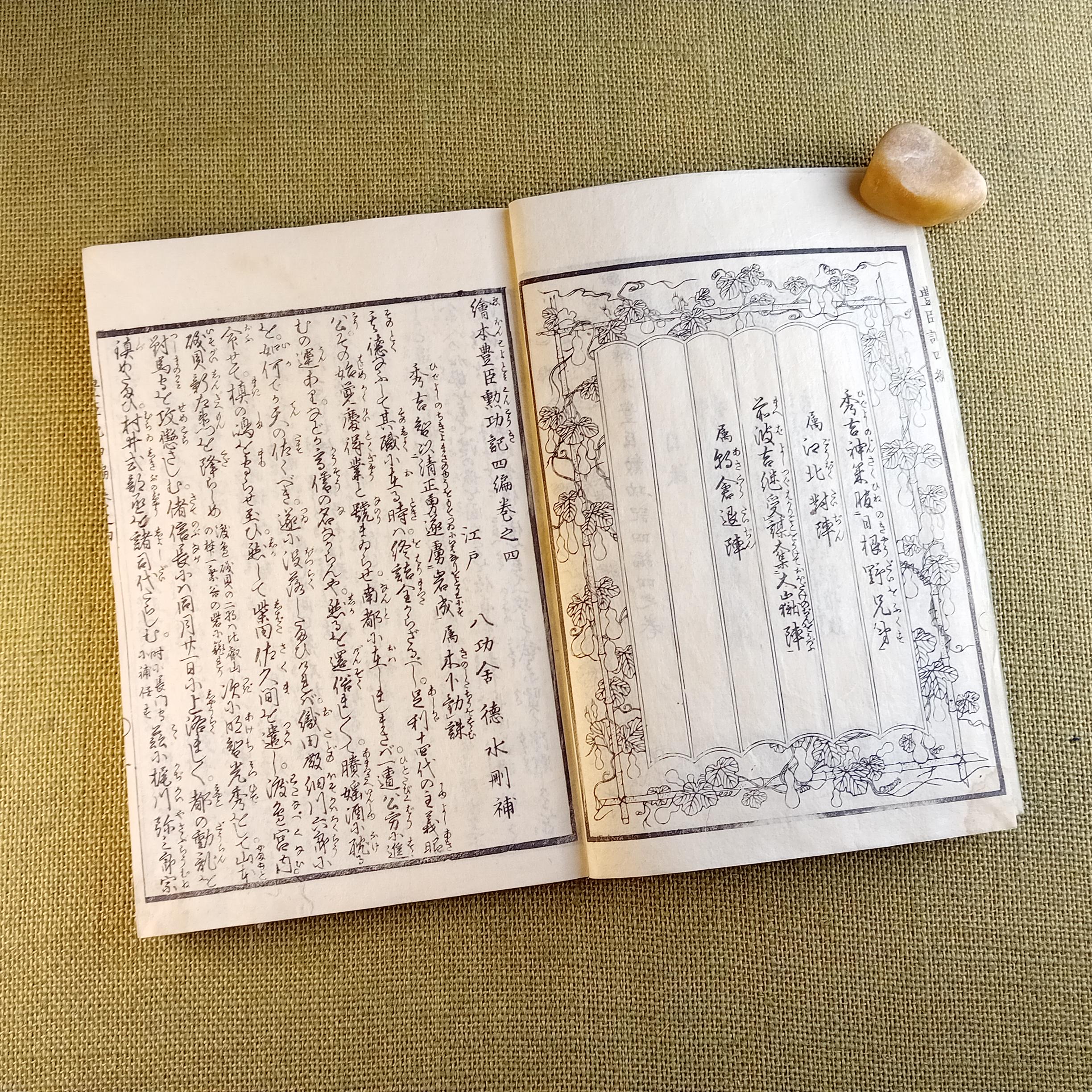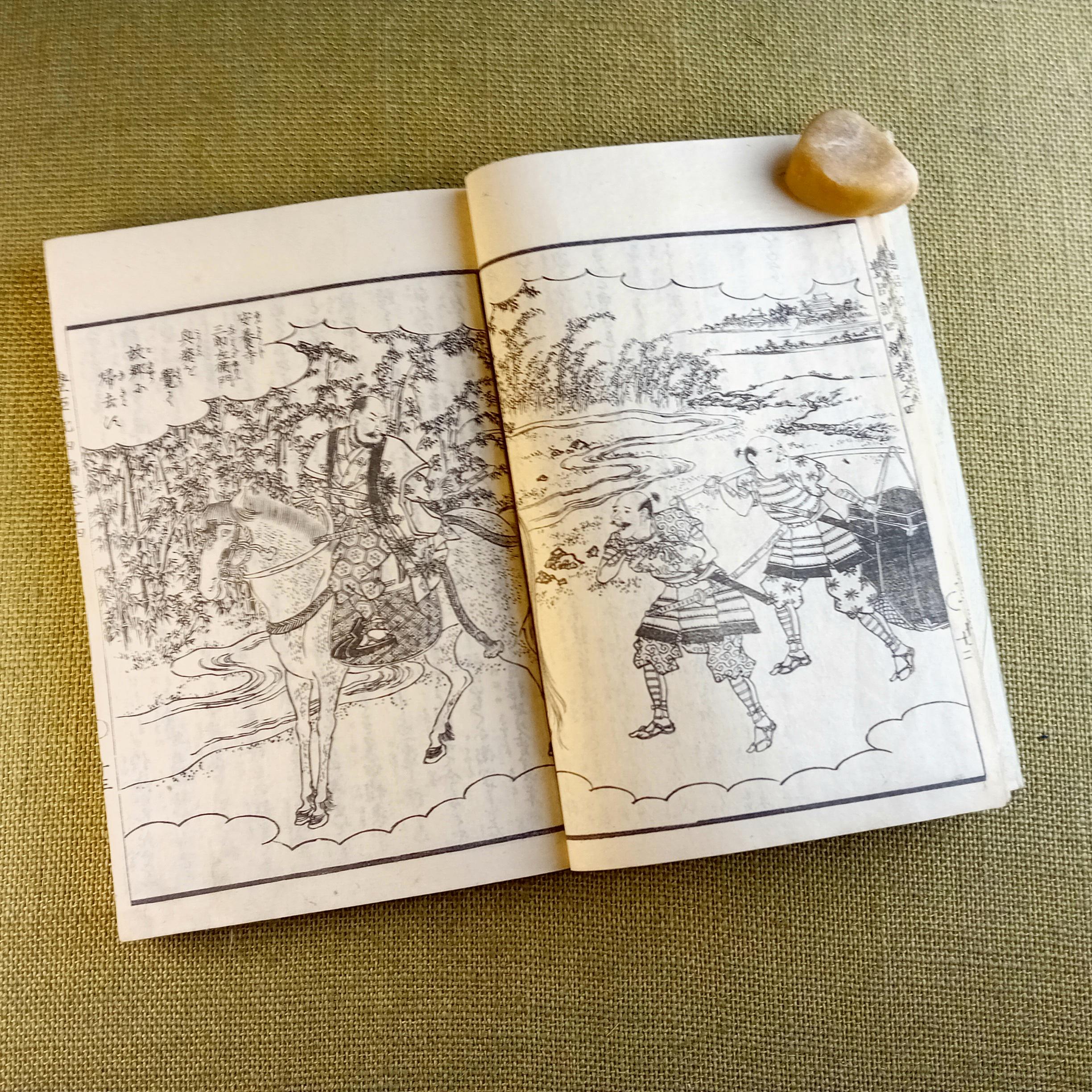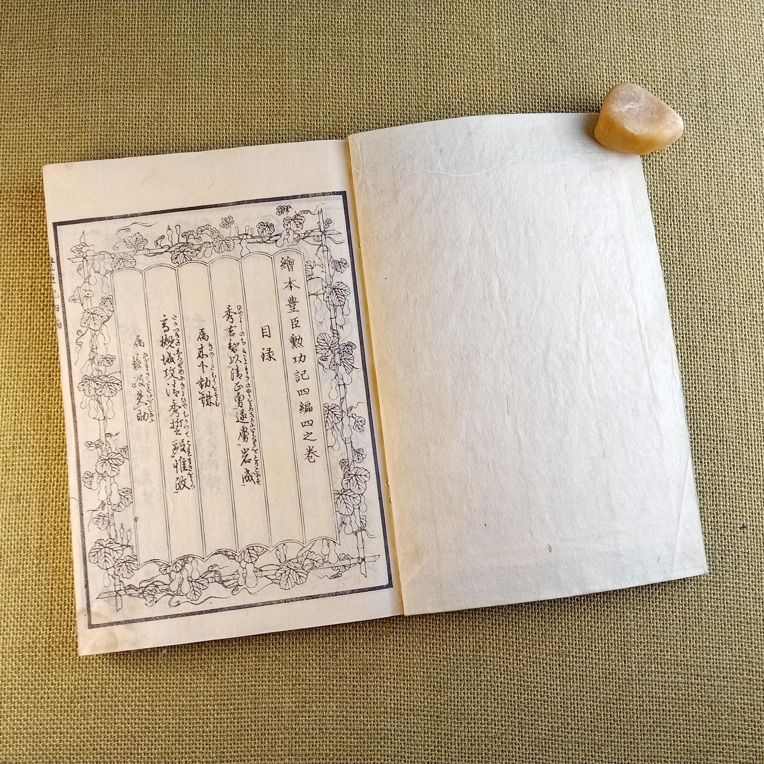 The authorial level is no less important. Ehon Toyotomi Kunkoki is associated with Yanagisuitei Tanekiyo and belongs to that line of Japanese historical narrative literature in which action, power, military memory, intrigue, and visual dramaturgy are brought together in a unified book object. That is why this book reads not only as an antique edition, but as a compact concentration of period culture, literature, painting, and history.