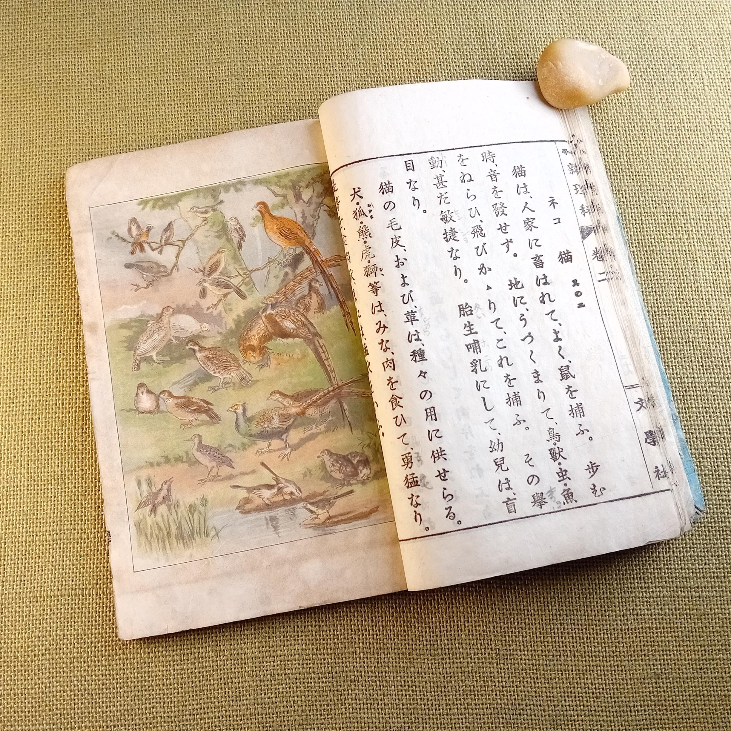 This book belongs to the early Japanese school tradition of natural science, when science entered education as a practical way of observing nature and the surrounding world. It is also a genuine object of Japanese cultural history: a material witness of its era, preserving old printing, the visual culture of schooling, and the physical presence of a Meiji-period book. Its interest lies in both the history of education and the history of the Japanese book itself.