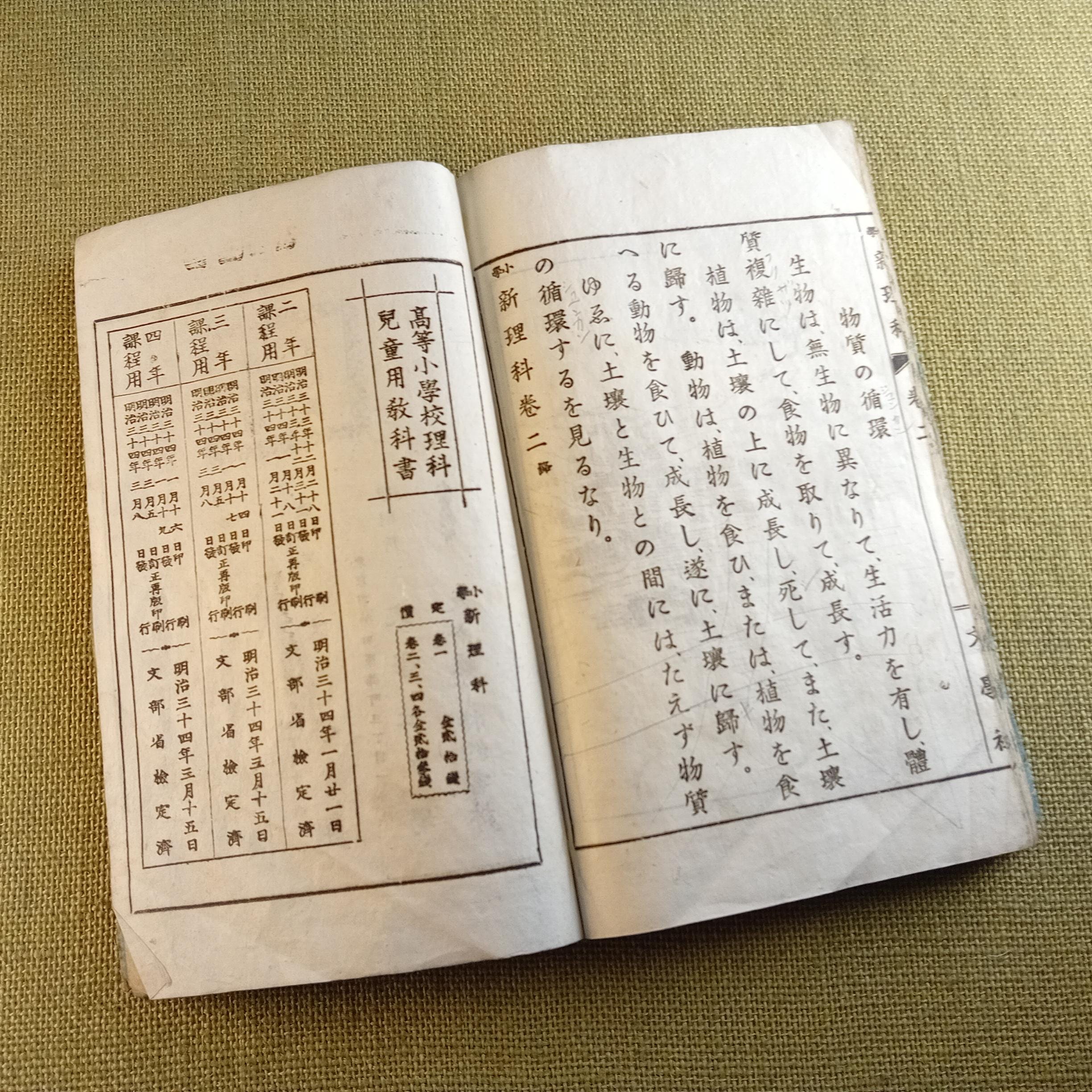 Primary school science textbook. Antique Japanese woodblock-printed book. Meiji period, dated 1900-1901. Volume 2. Higher elementary curriculum.
