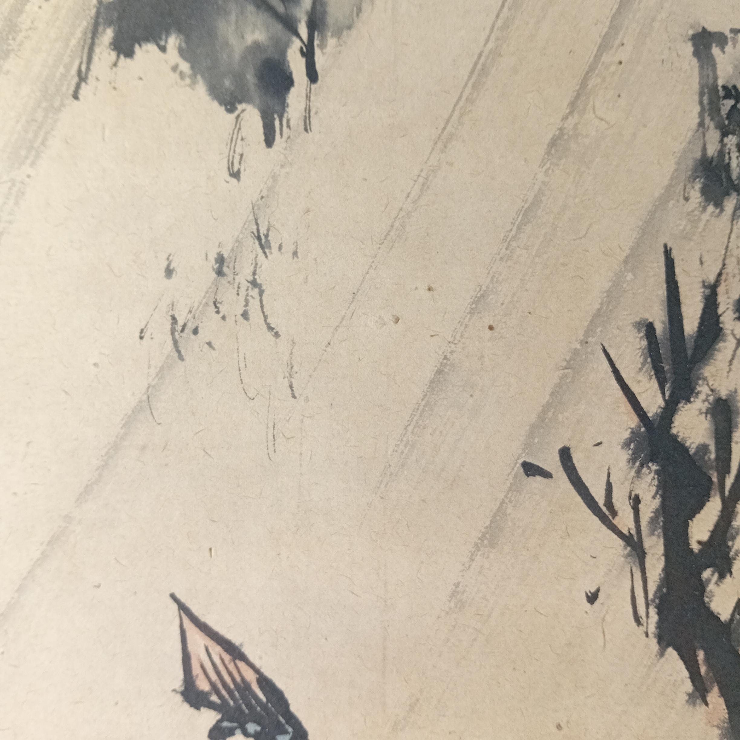 The manner is quiet and traditional, with a subtle affinity to wabi sabi aesthetics in its simplicity, slight incompleteness, and attention to the trace of the brush.