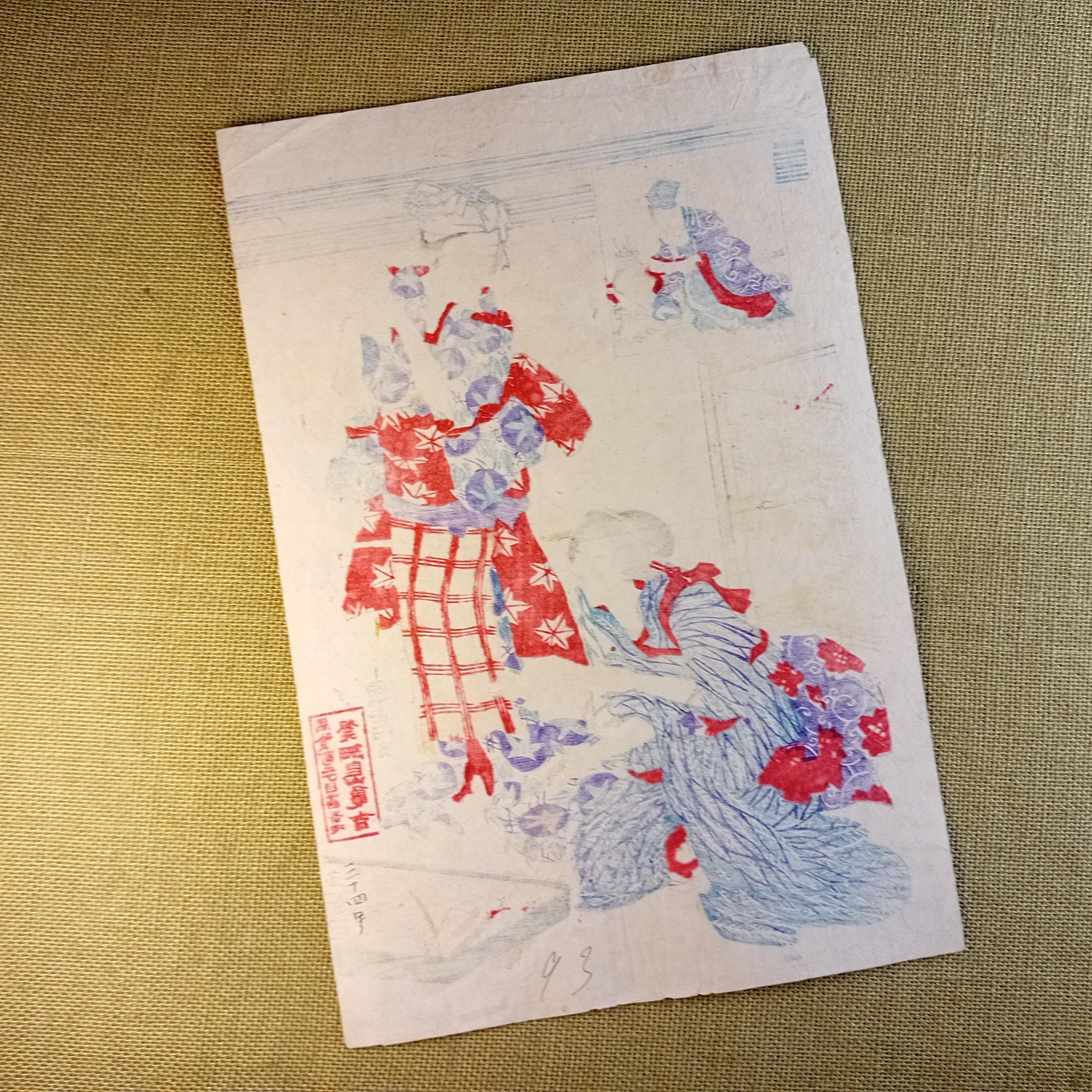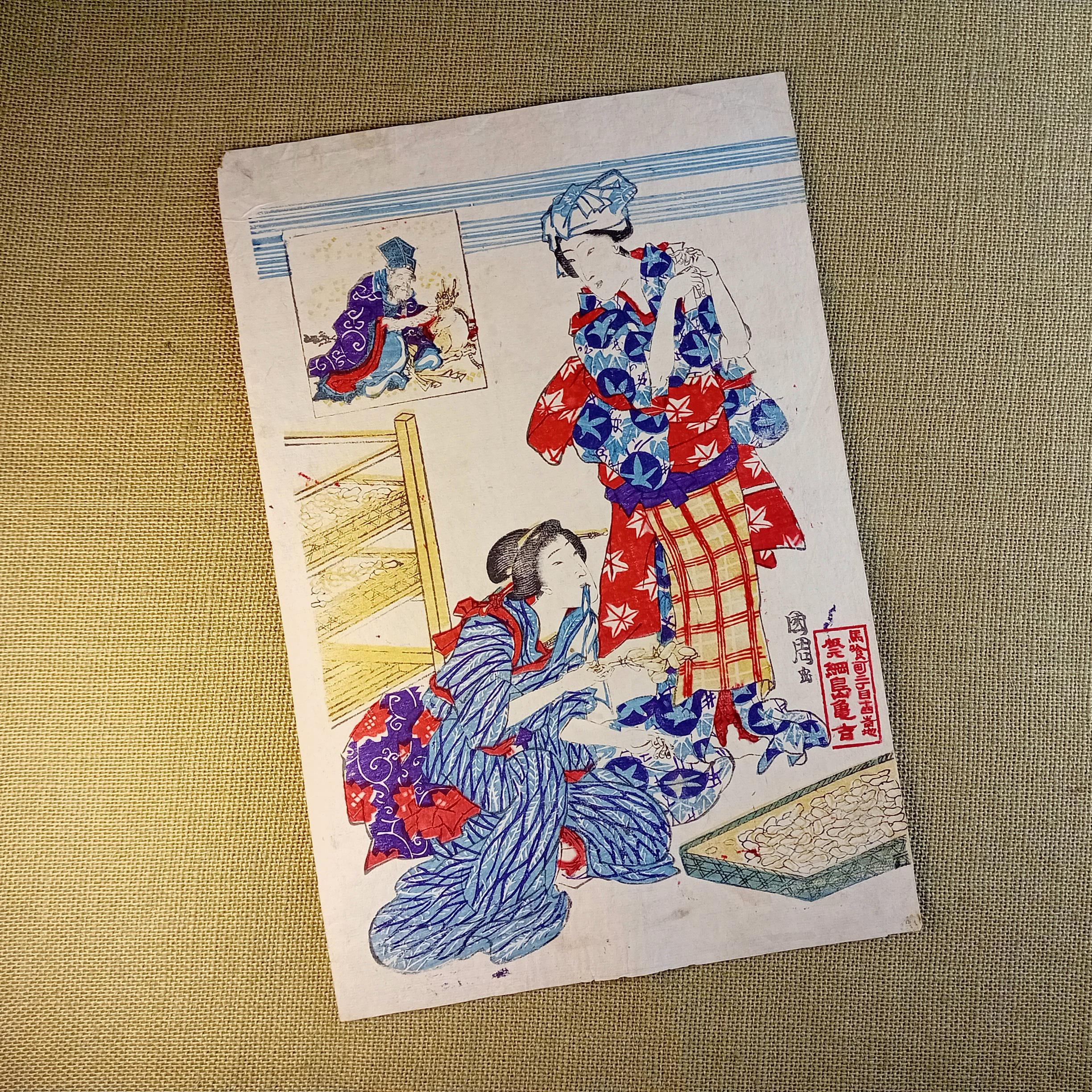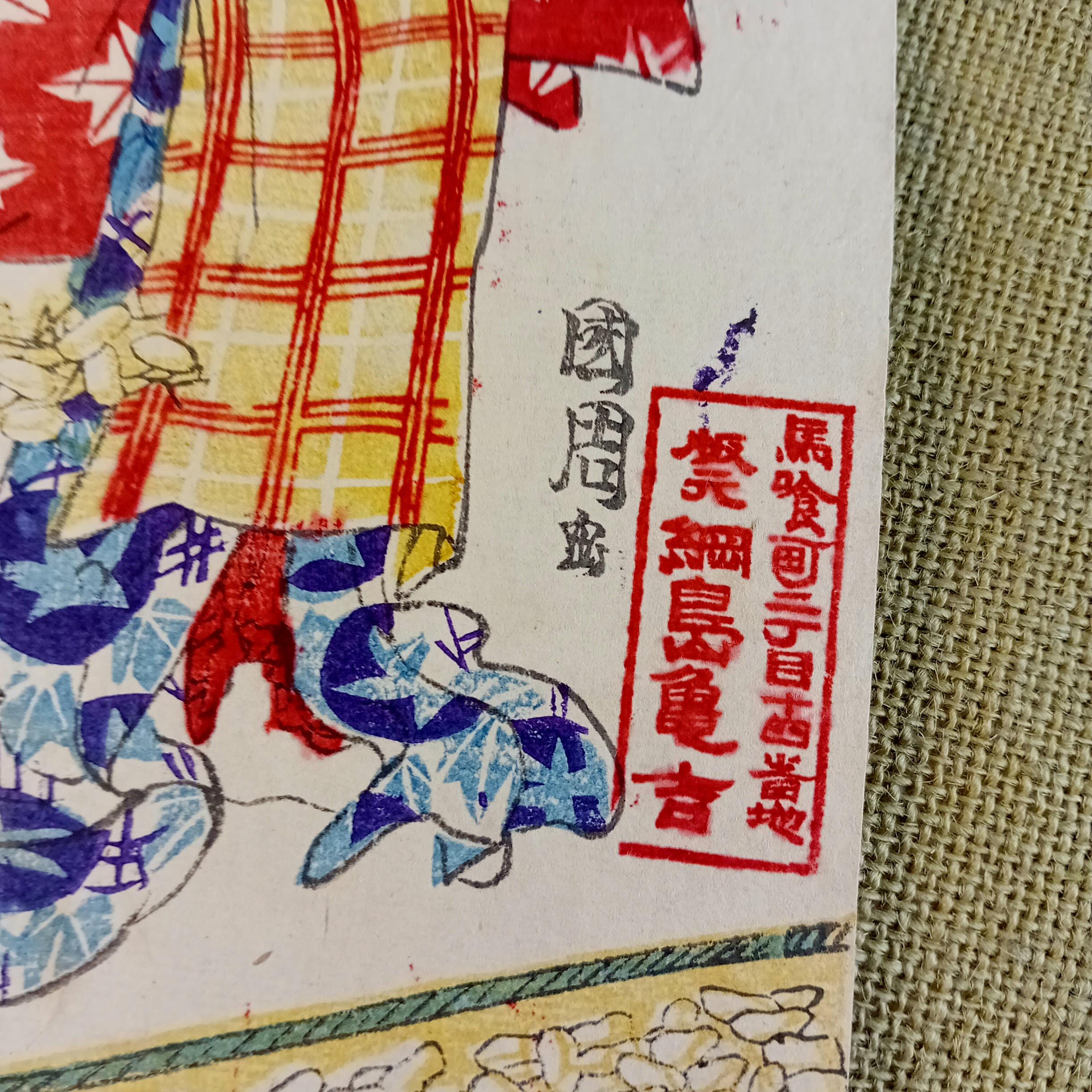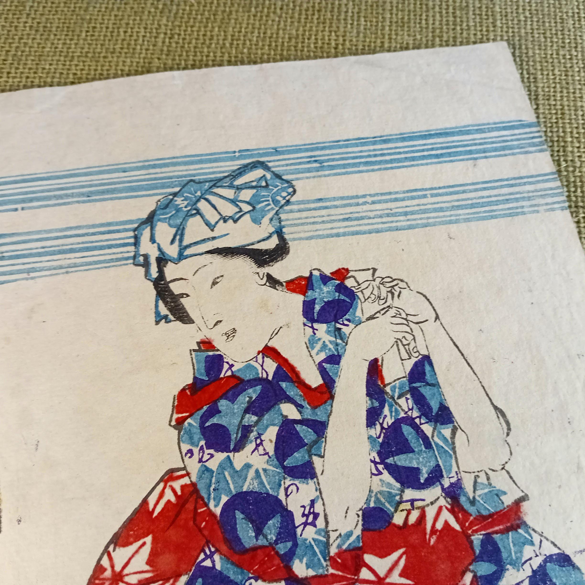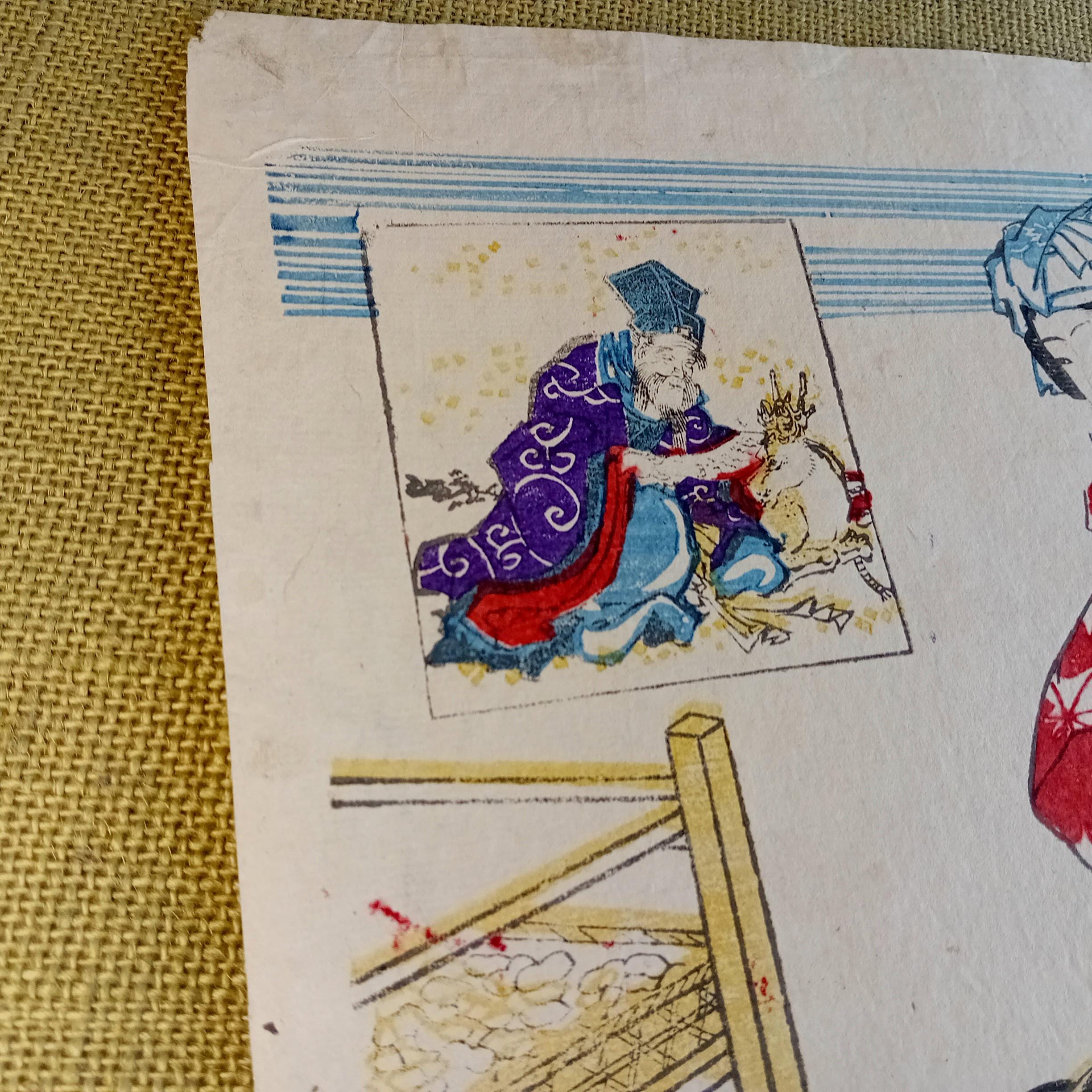 Antique condition. Antique works may show natural signs of age, including paper toning, small creases, minor edge wear, and general handling wear consistent with an authentic old Japanese print. Please review the photos carefully.