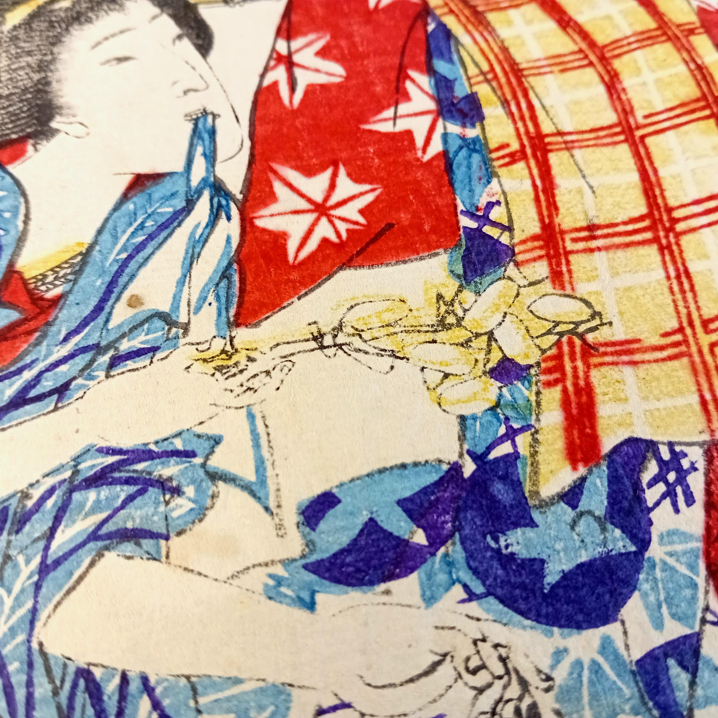 Antique Japanese print from the Meiji period, late 19th century.
