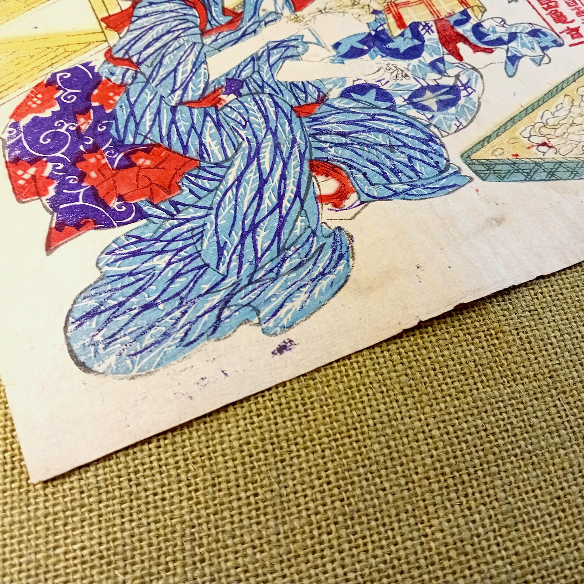 Original Japanese ukiyo-e woodblock print by Toyohara Kunichika.